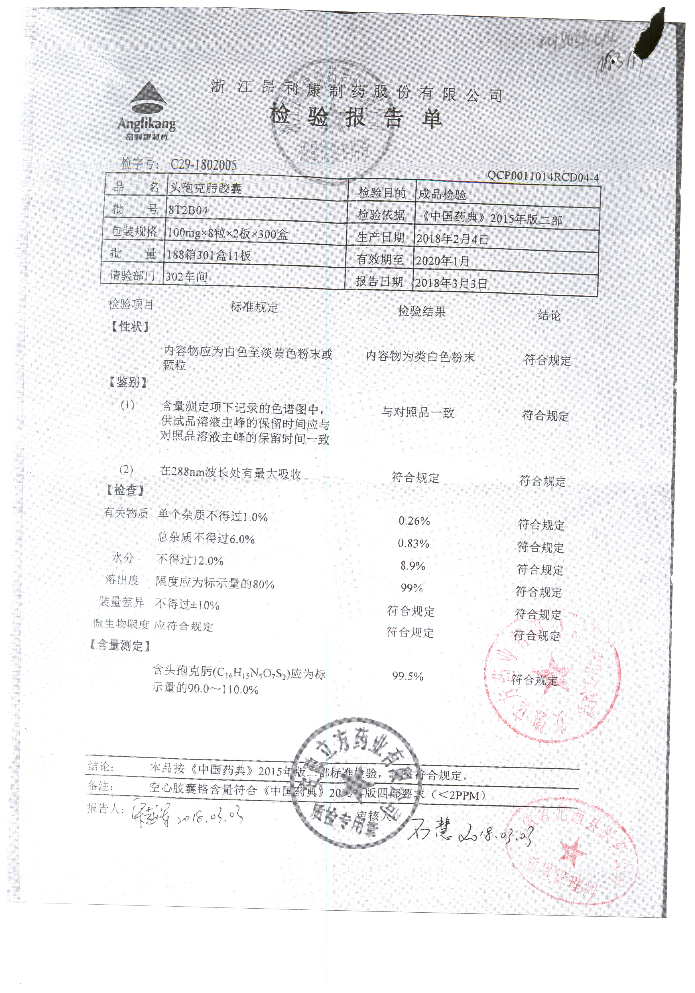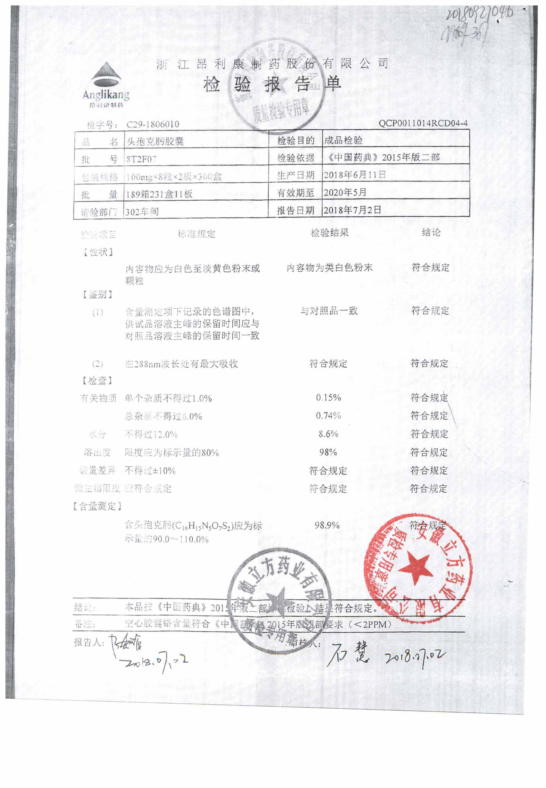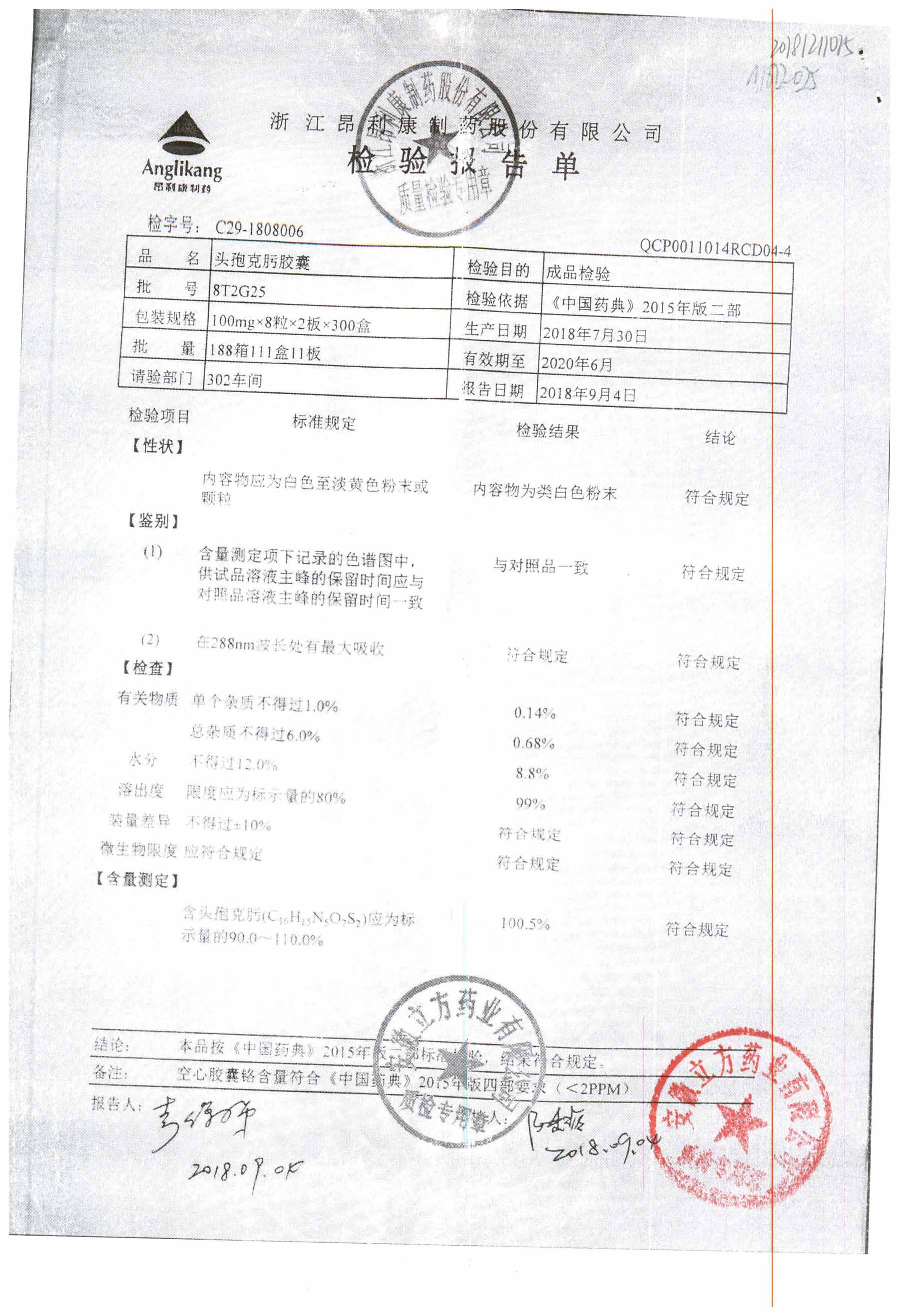 頭孢克肟膠囊 | 100mg*16粒 | 8T2G25 | 查看詳情 |