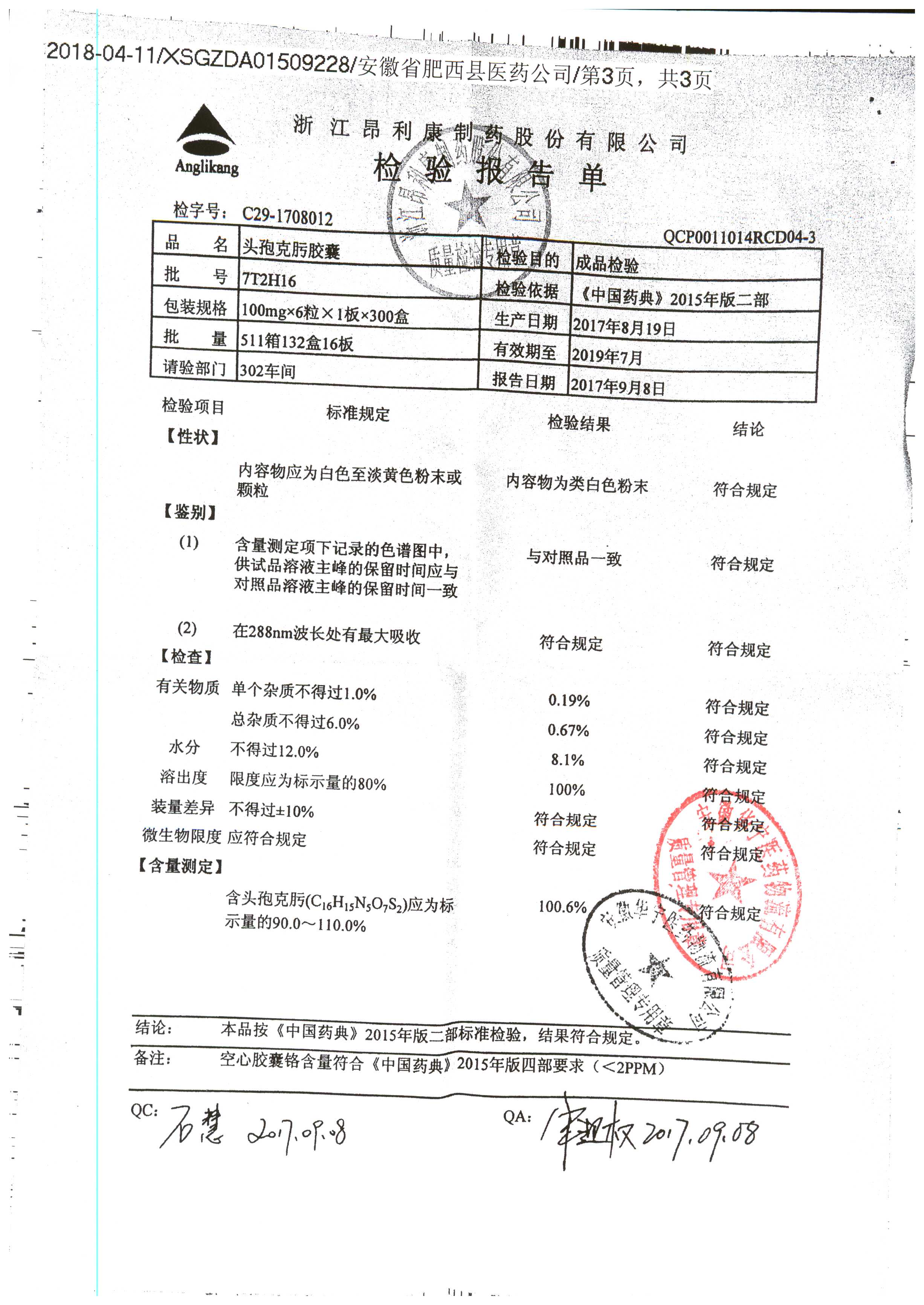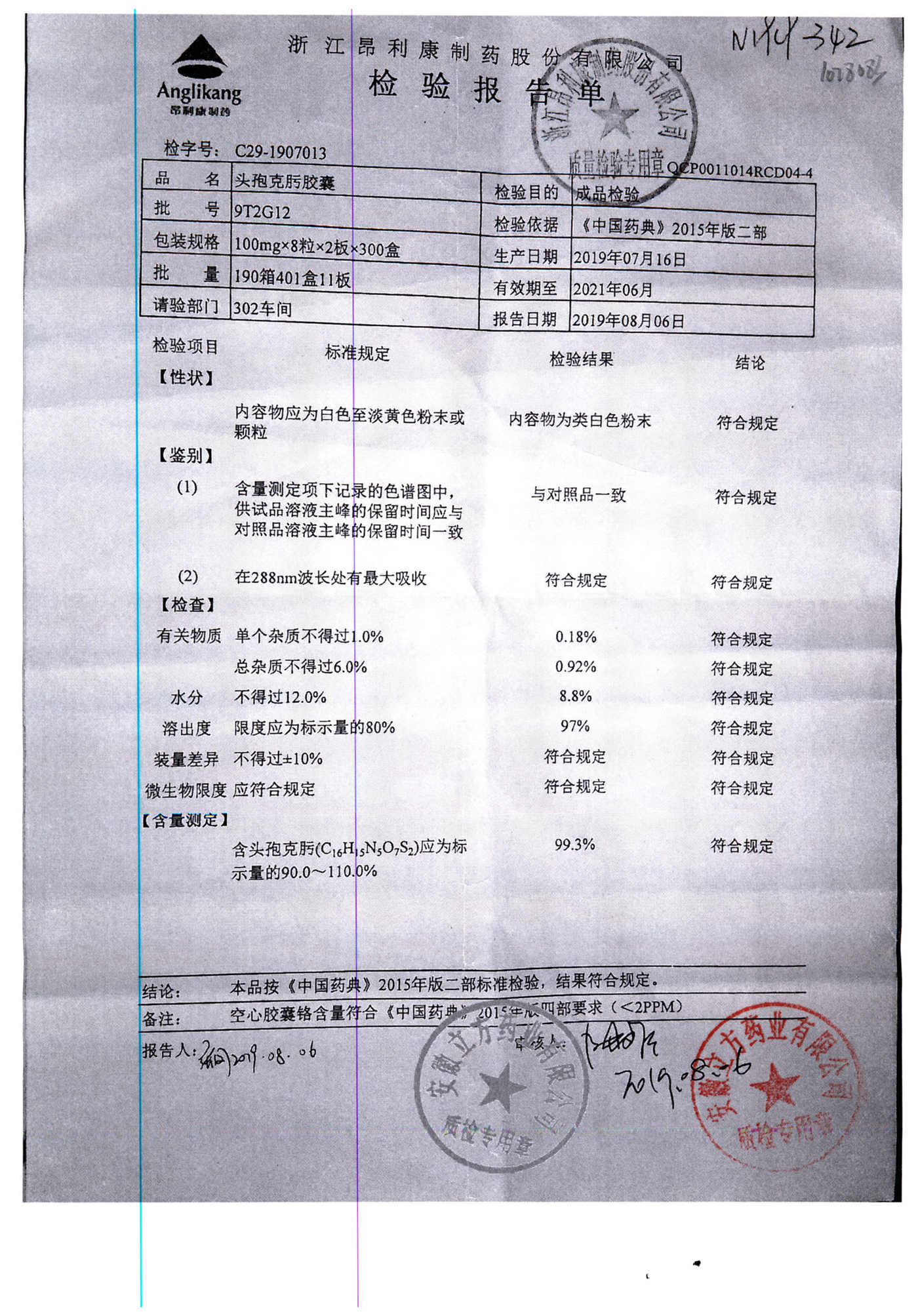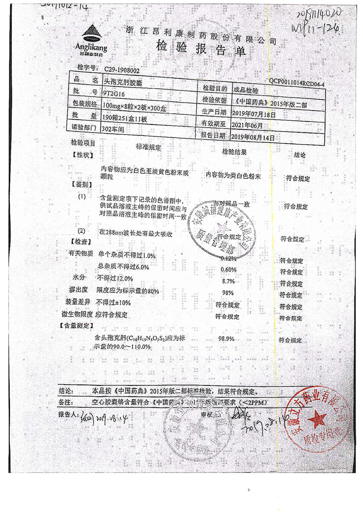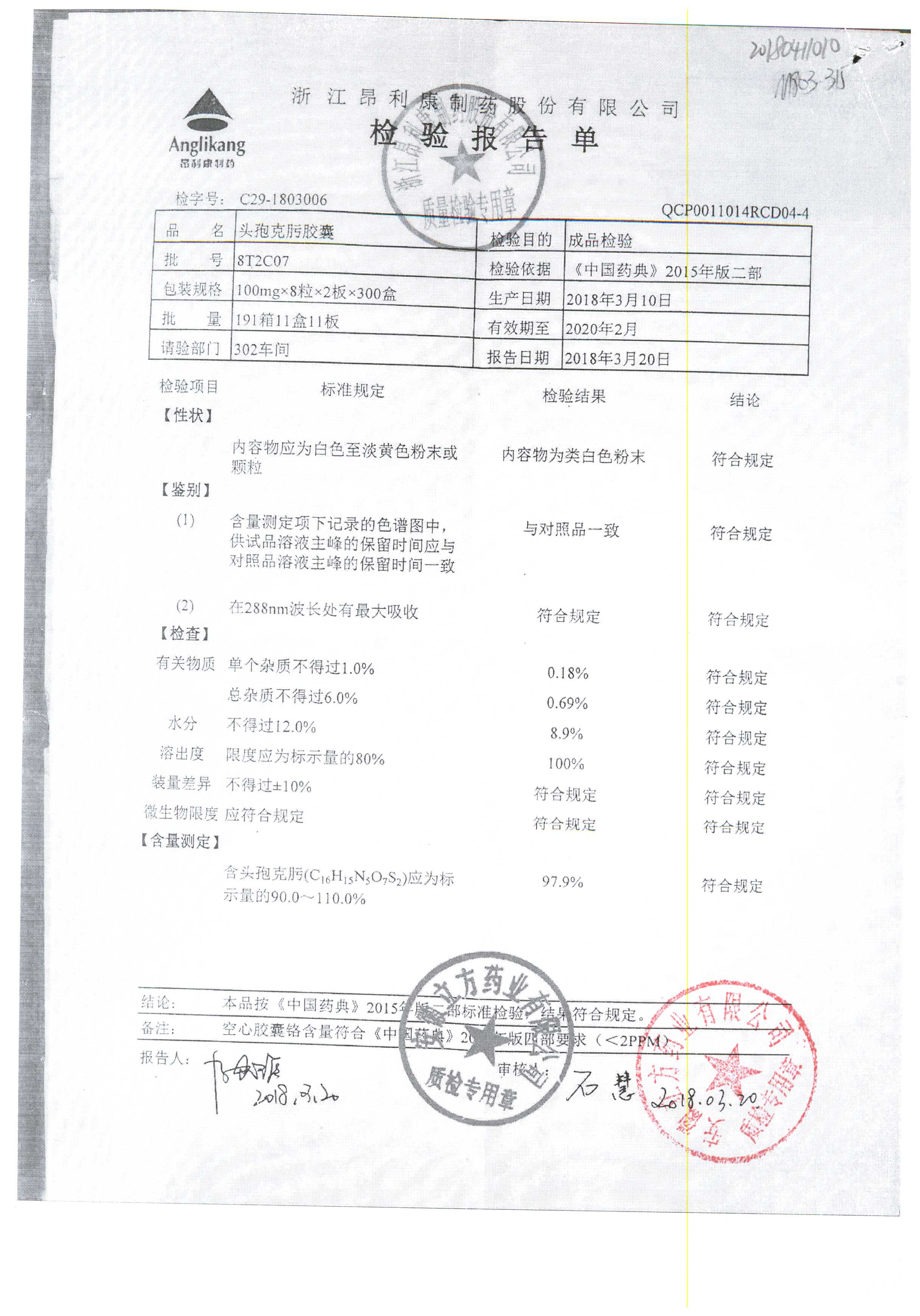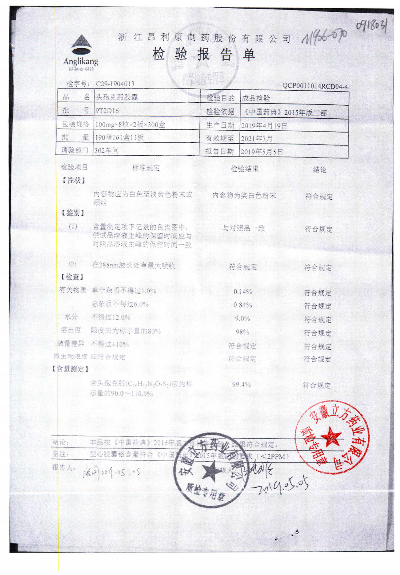 頭孢克肟膠囊 | 100mg*16粒 | 9T2G16 | 查看詳情 |