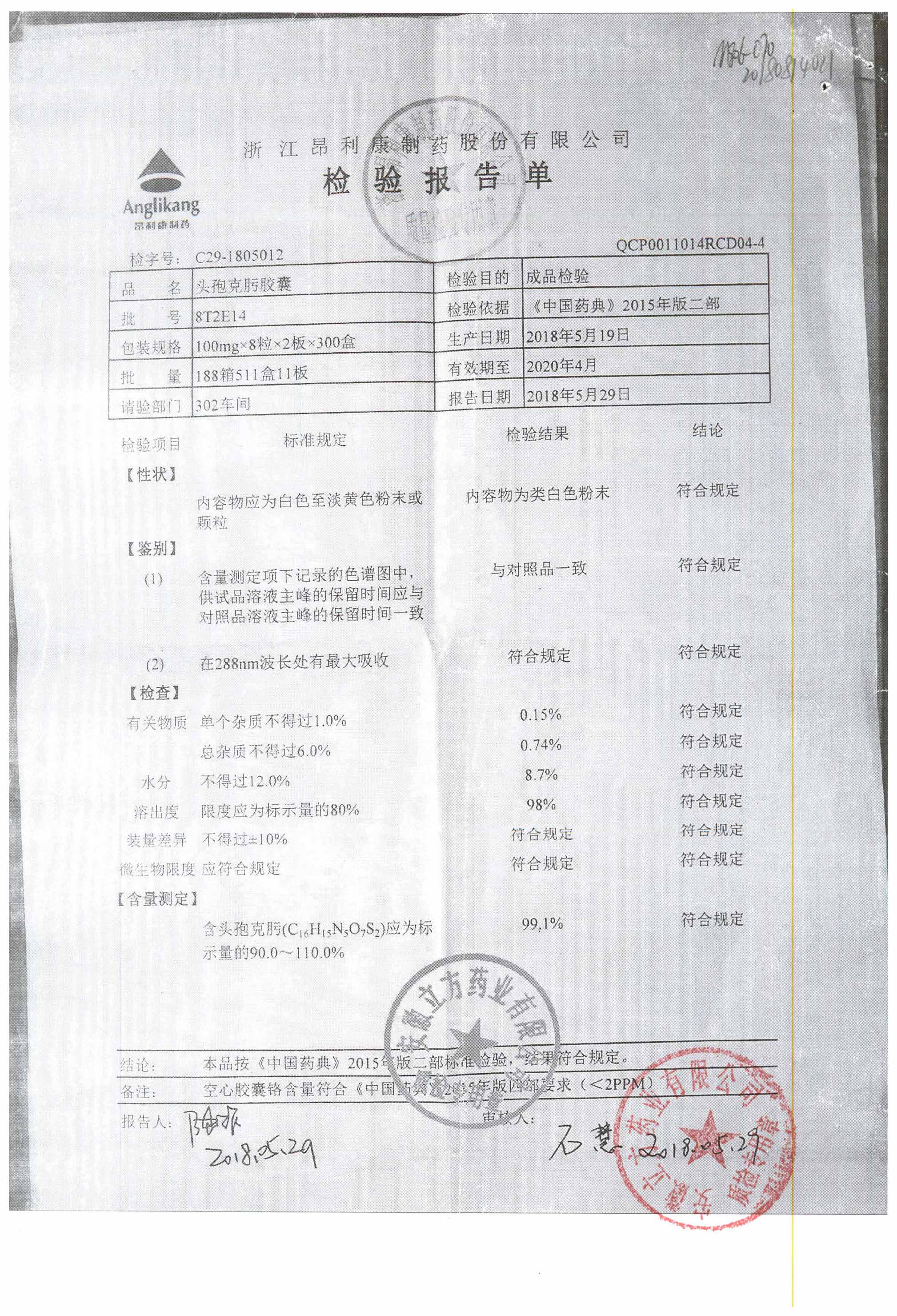 頭孢克肟膠囊 | 100mg*16粒 | 8T2E14 | 查看詳情 |