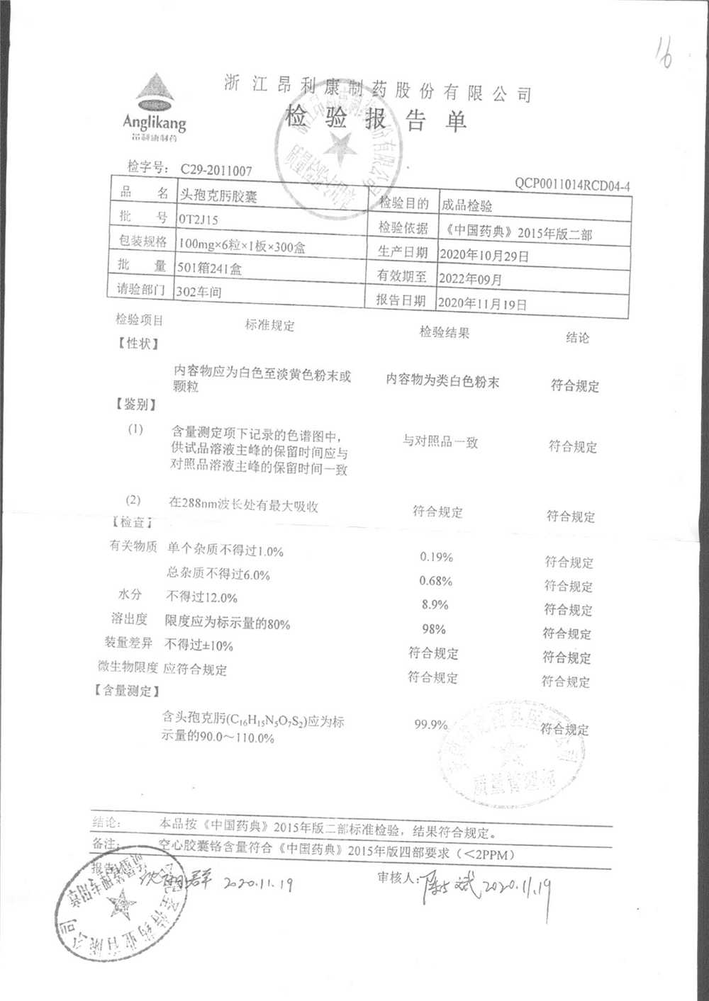 頭孢克肟膠囊 | 100mg*16粒 | 0T2J15 | 查看詳情 |