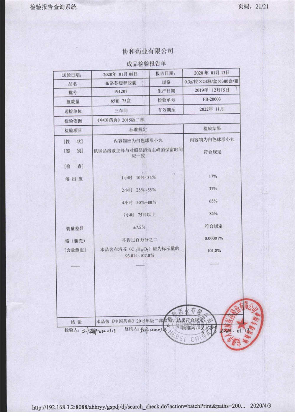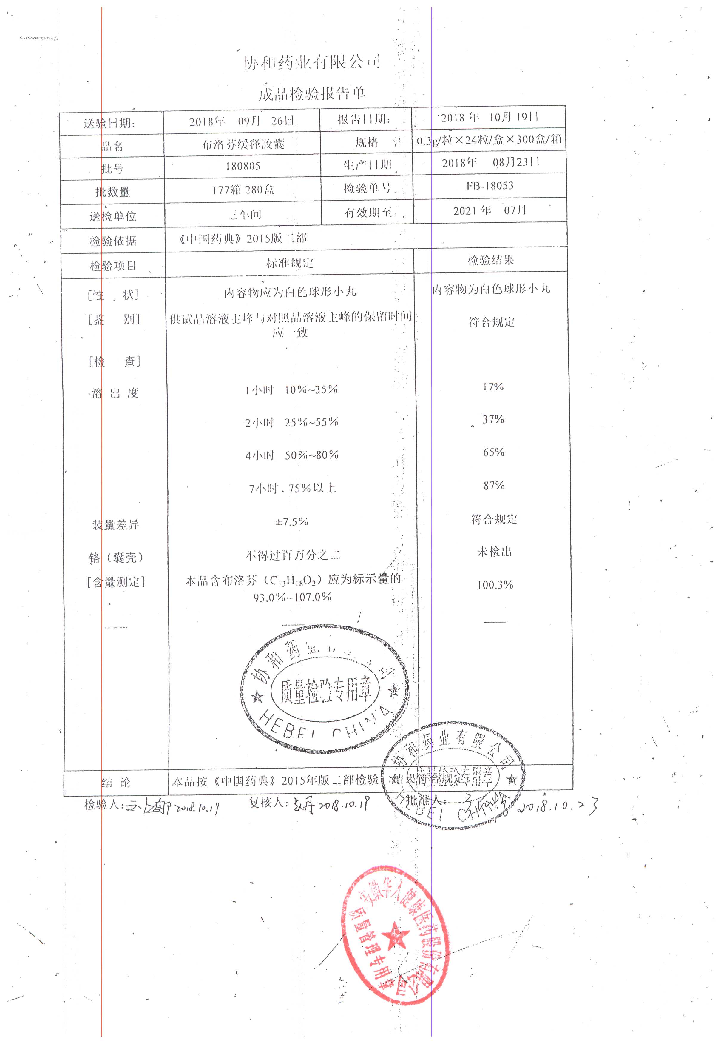 布洛芬緩釋膠囊 | 0.3g*24s | 191207 | 查看詳情 |