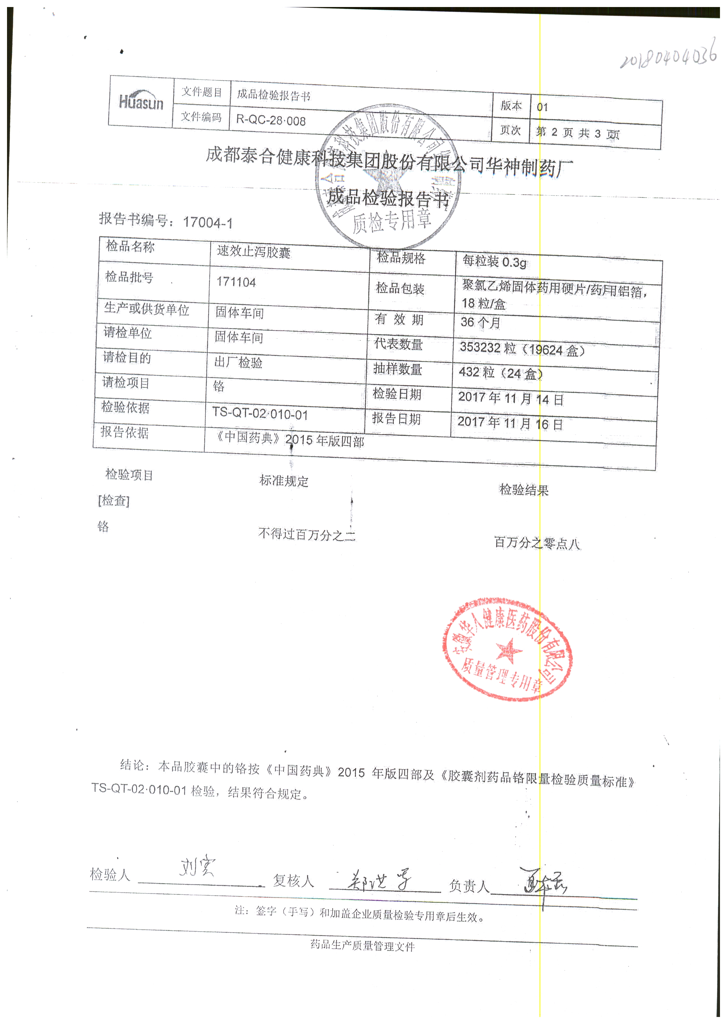 名稱 規(guī)格 批號(hào) 藥檢報(bào)告