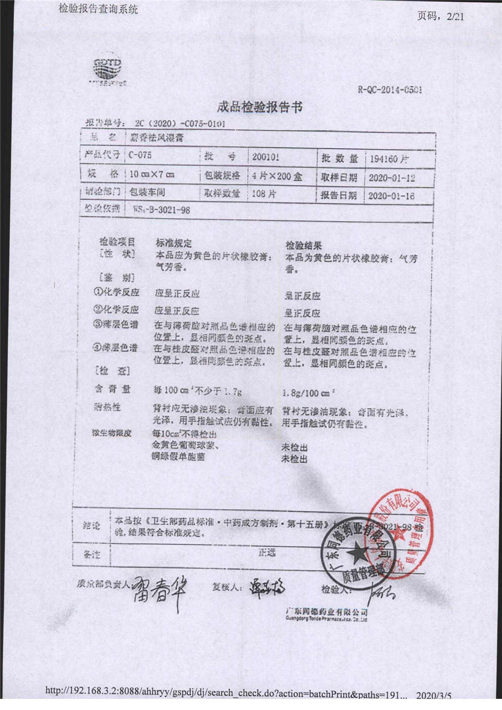 麝香祛風(fēng)濕膏 | 10cm*7cm*4片 | 20180105 | 查看詳情 |
