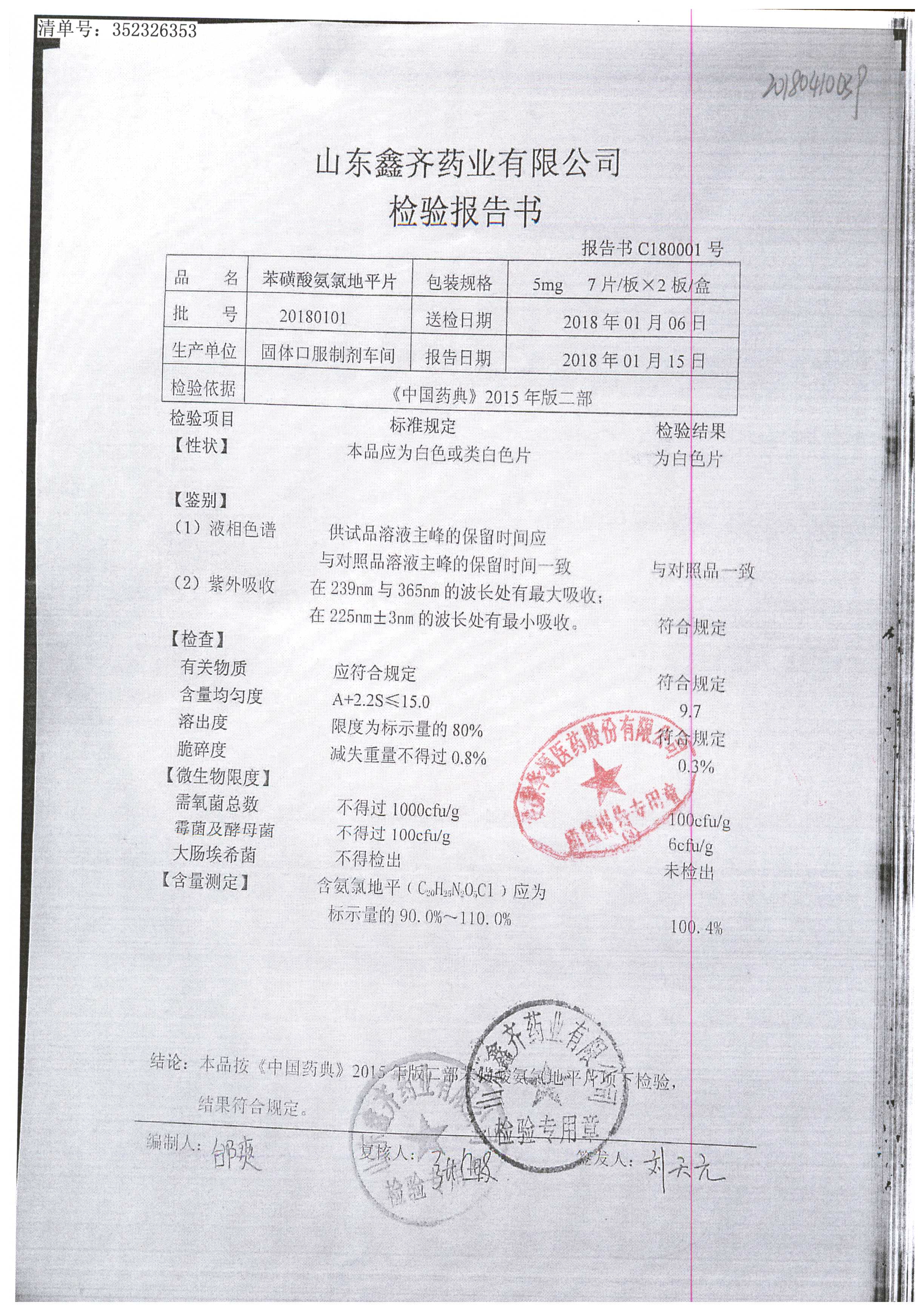 苯磺酸氨氯地平片 | 5mg*14s | 20180602 | 查看詳情 |