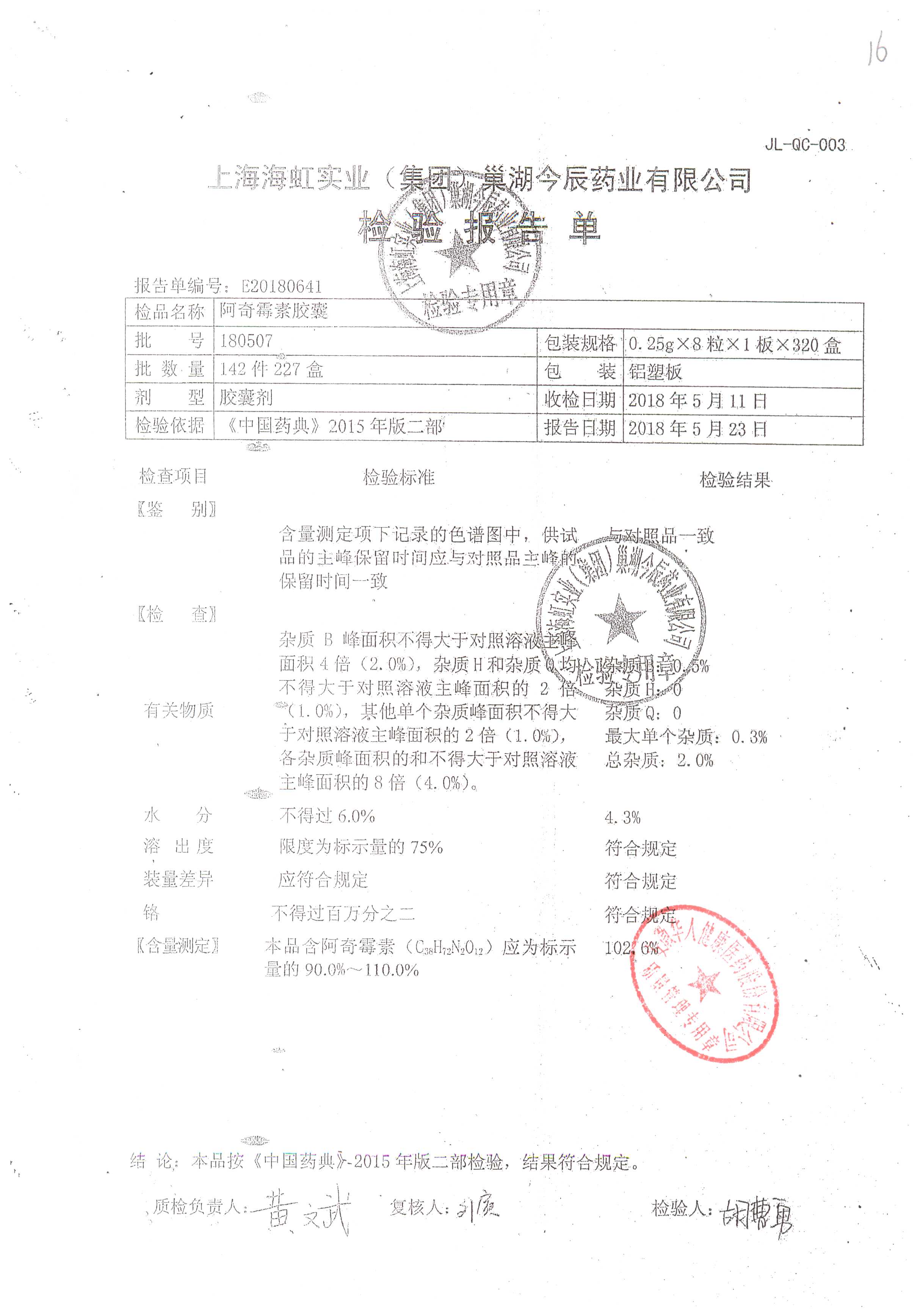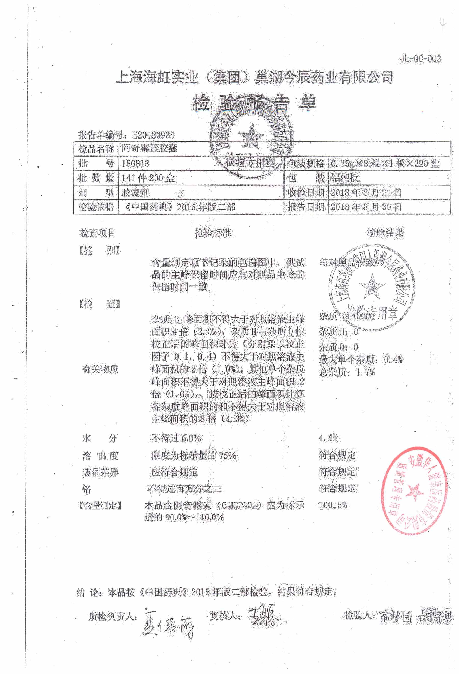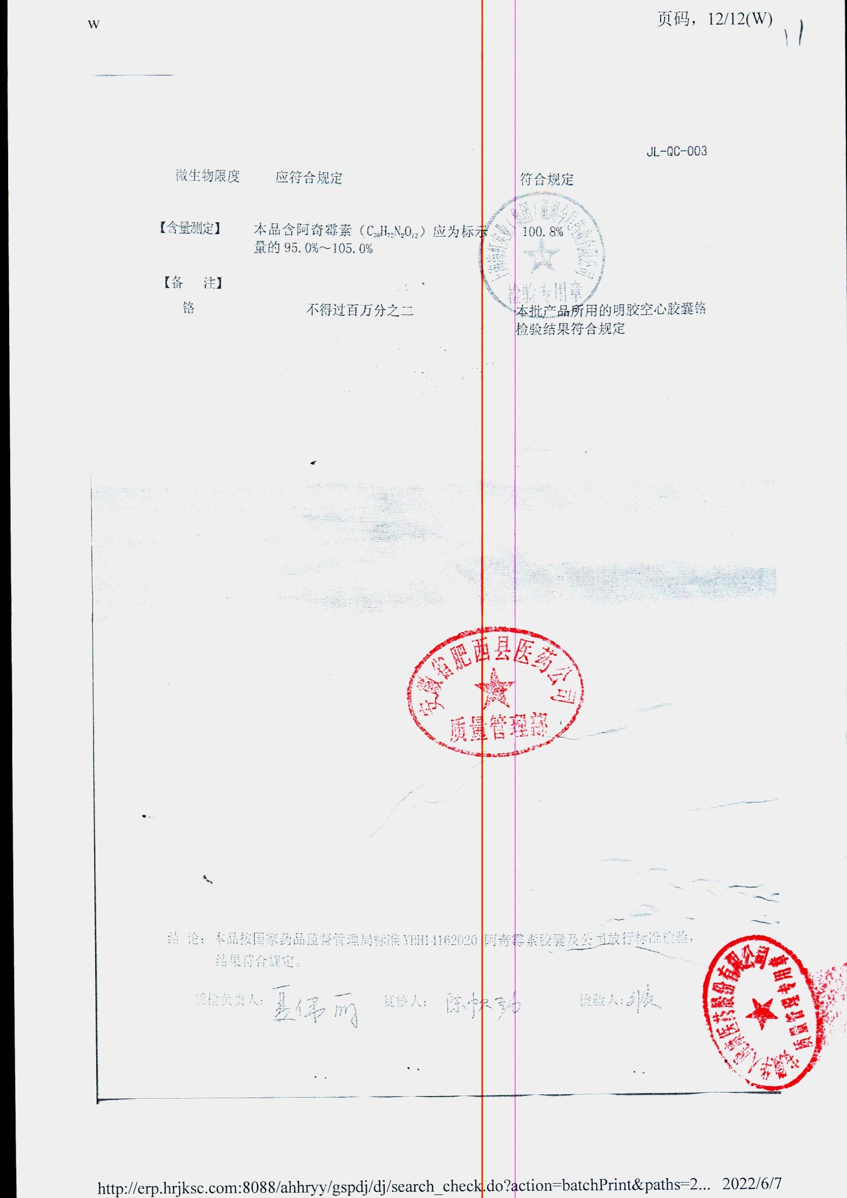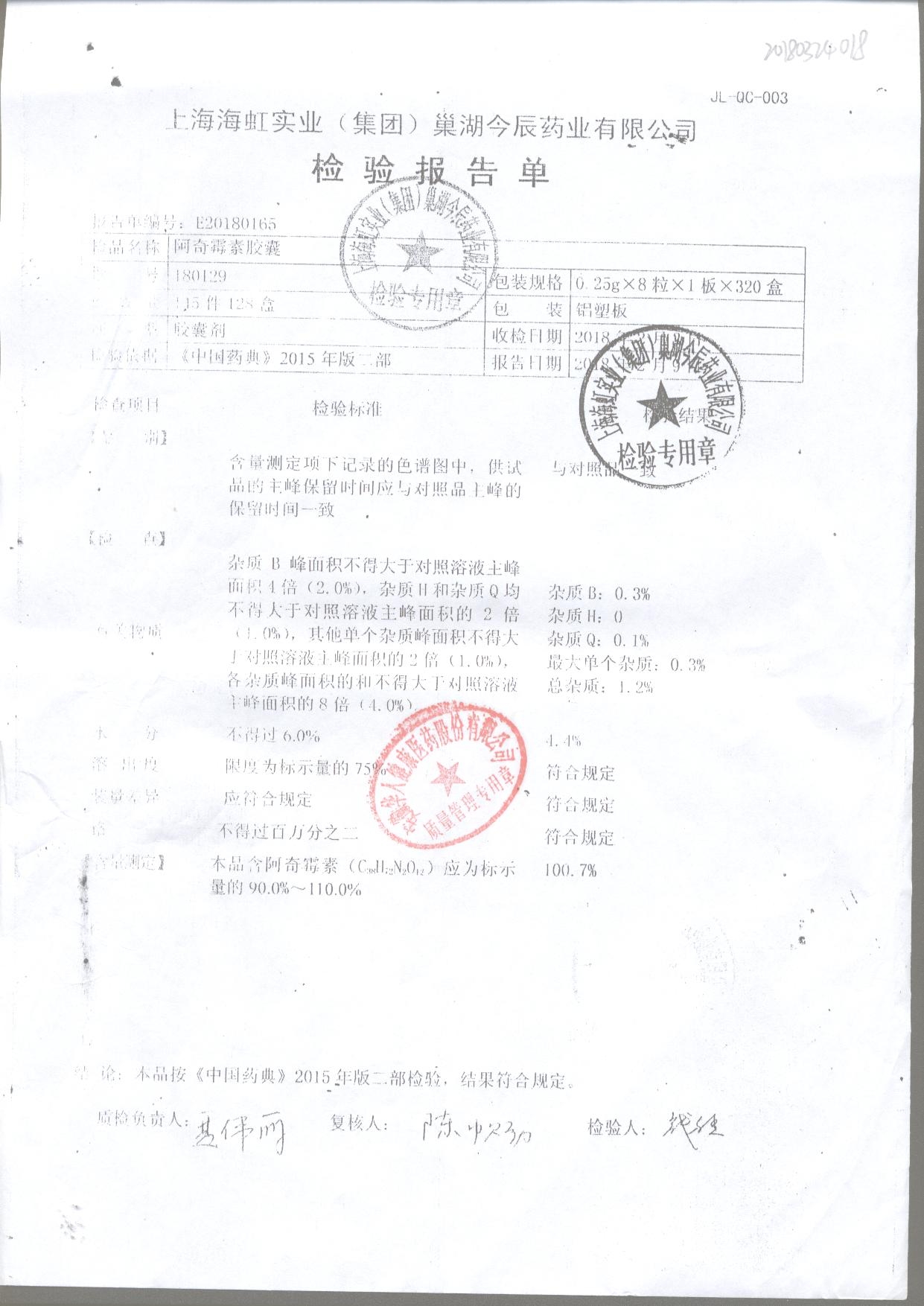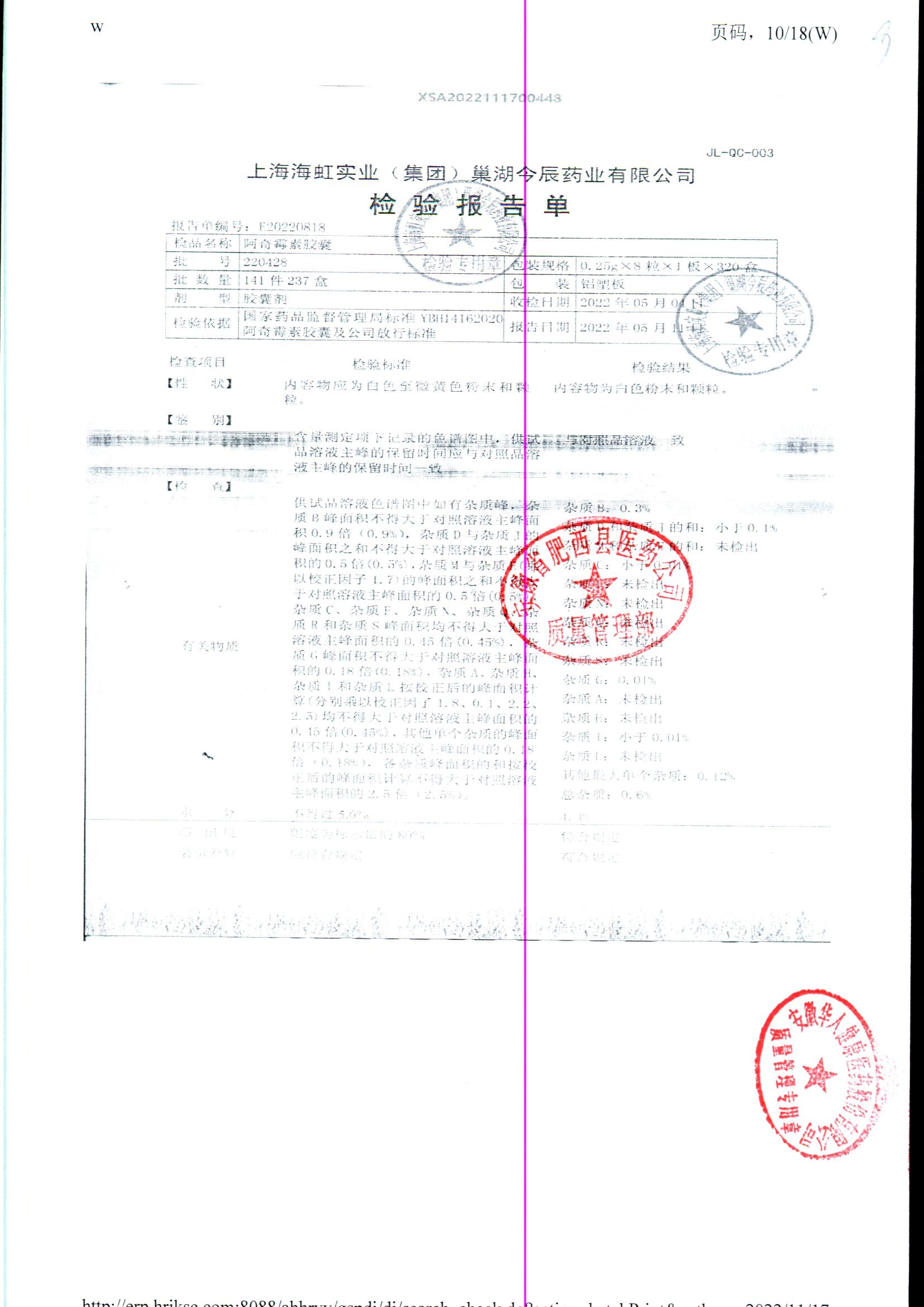 阿奇霉素膠囊 | 0.25g*8s | 210303(1/2) | 查看詳情 |