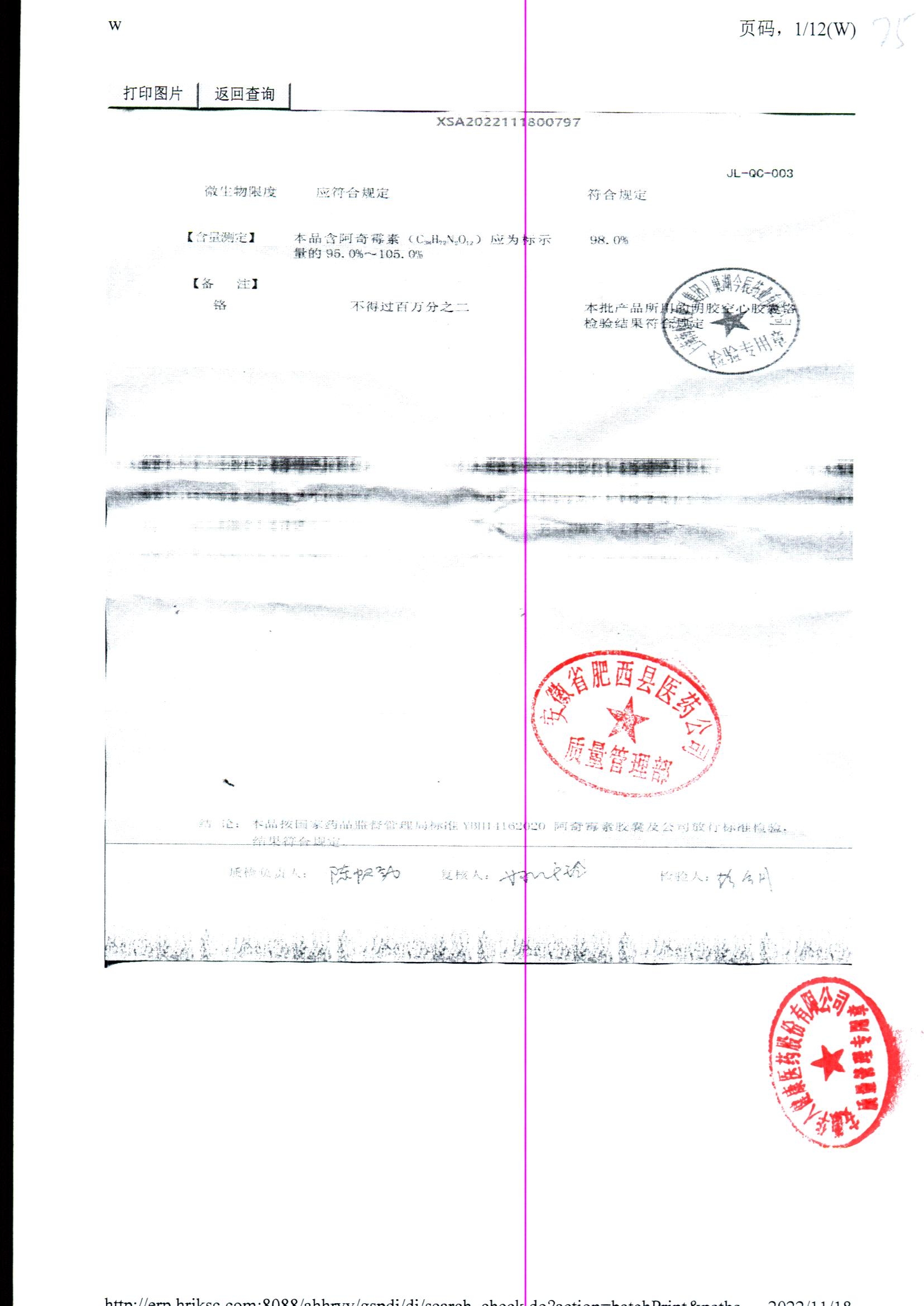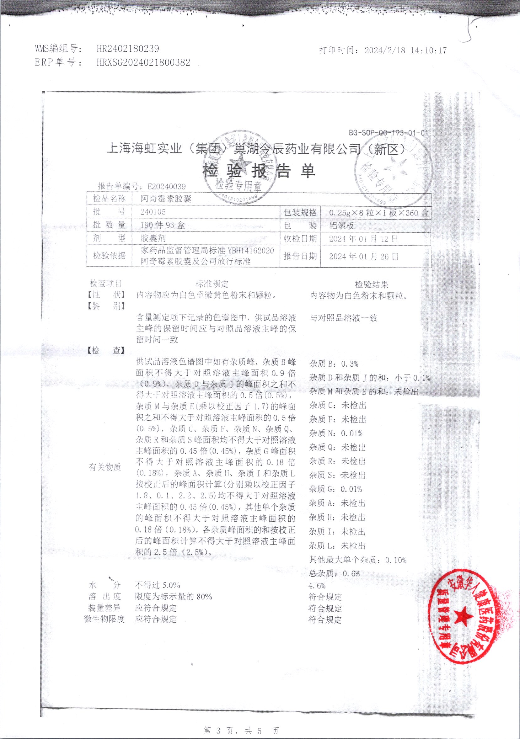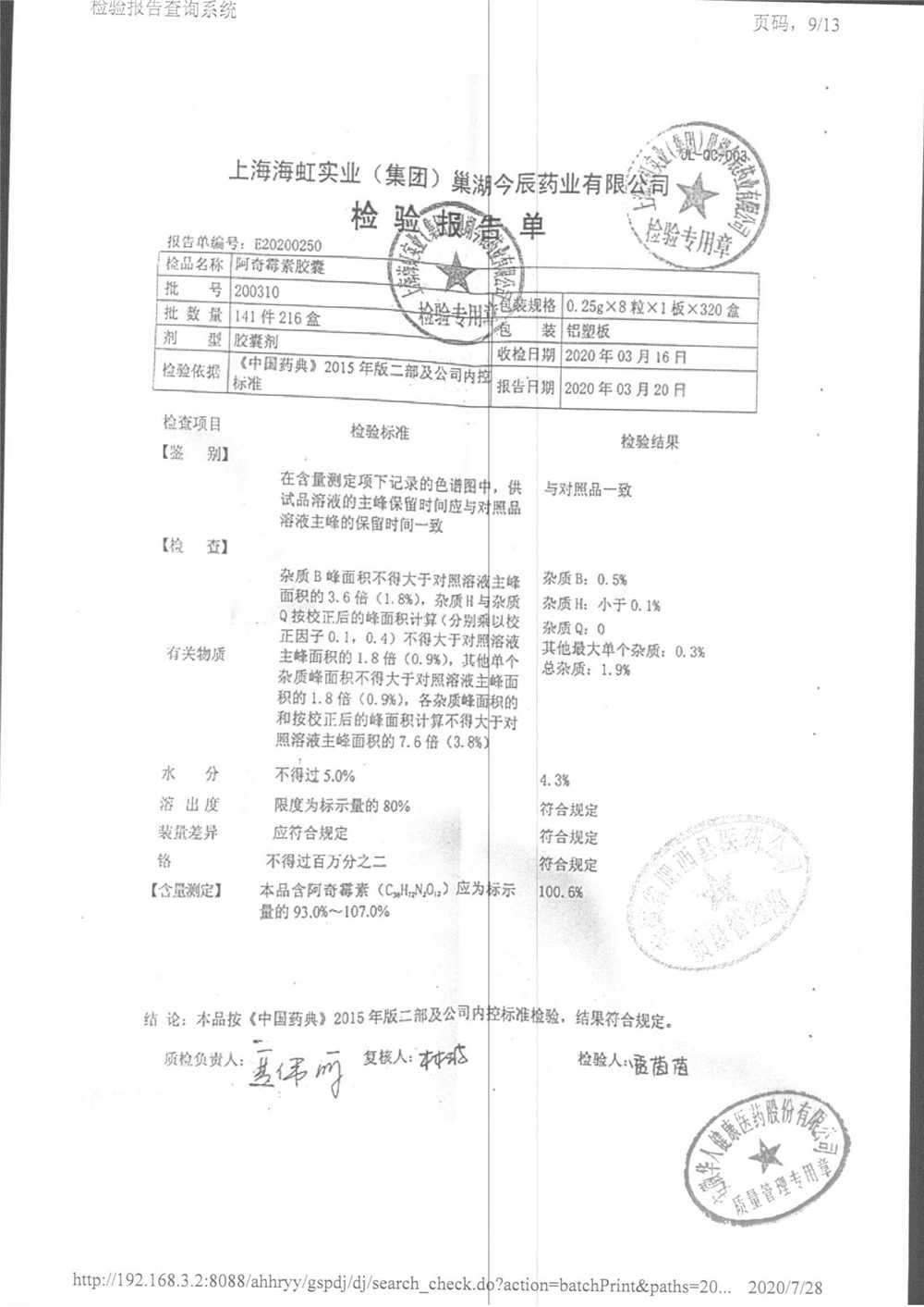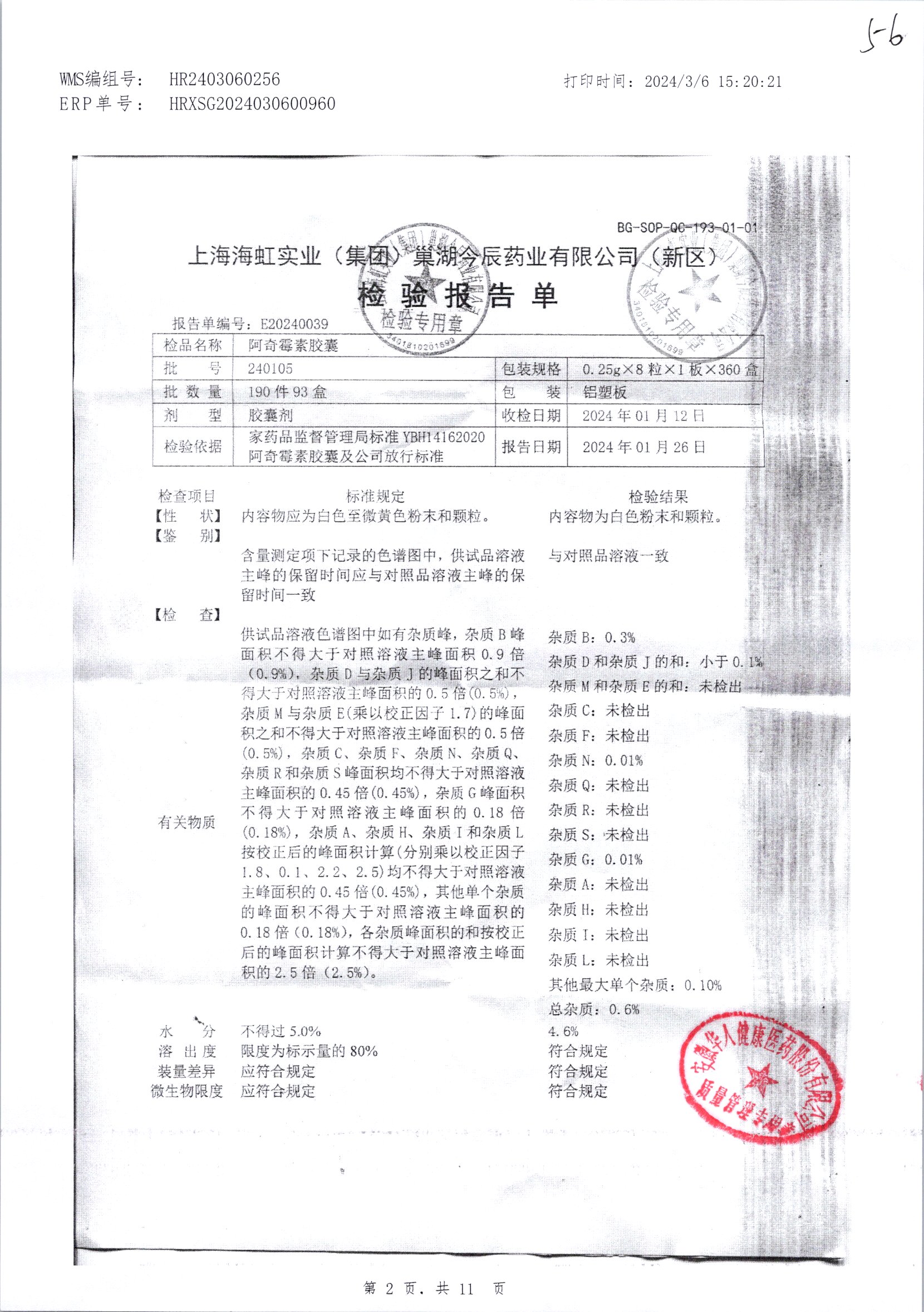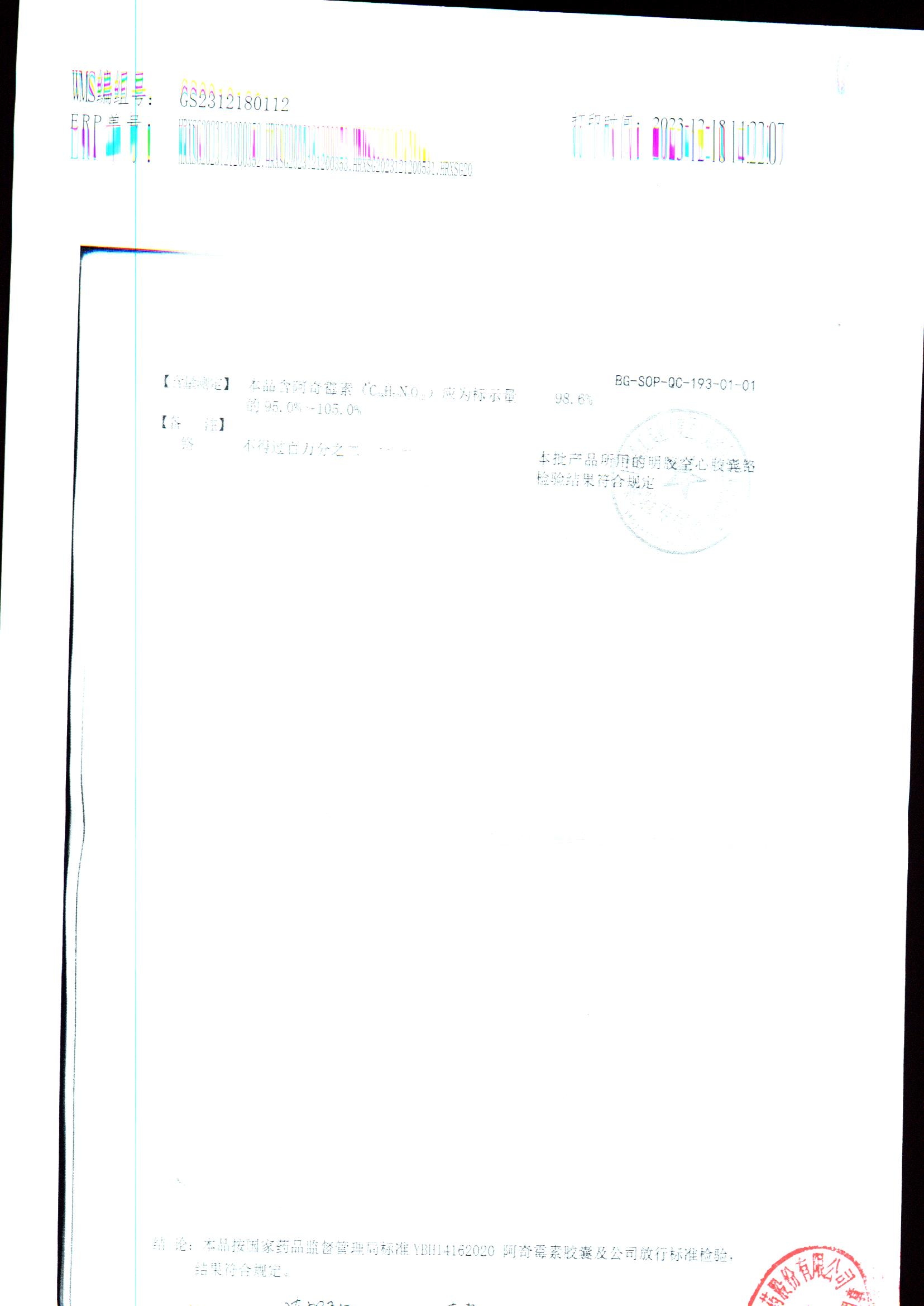 阿奇霉素膠囊 | 0.25g*8s | 210303(1/2) | 查看詳情 |