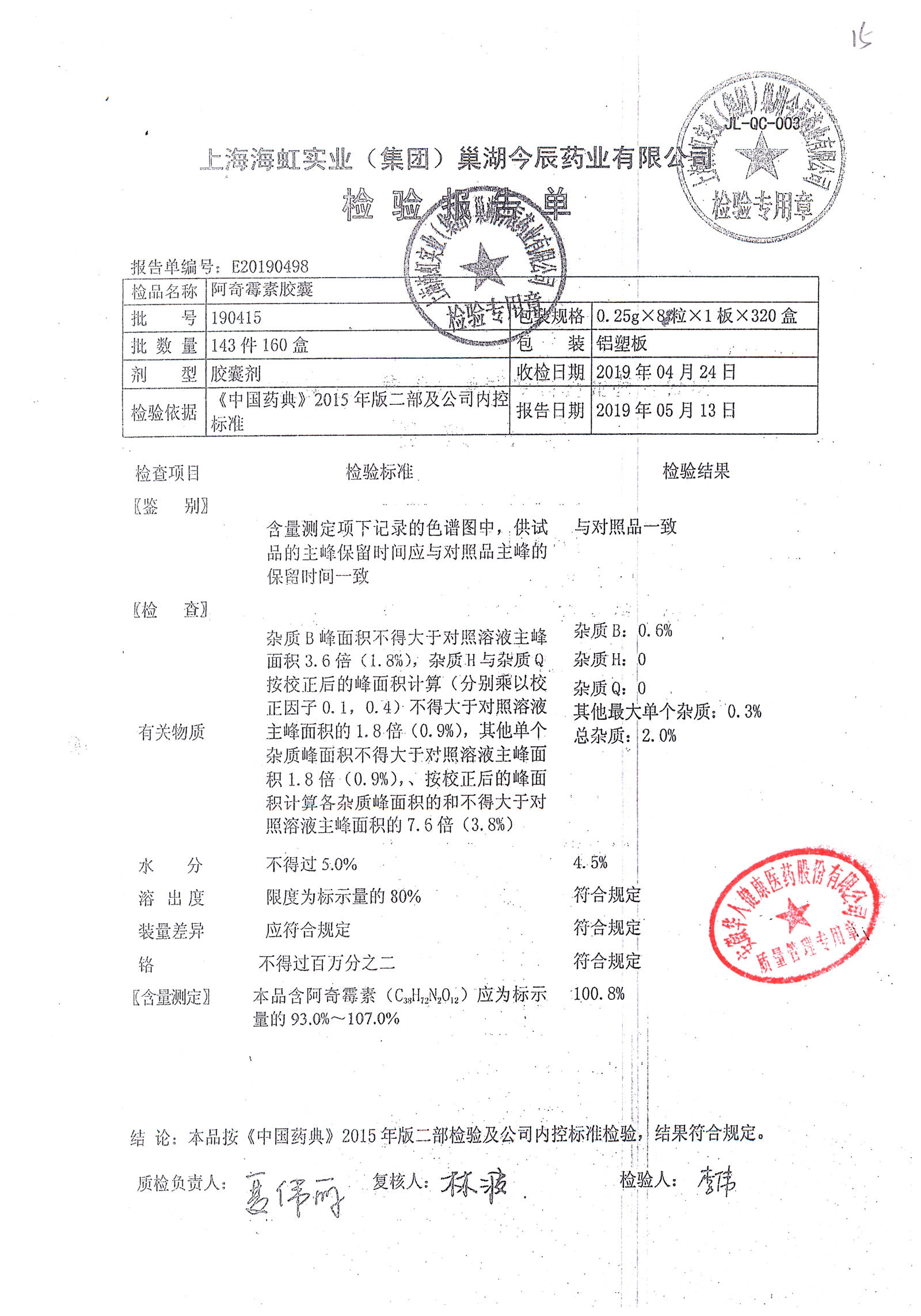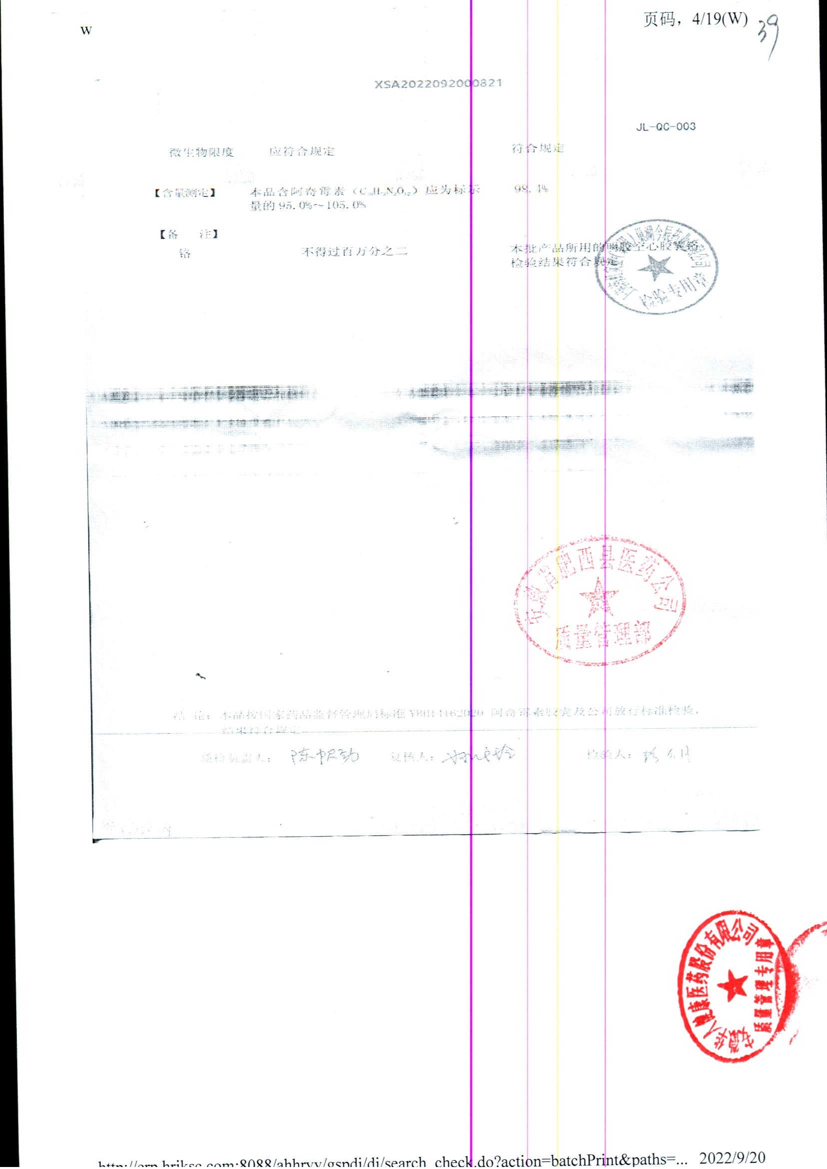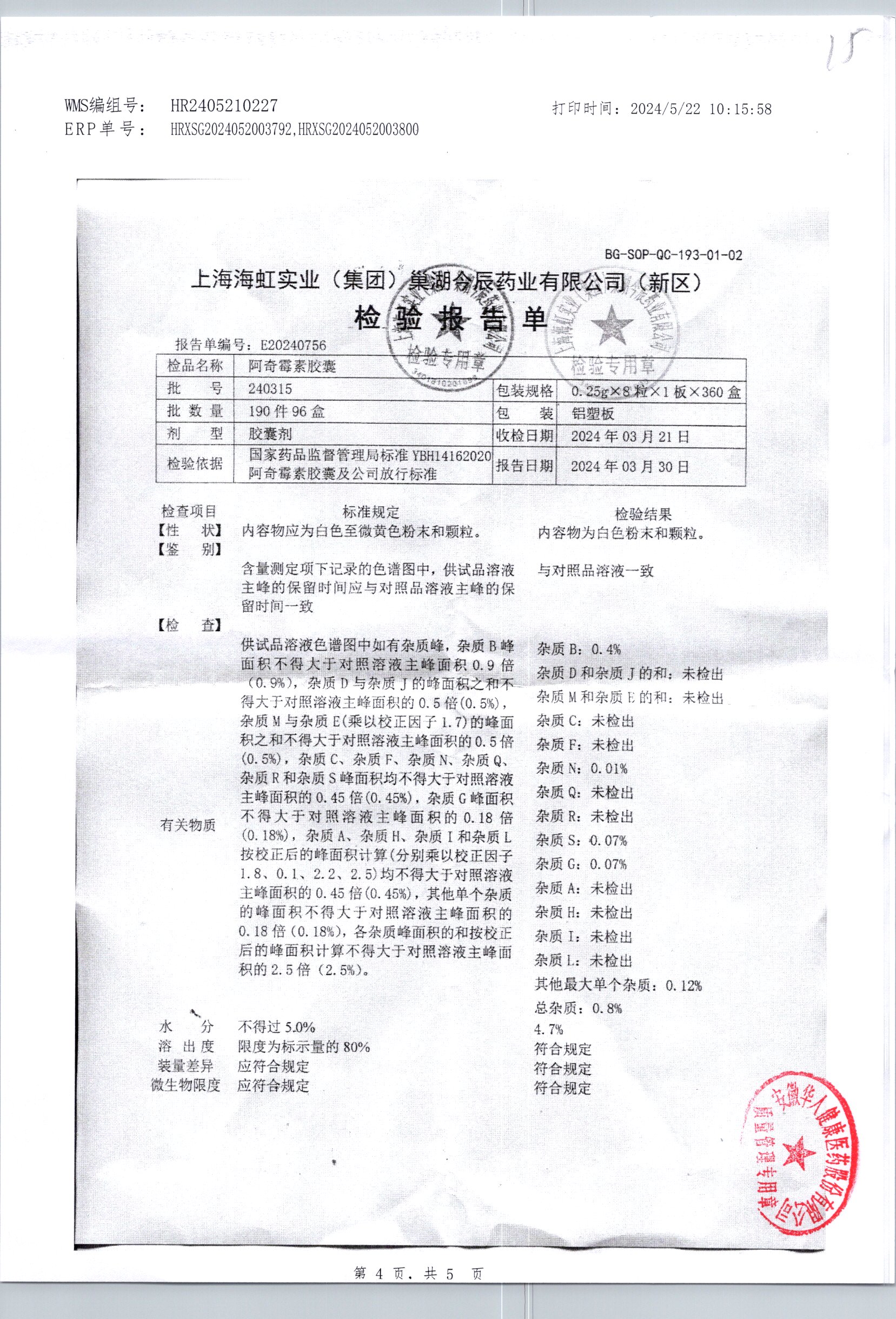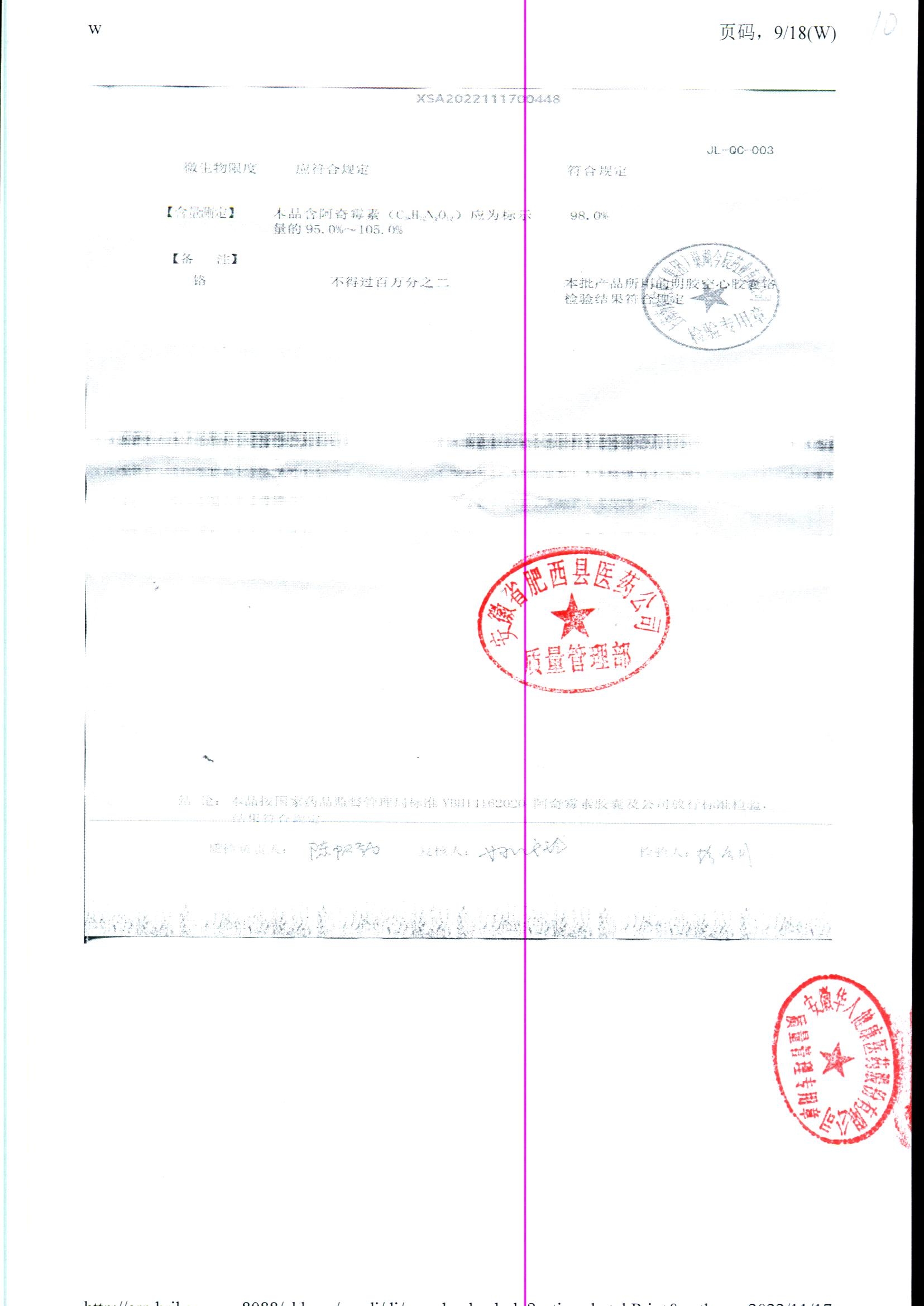 阿奇霉素膠囊 | 0.25g*8s | 210303(1/2) | 查看詳情 |