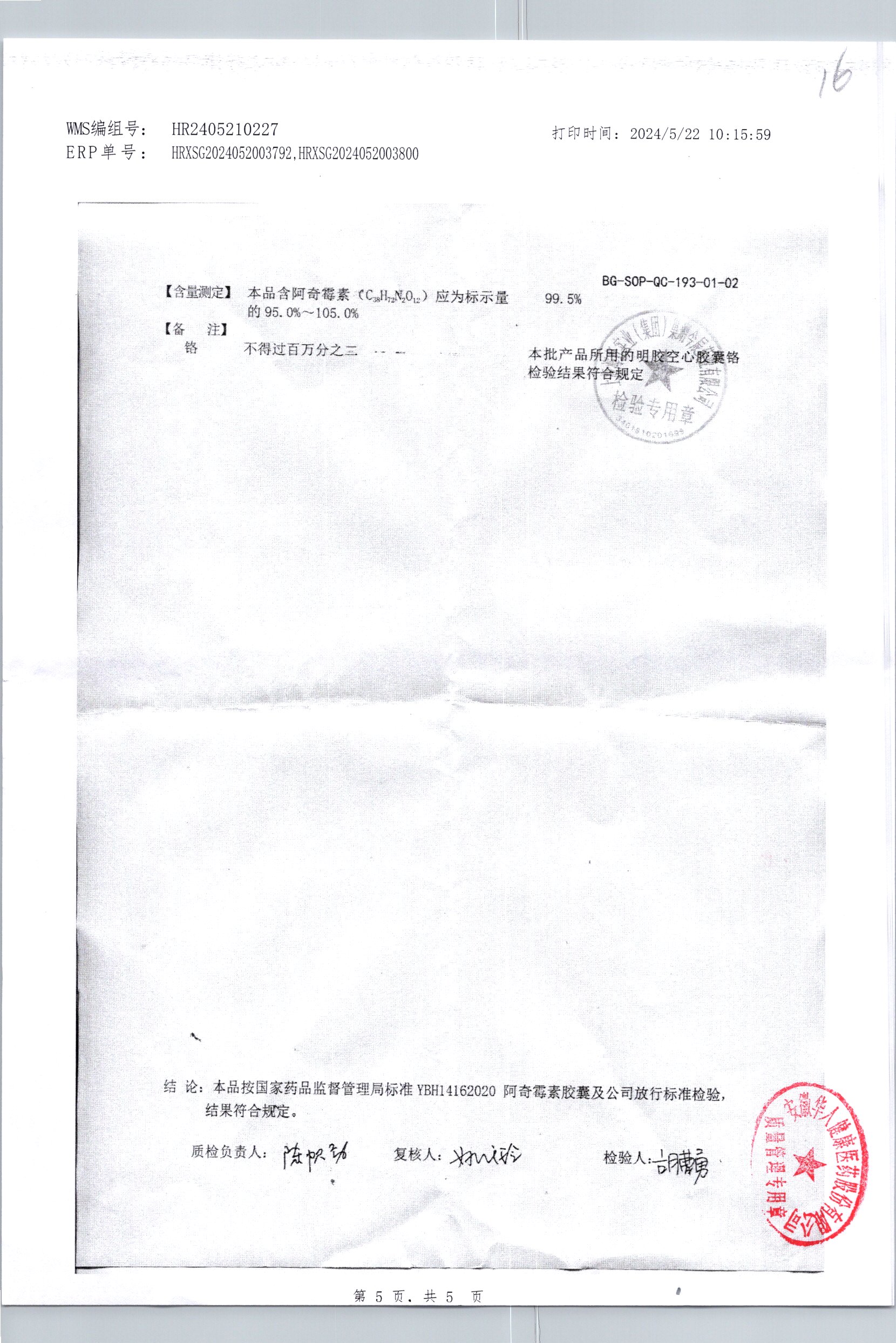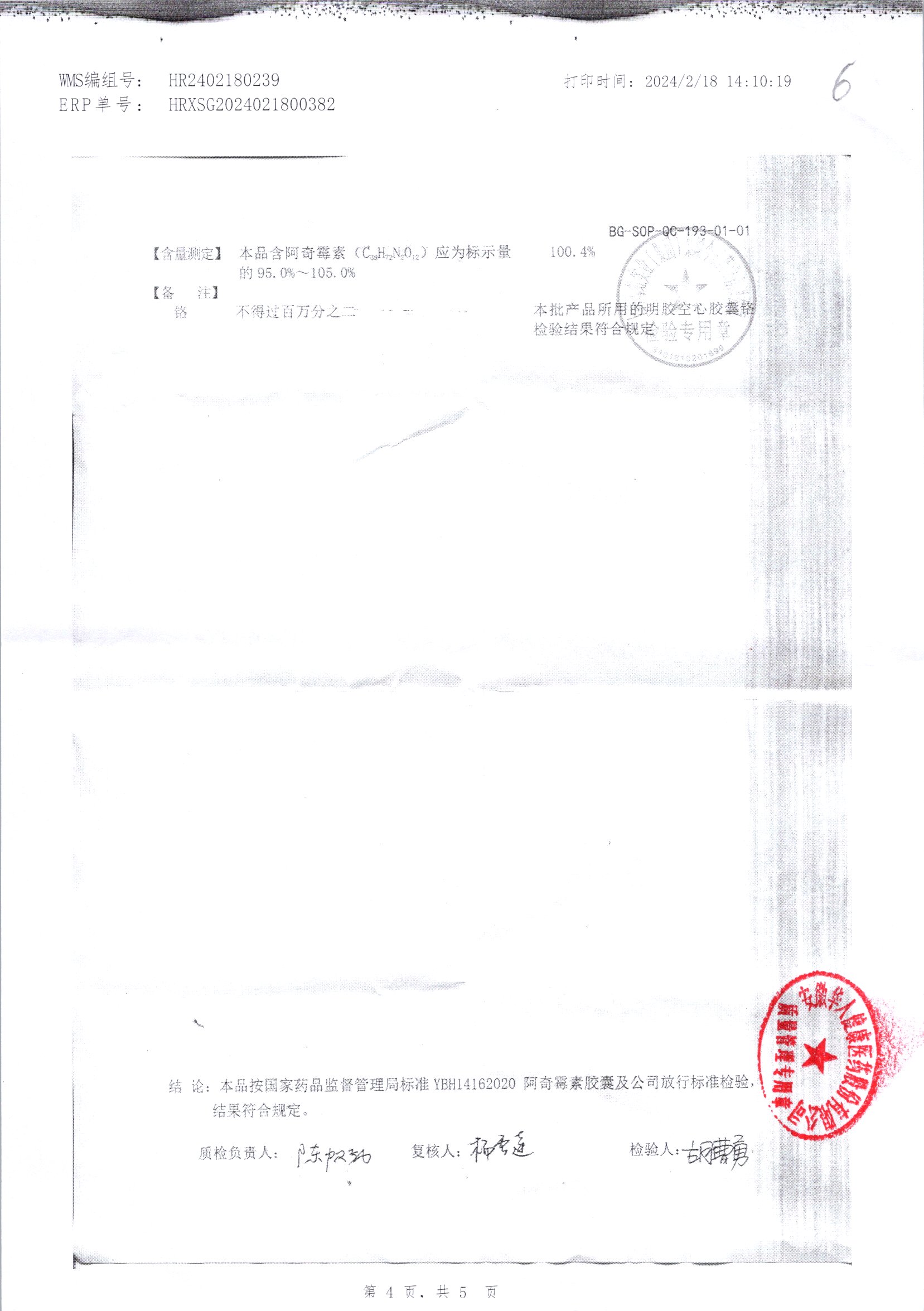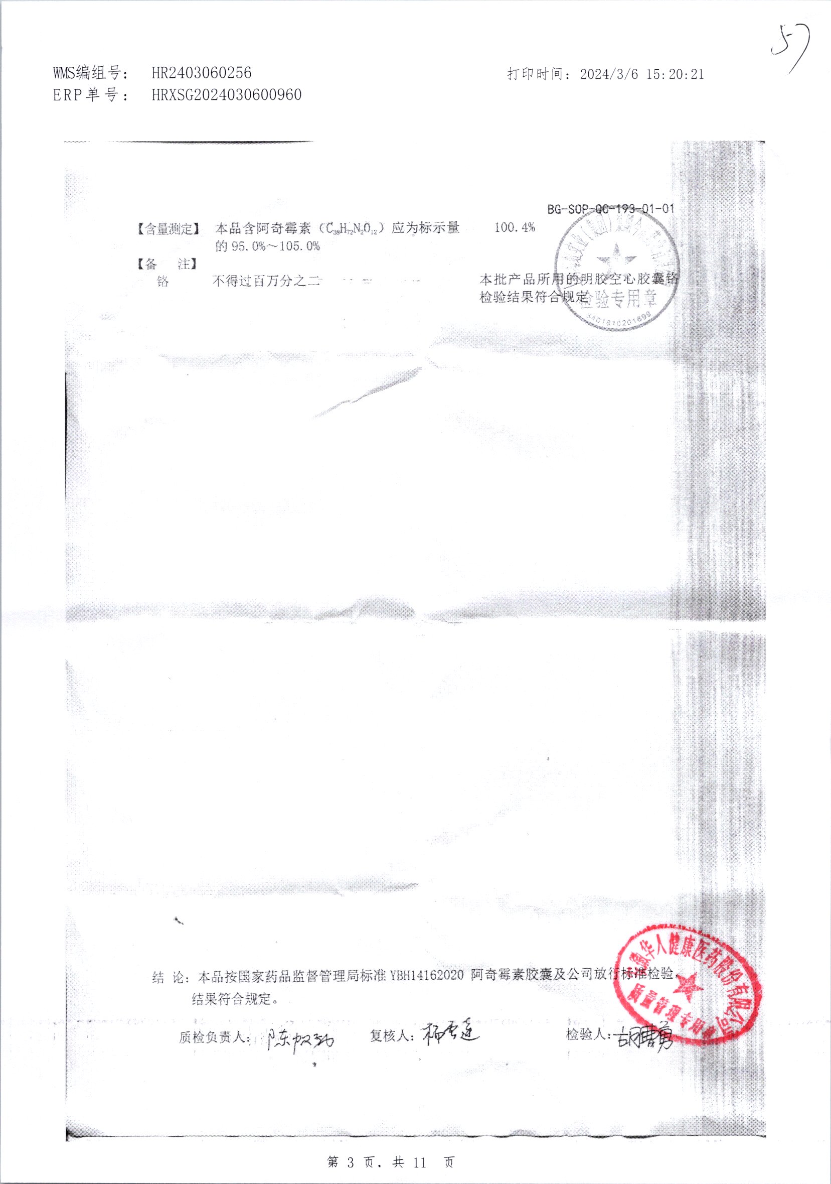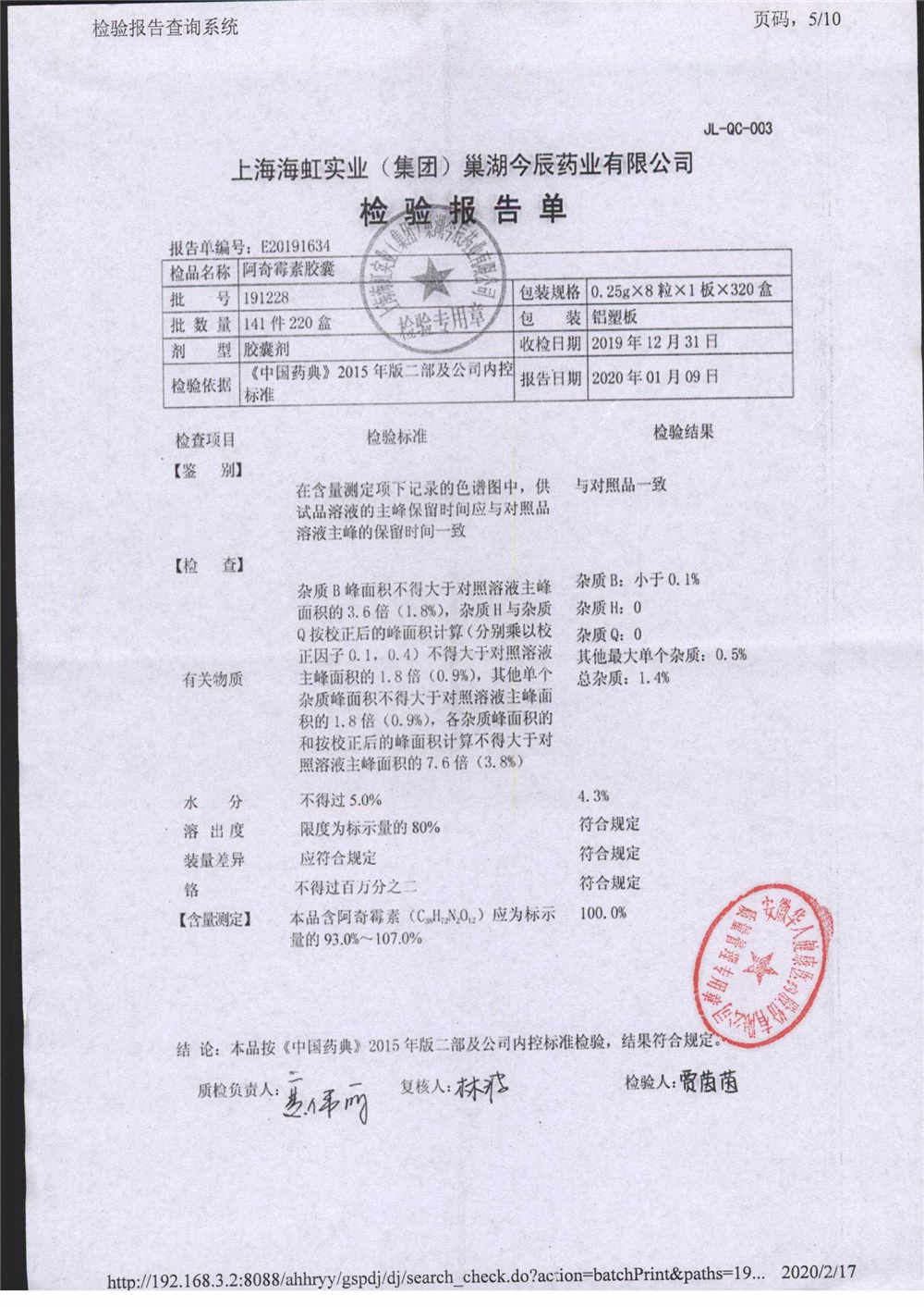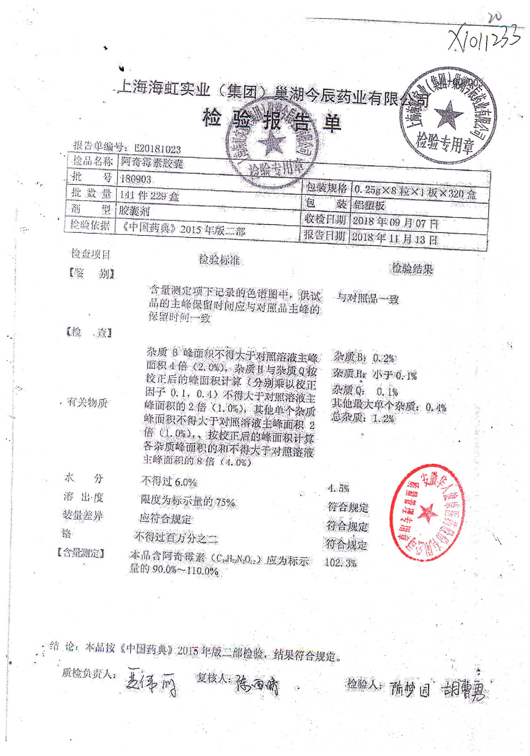 阿奇霉素膠囊 | 0.25g*8s | 210303(1/2) | 查看詳情 |