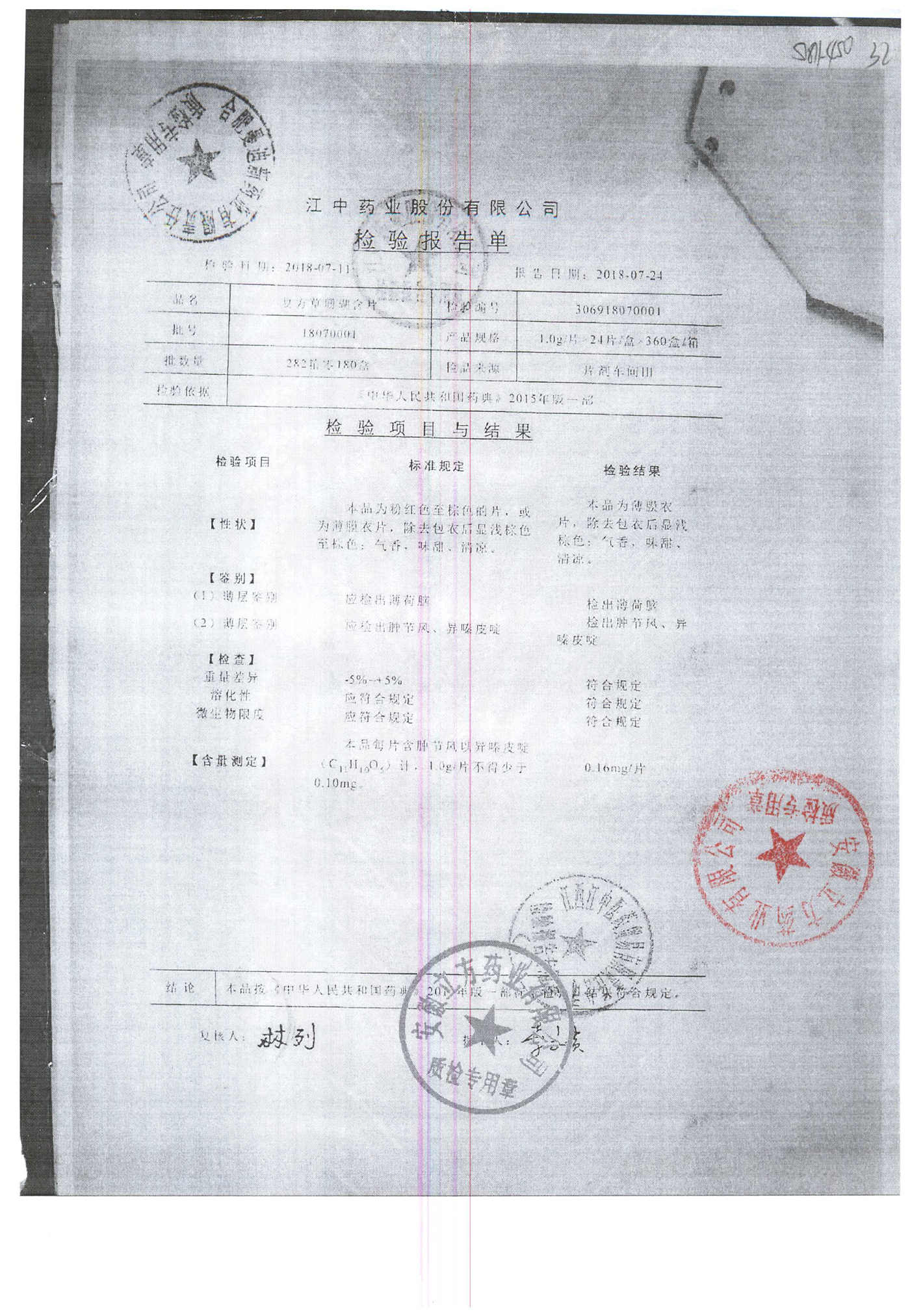 名稱 | 規(guī)格 | 批號(hào) | 藥檢報(bào)告 |