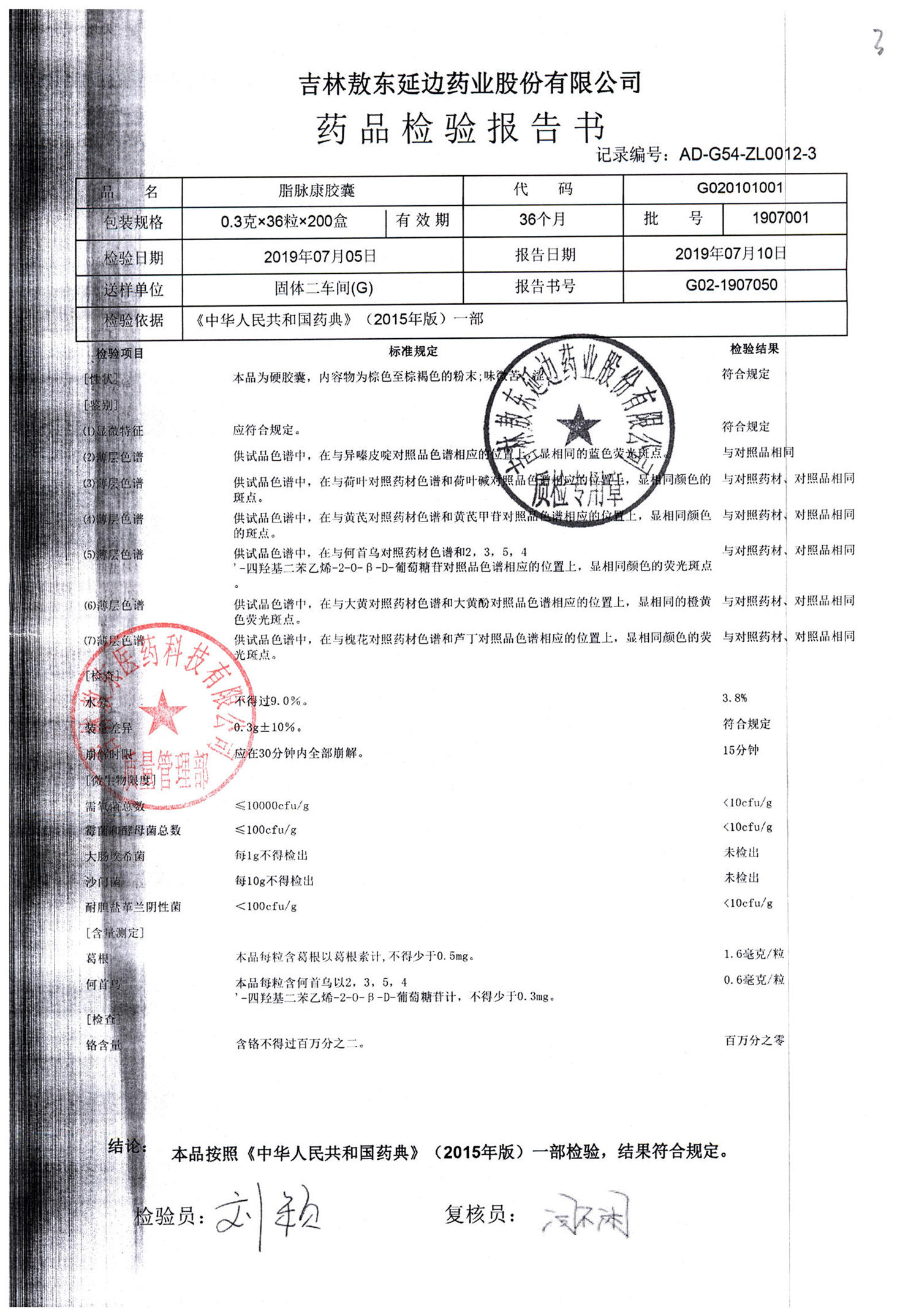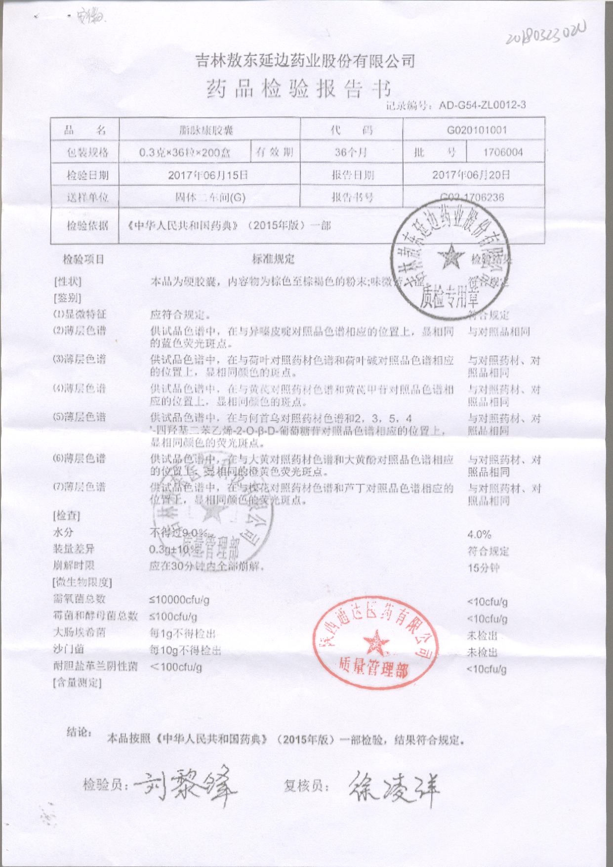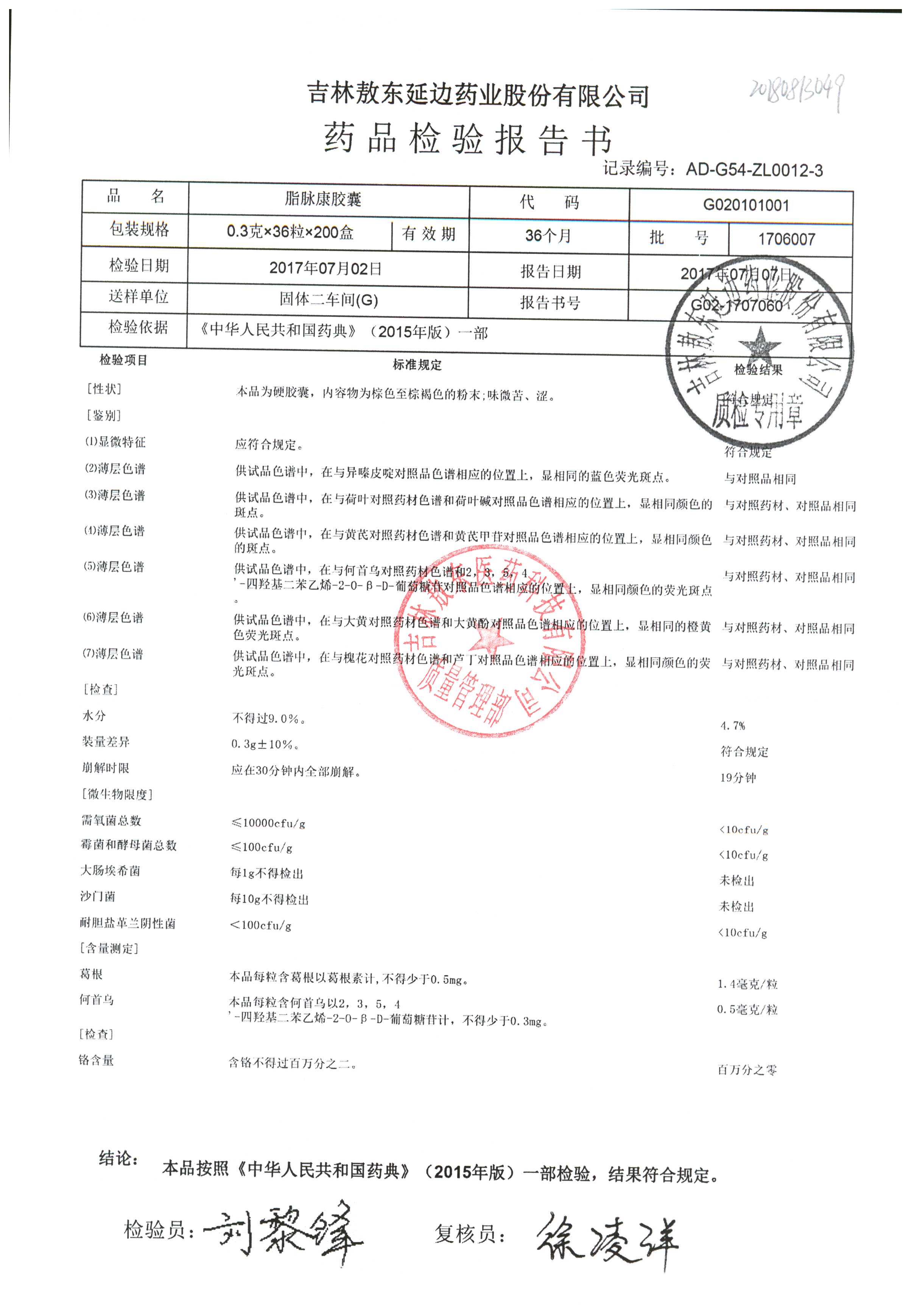 脂脈康膠囊 | 0.3g*36s | 2201001 | 查看詳情 |