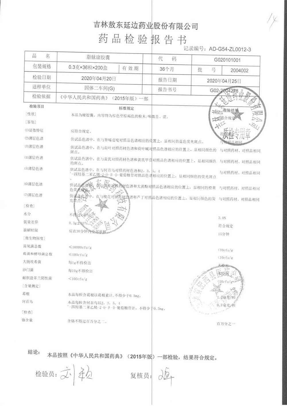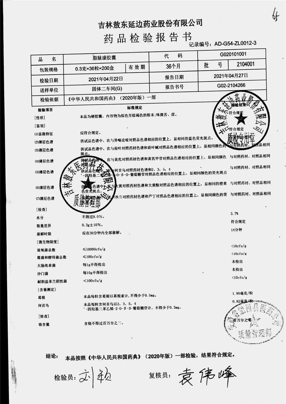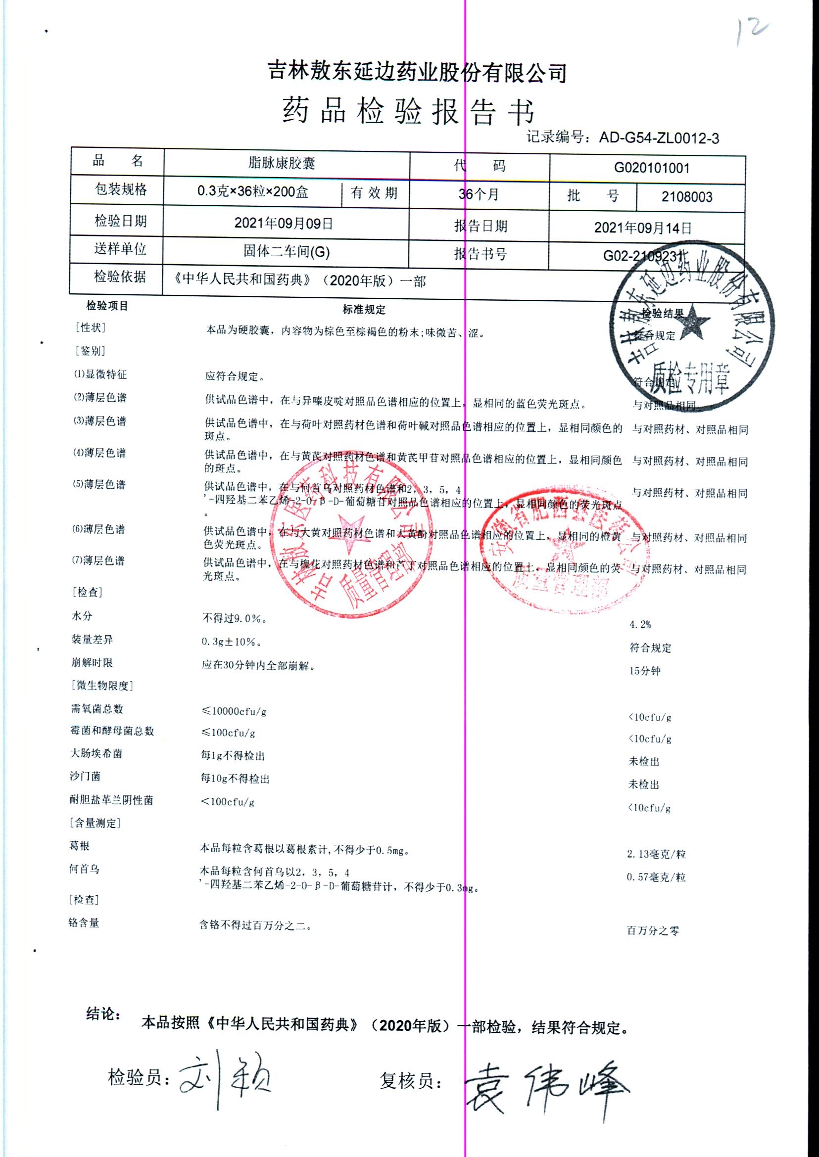 脂脈康膠囊 | 0.3g*36s | 2102001 | 查看詳情 |