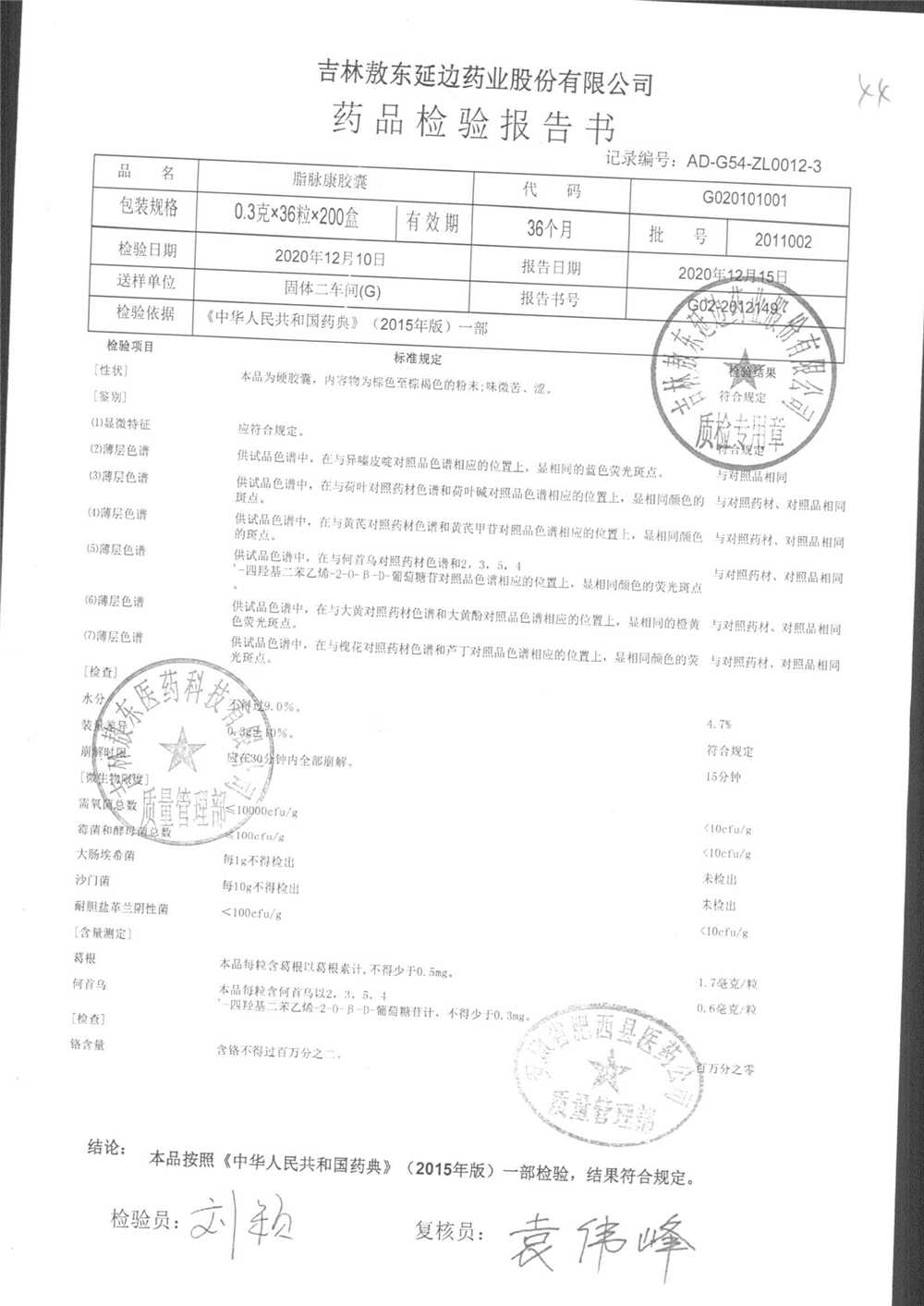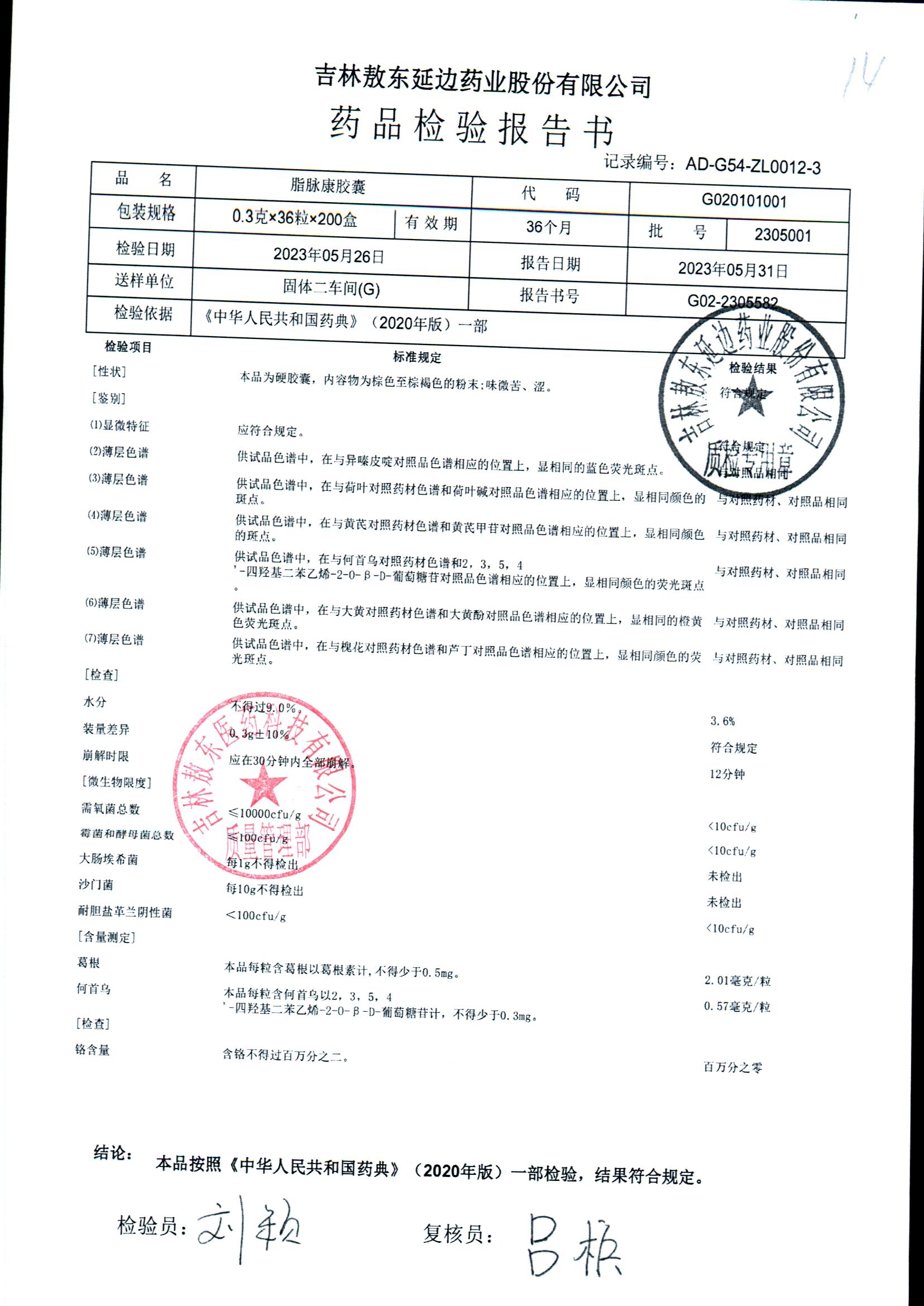 脂脈康膠囊 | 0.3g*36s | 2305001 | 查看詳情 |