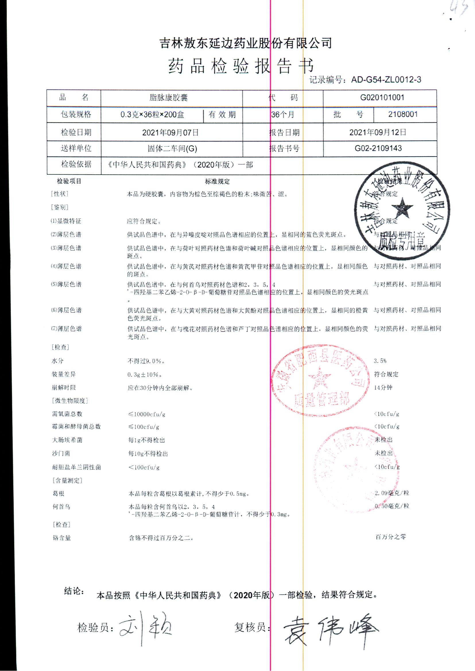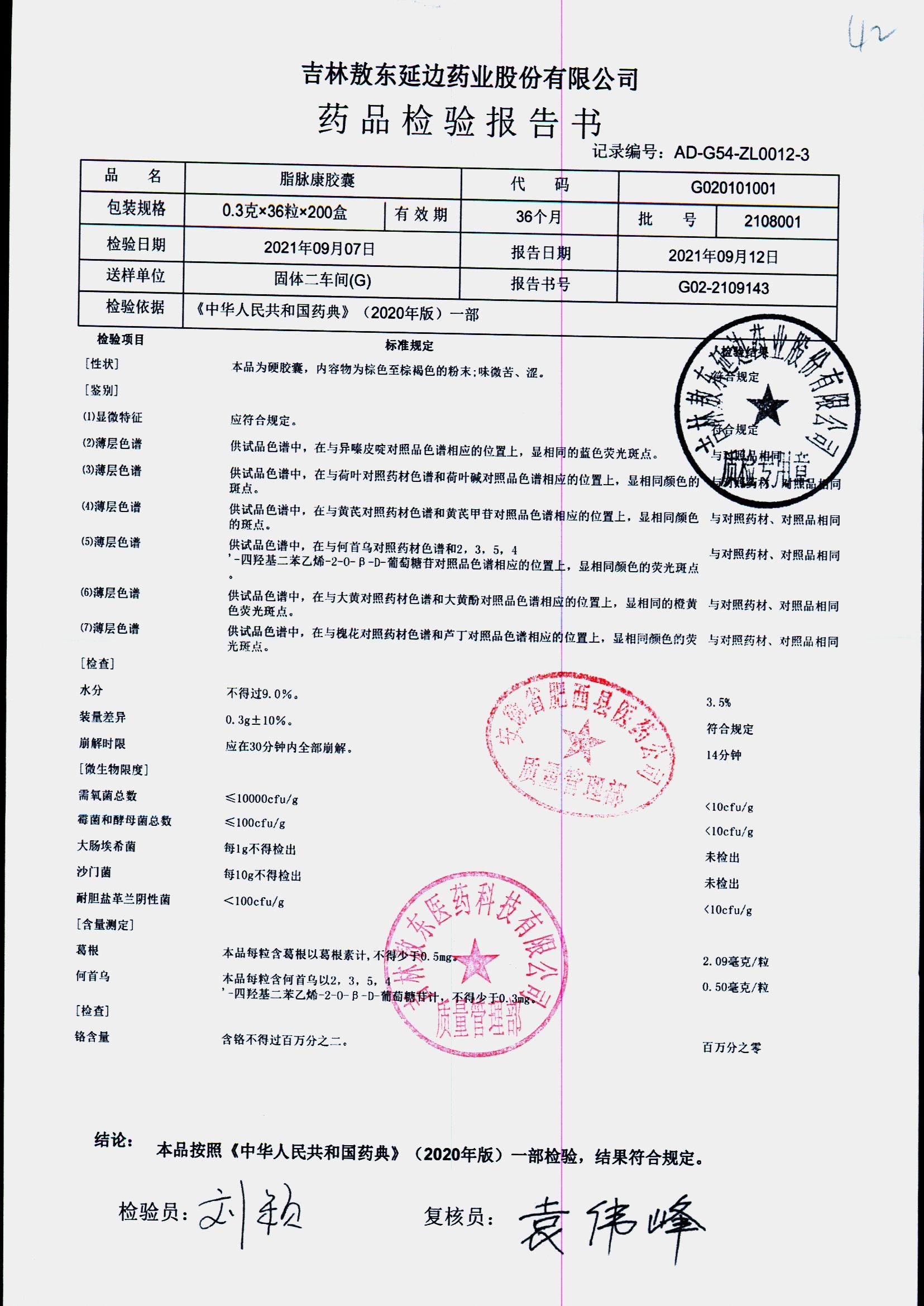 脂脈康膠囊 | 0.3g*36s | 2108001 | 查看詳情 |