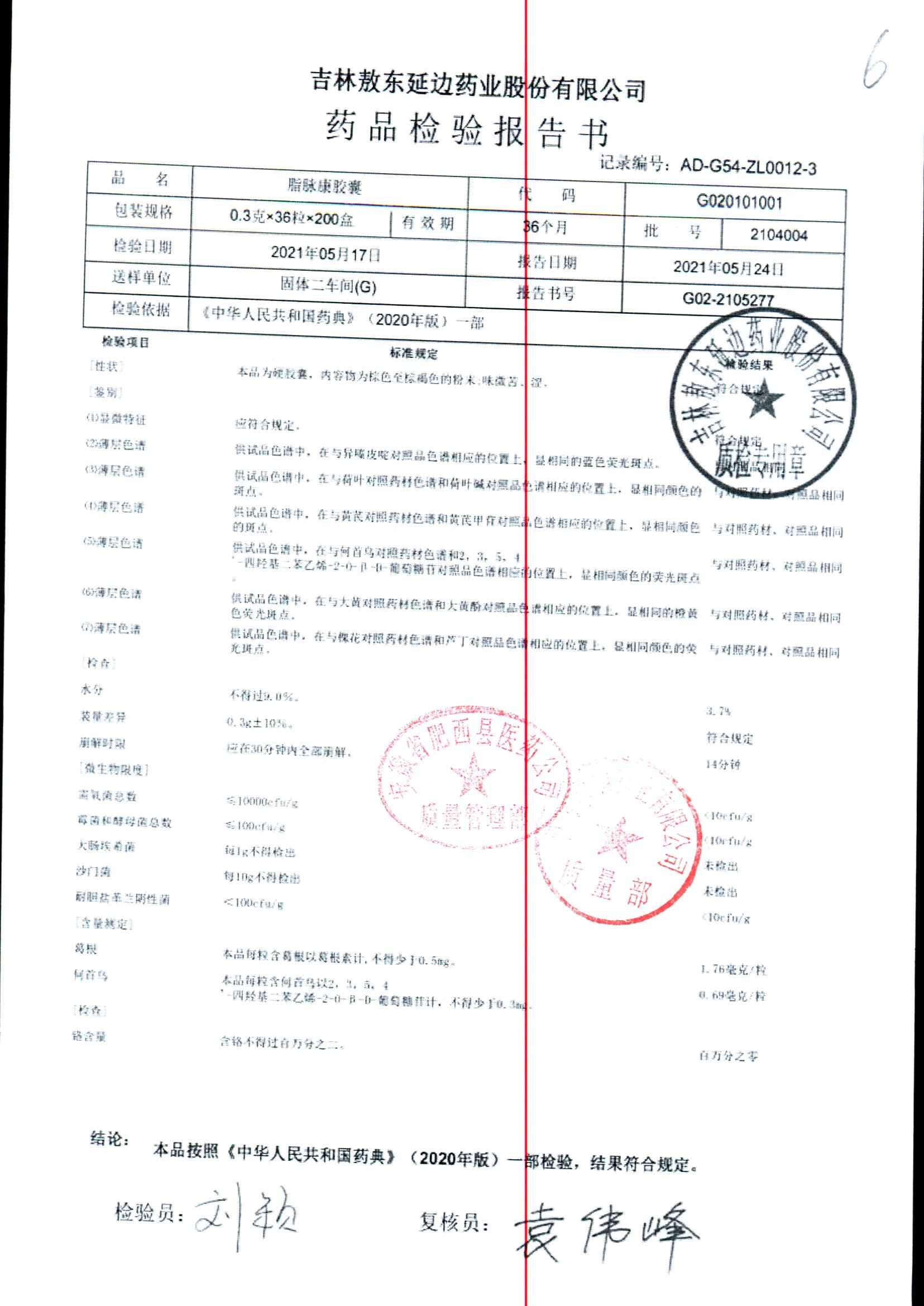 脂脈康膠囊 | 0.3g*36s | 2108002 | 查看詳情 |