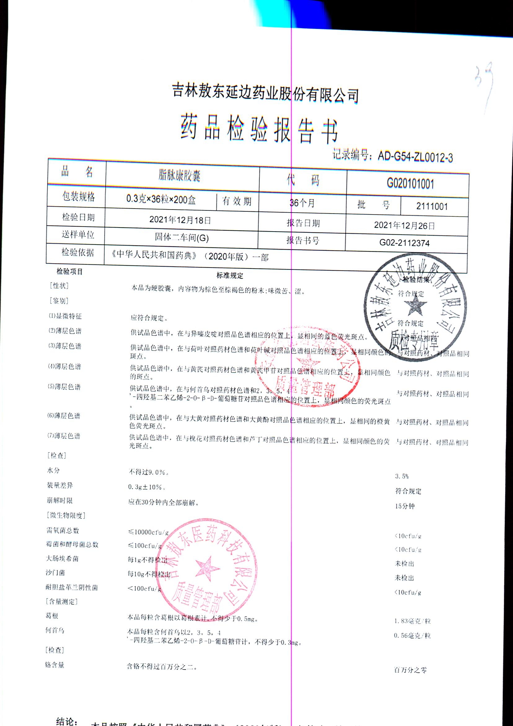 脂脈康膠囊 | 0.3g*36s | 2111001 | 查看詳情 |