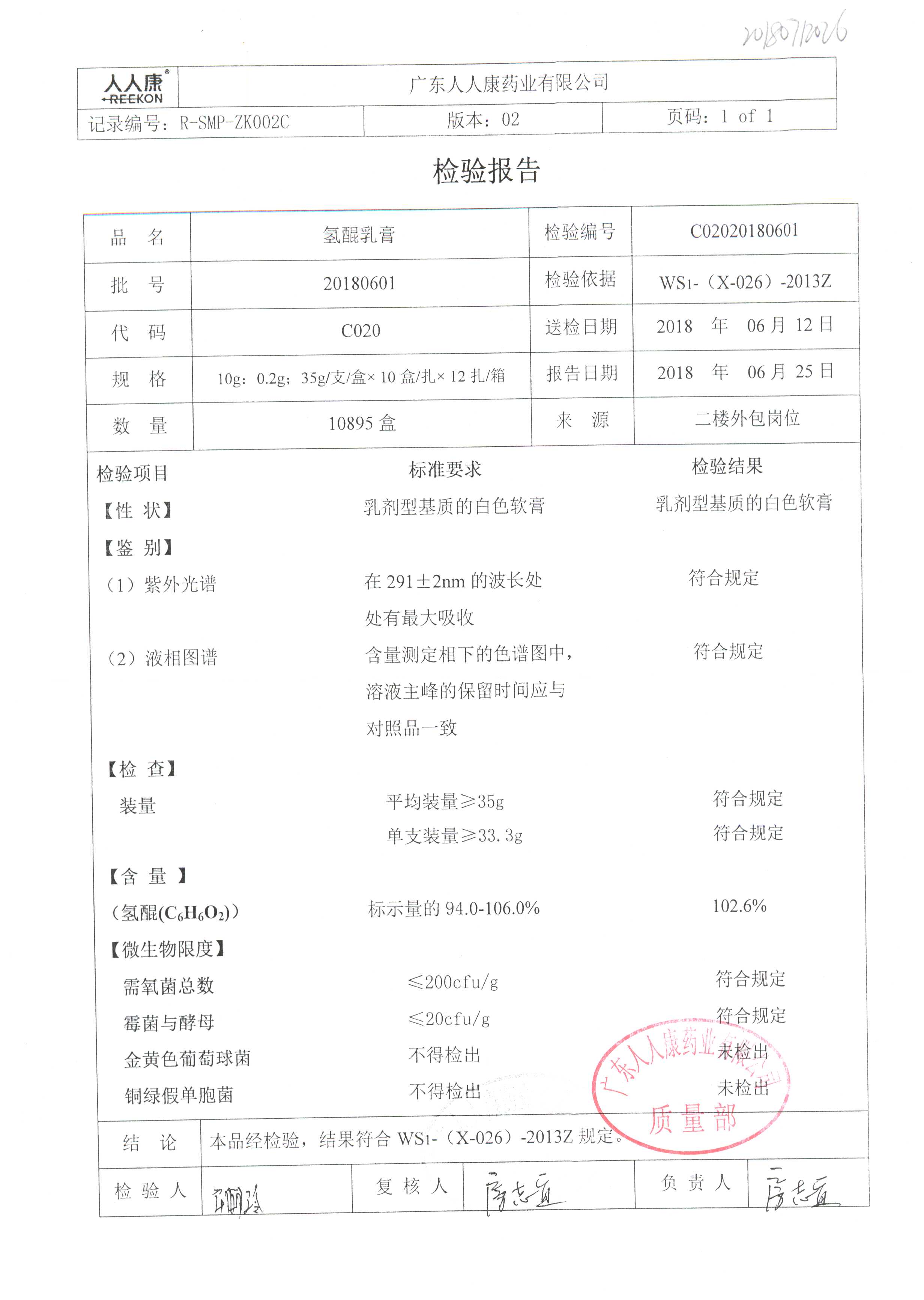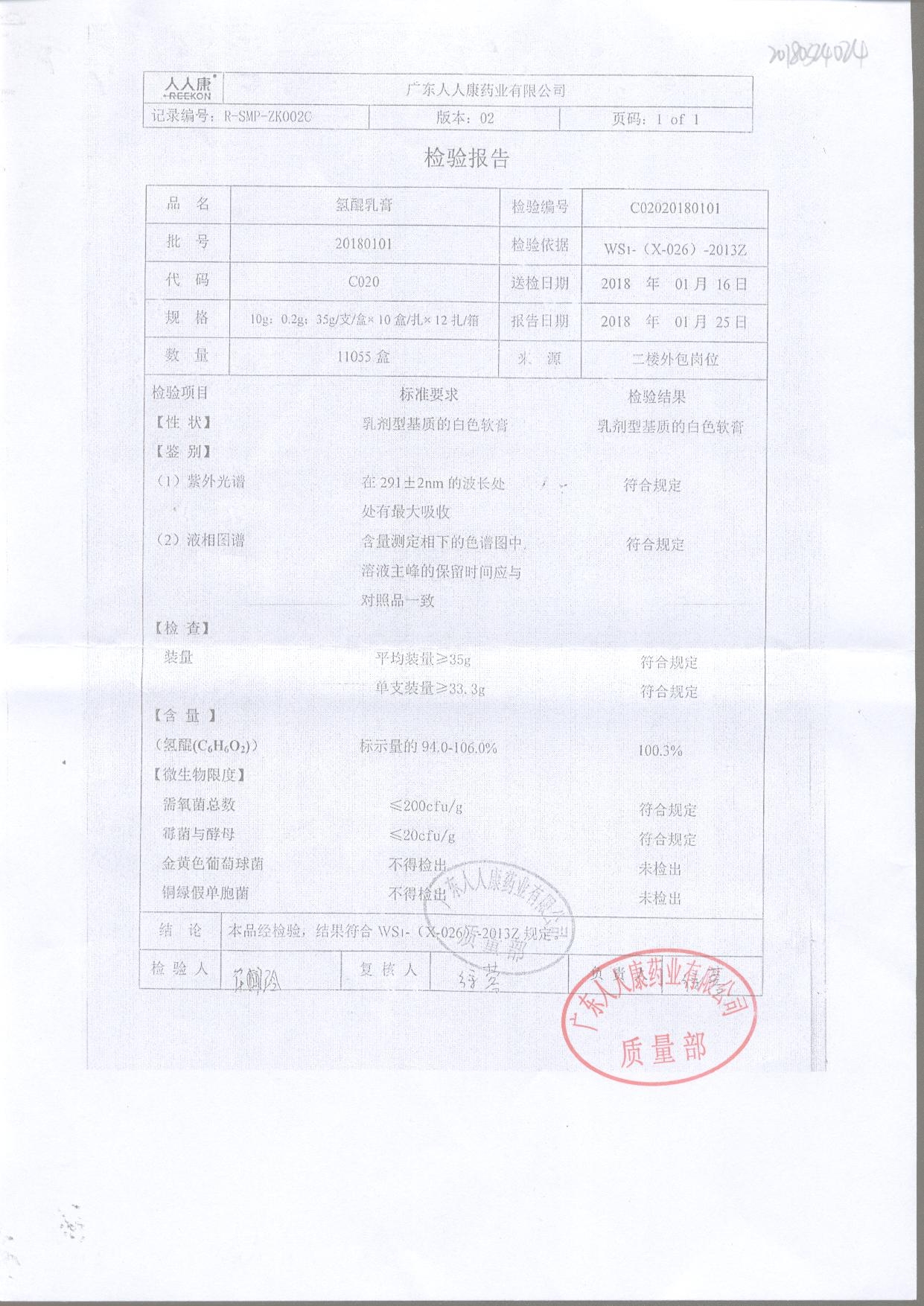 氫醌乳膏 10g:0.2g:35g支 20180101 查看詳情