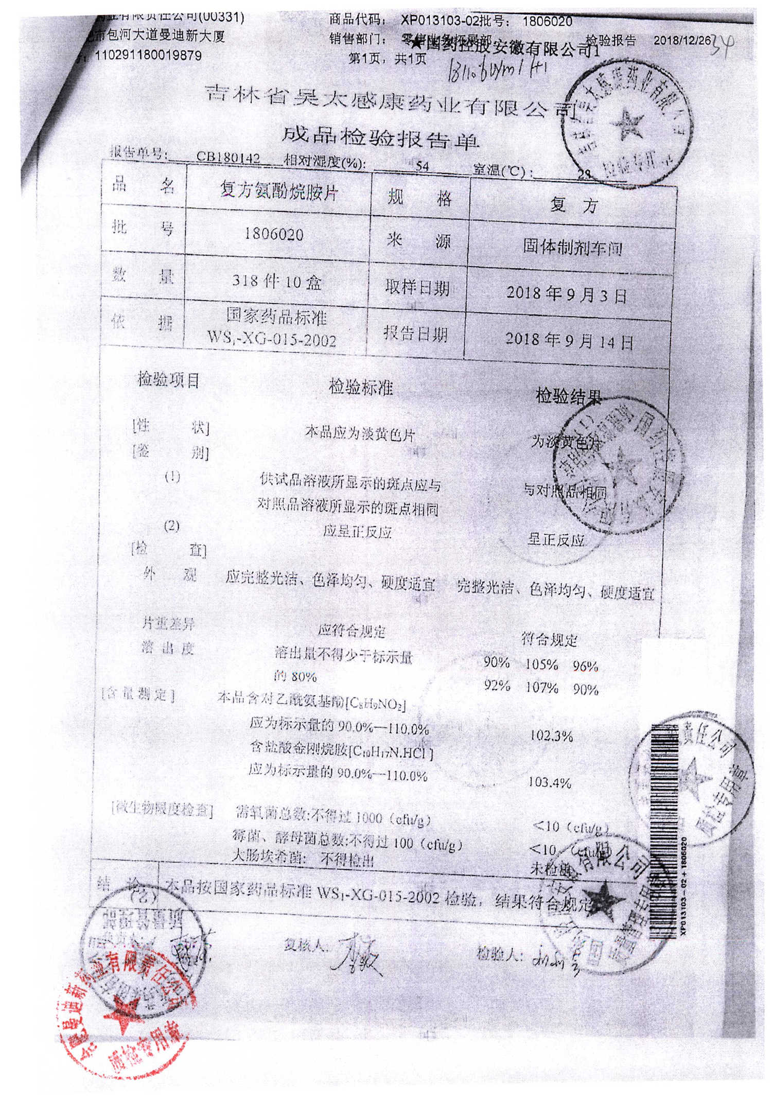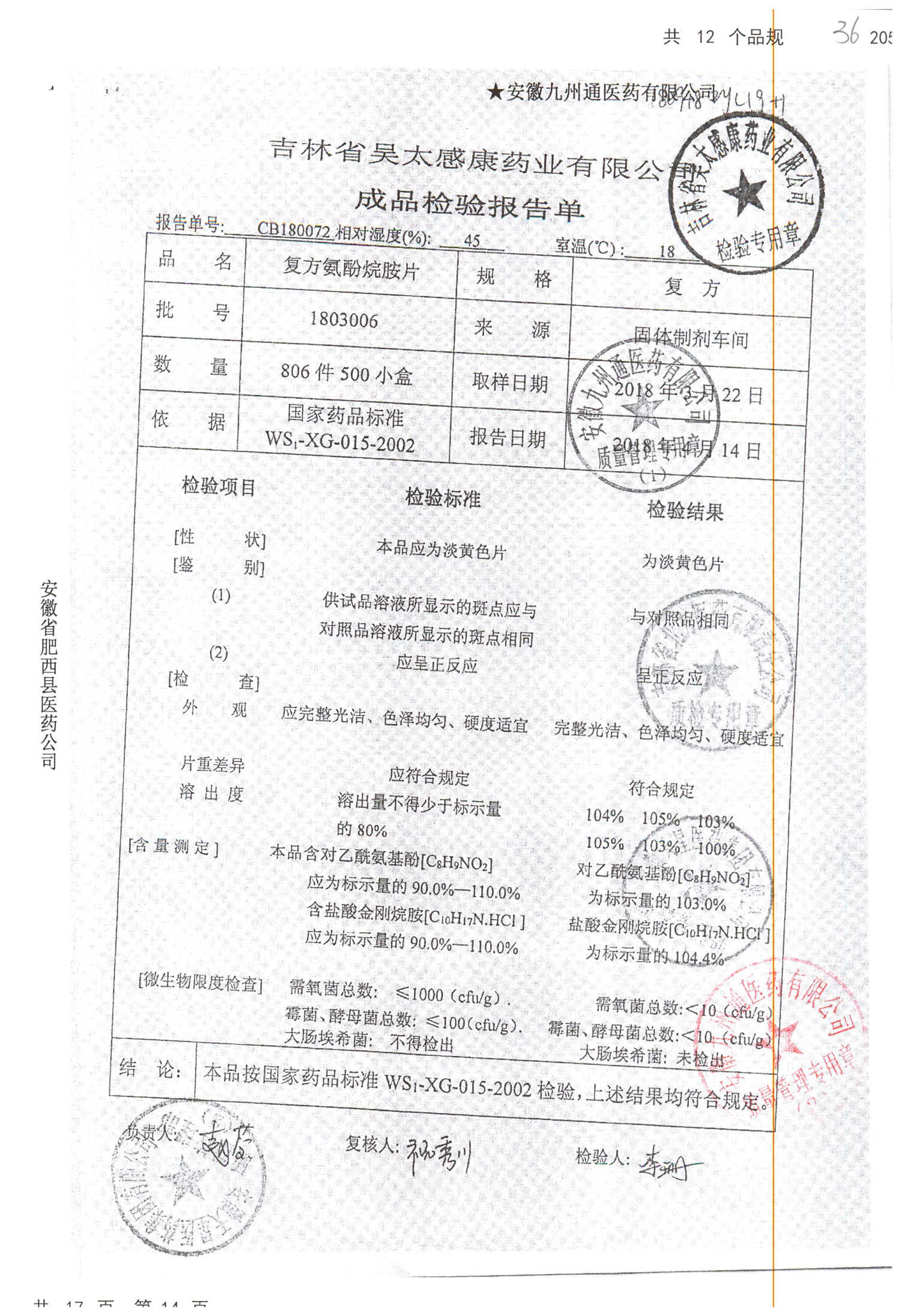 復(fù)方氨酚烷胺片 | 復(fù)方 | 1808001 | 查看詳情 |