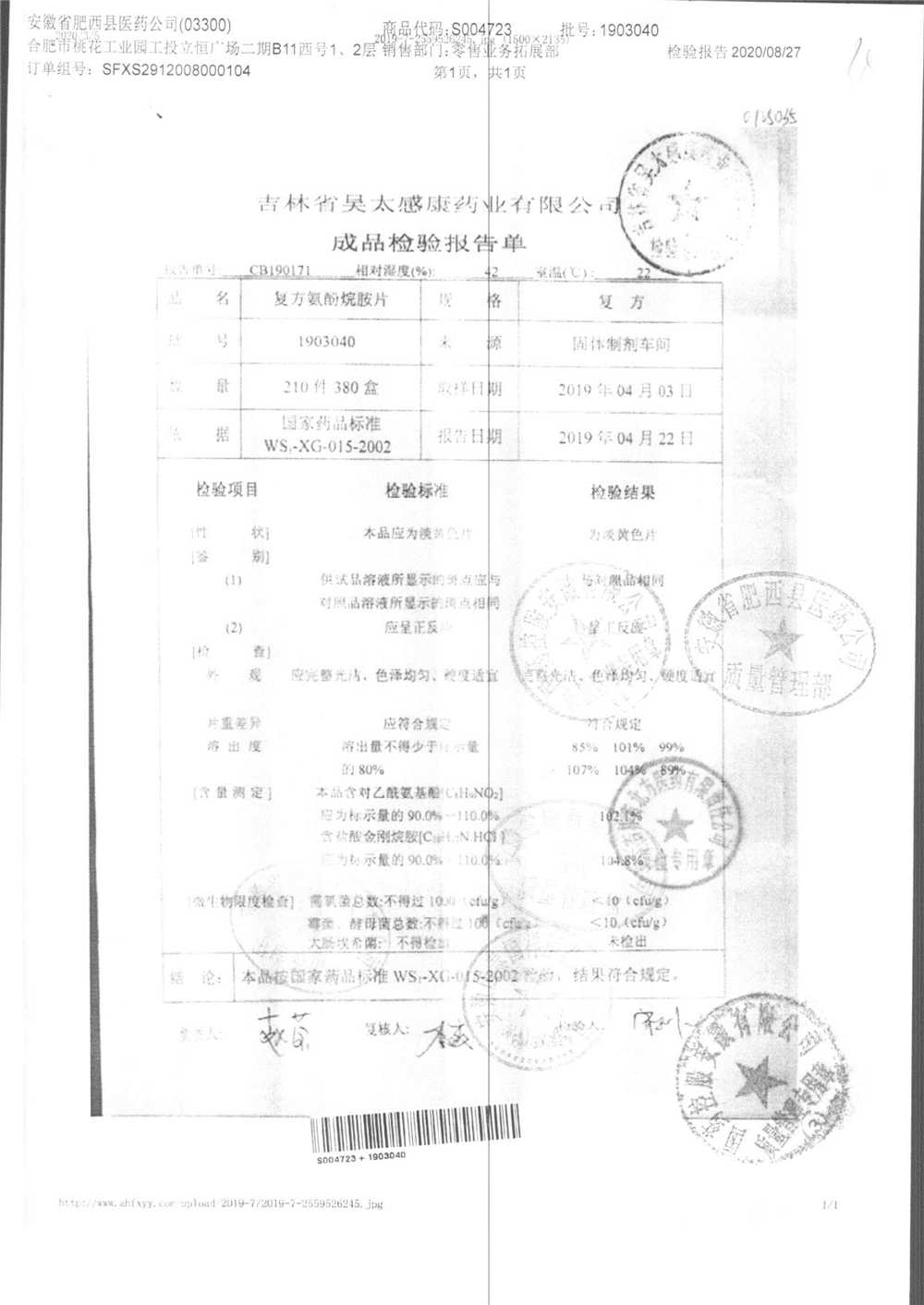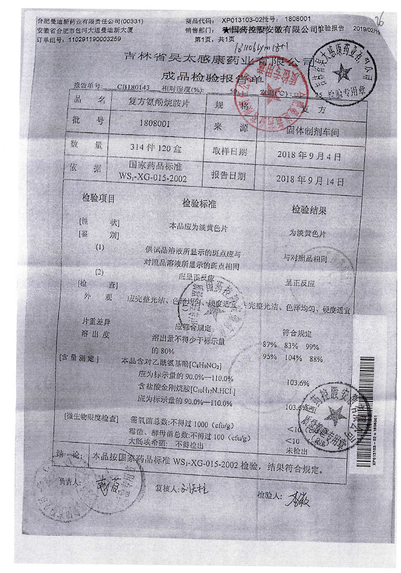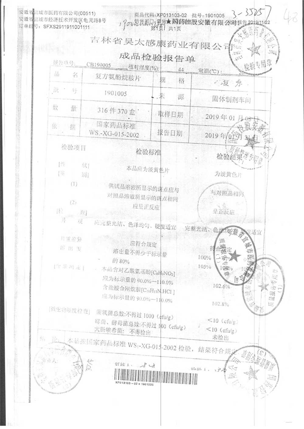 復(fù)方氨酚烷胺片 | 復(fù)方 | 1903040 | 查看詳情 |