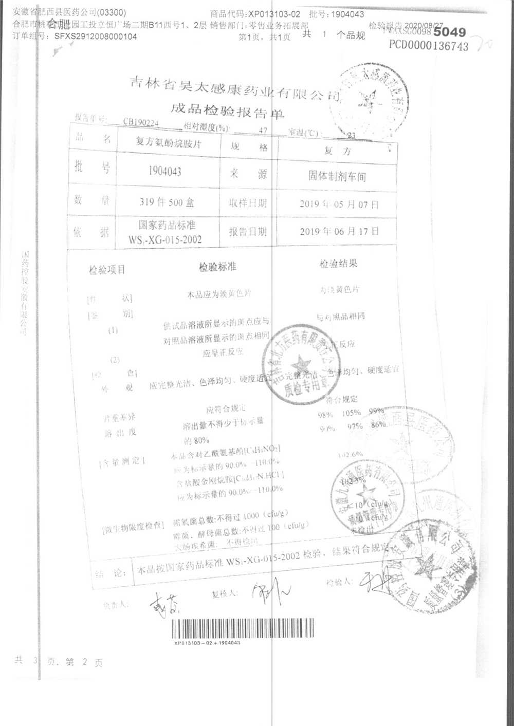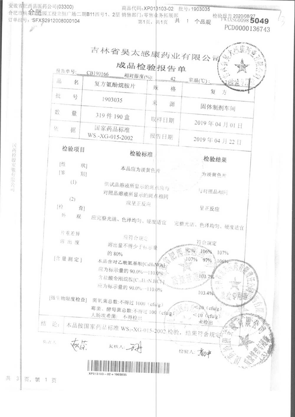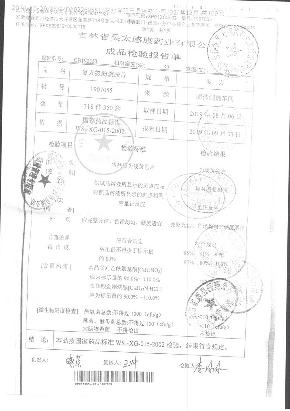 復(fù)方氨酚烷胺片 | 復(fù)方 | 1903040 | 查看詳情 |