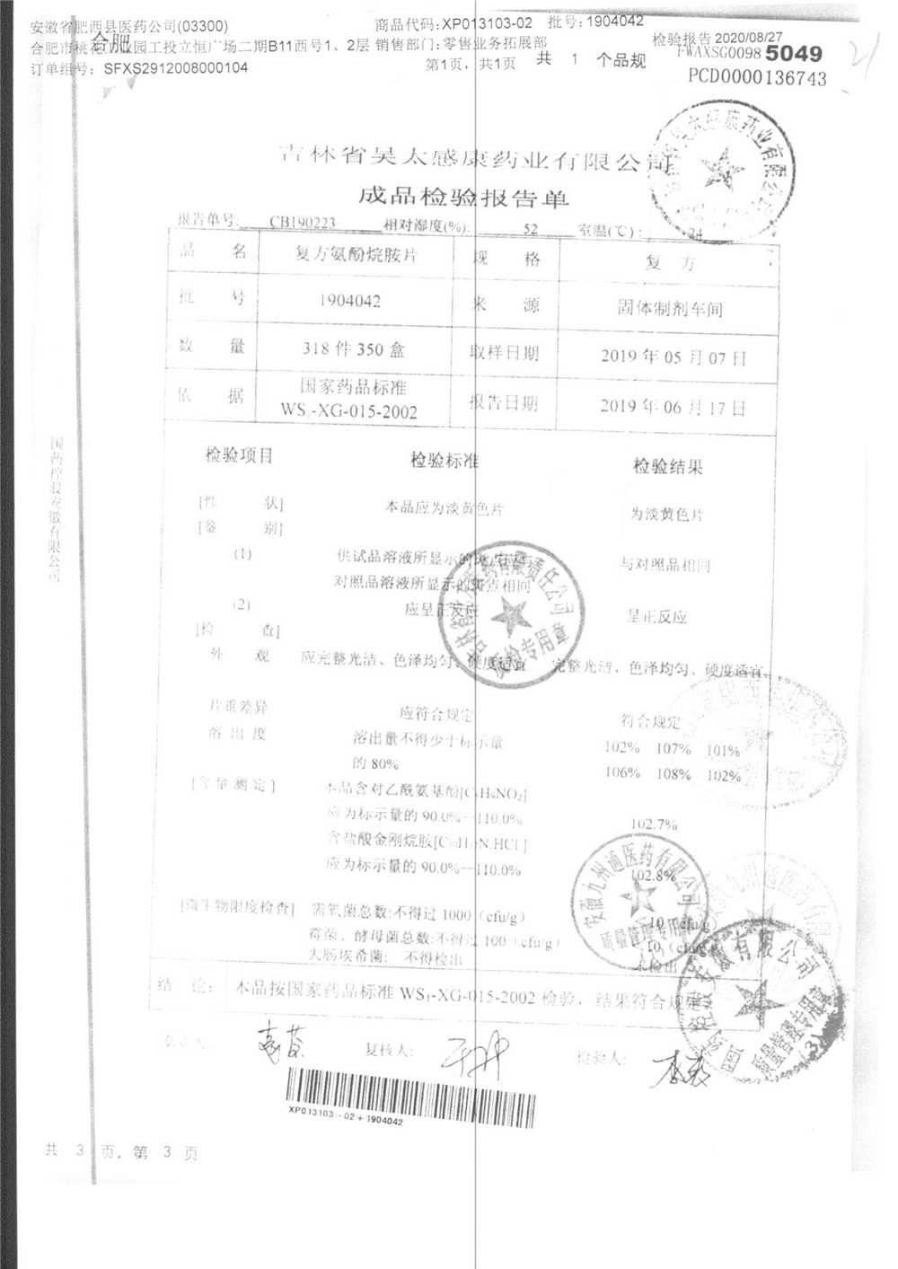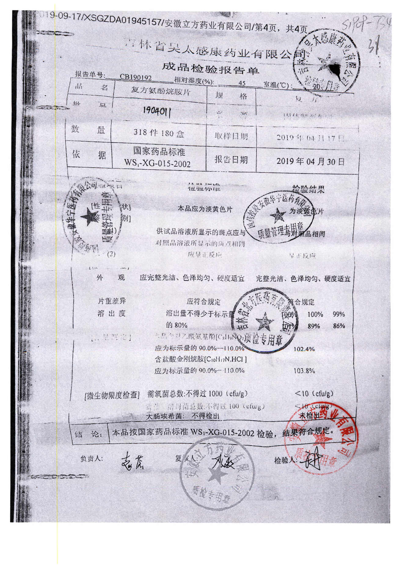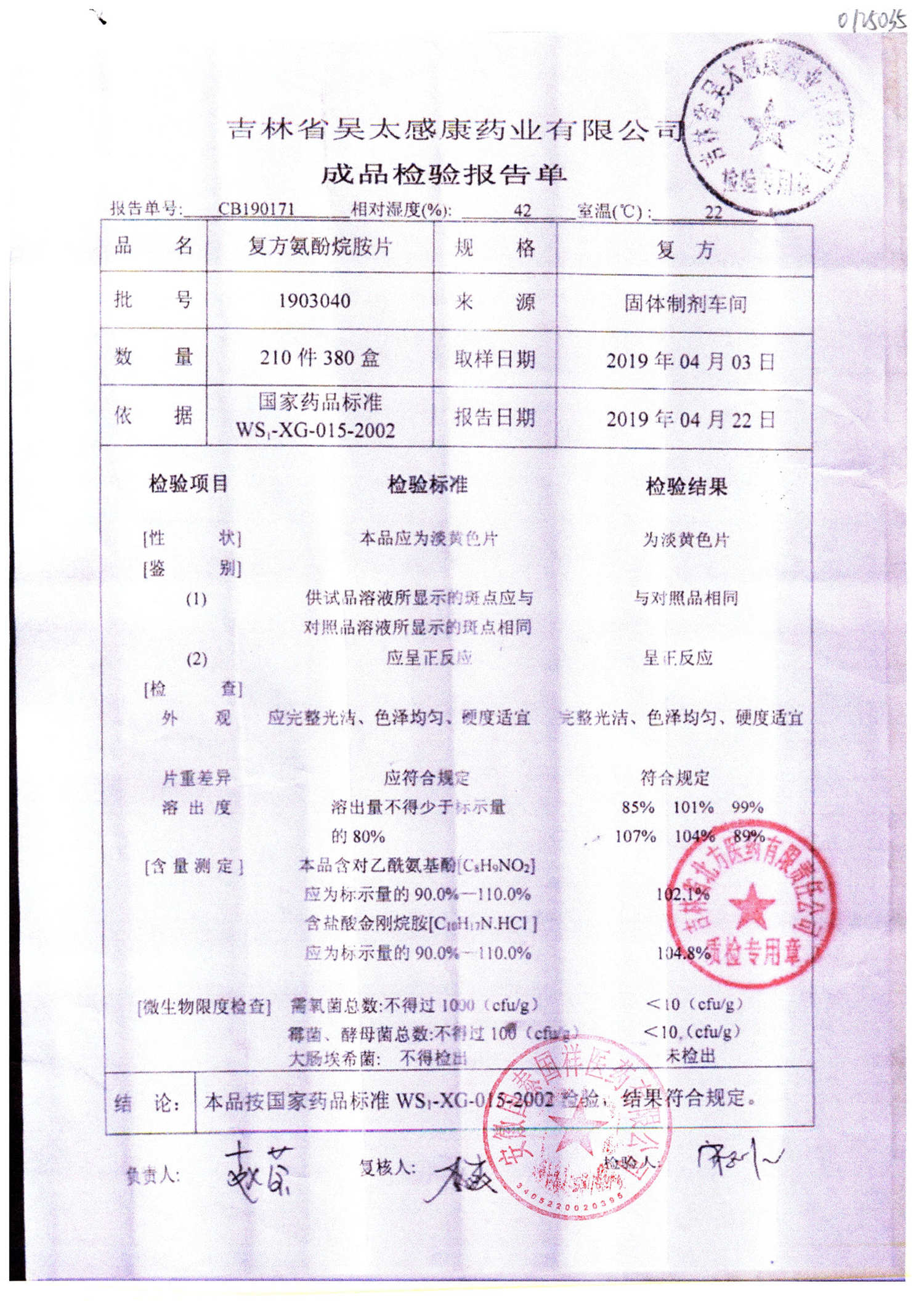 復(fù)方氨酚烷胺片 | 復(fù)方 | 1904043 | 查看詳情 |