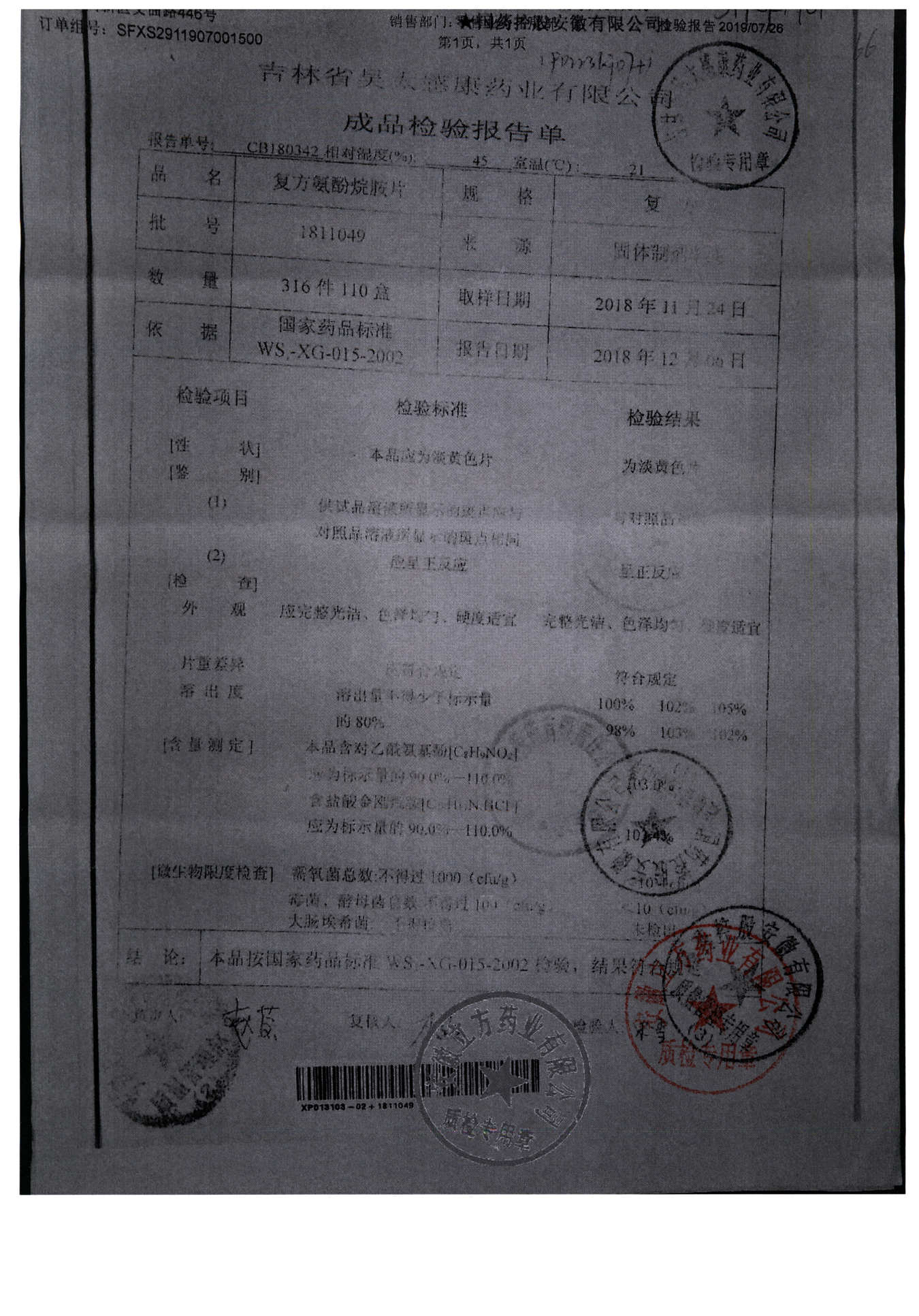 復(fù)方氨酚烷胺片 | 復(fù)方 | 1811049 | 查看詳情 |