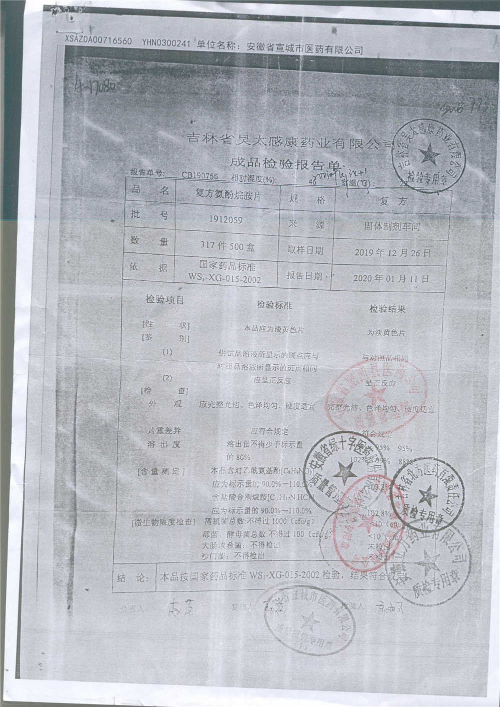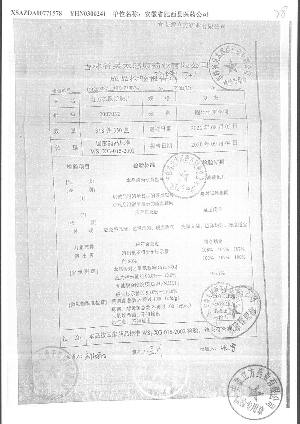 復(fù)方氨酚烷胺片 | 復(fù)方 | 2007033 | 查看詳情 |