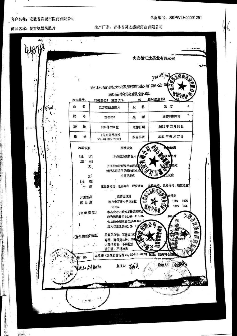 復(fù)方氨酚烷胺片 | 復(fù)方 | 2101037 | 查看詳情 |