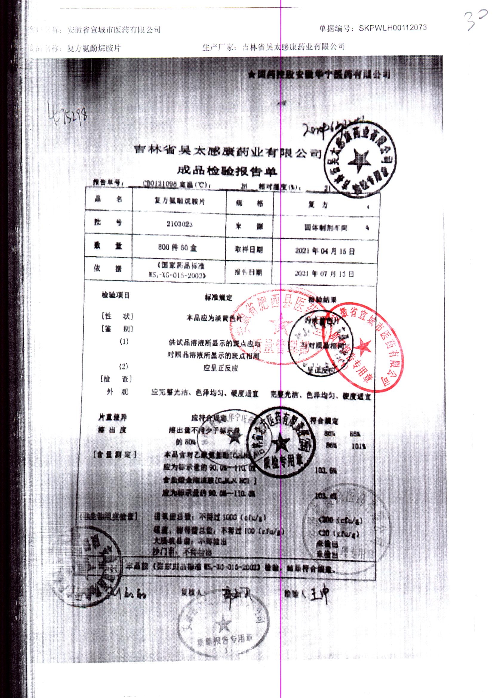 復(fù)方氨酚烷胺片 | 復(fù)方 | 2111030 | 查看詳情 |