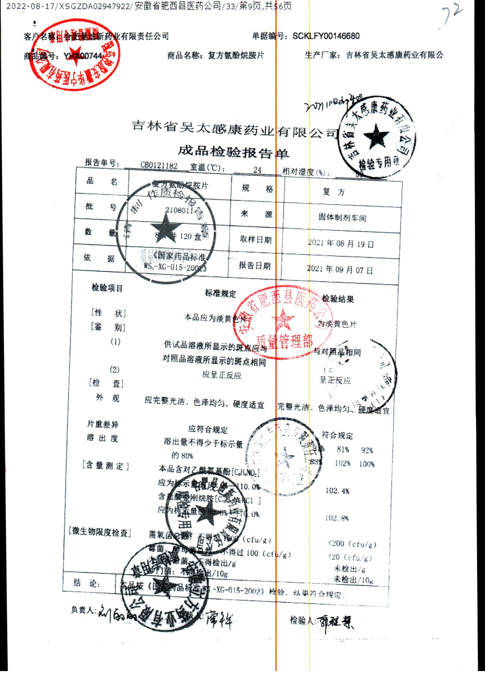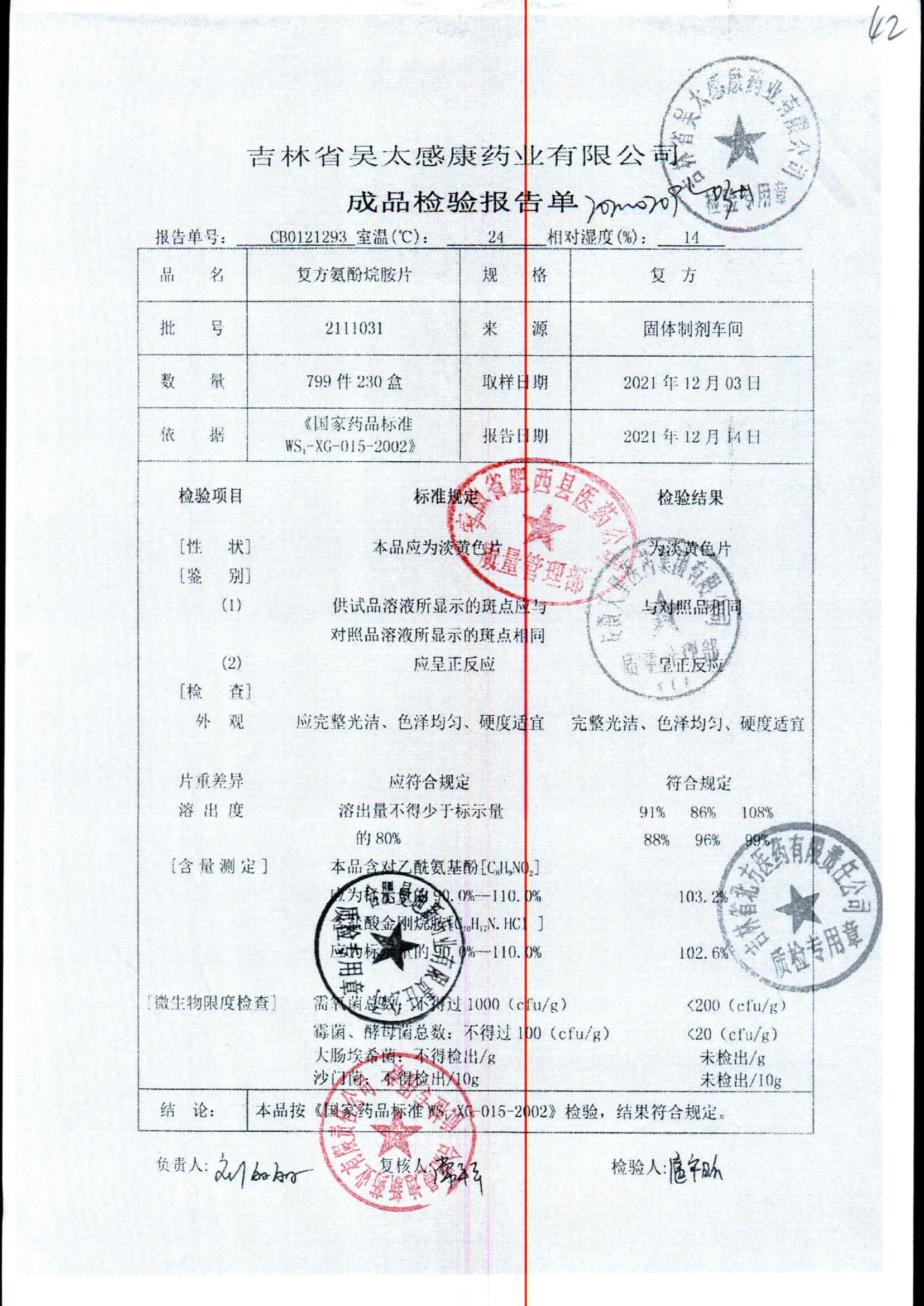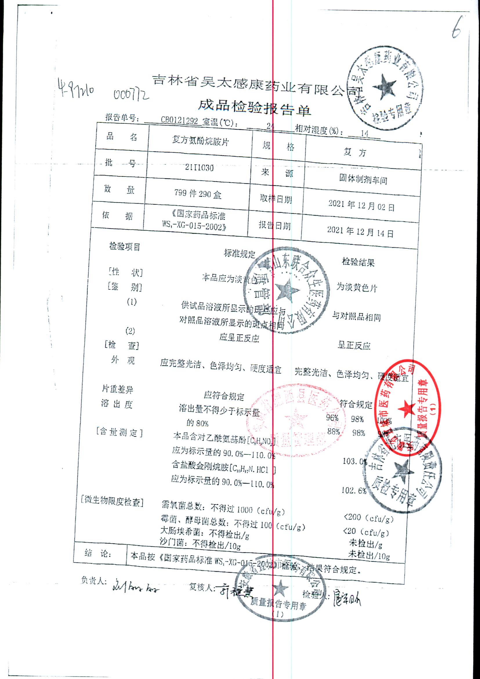 復(fù)方氨酚烷胺片 | 復(fù)方 | 2108011 | 查看詳情 |