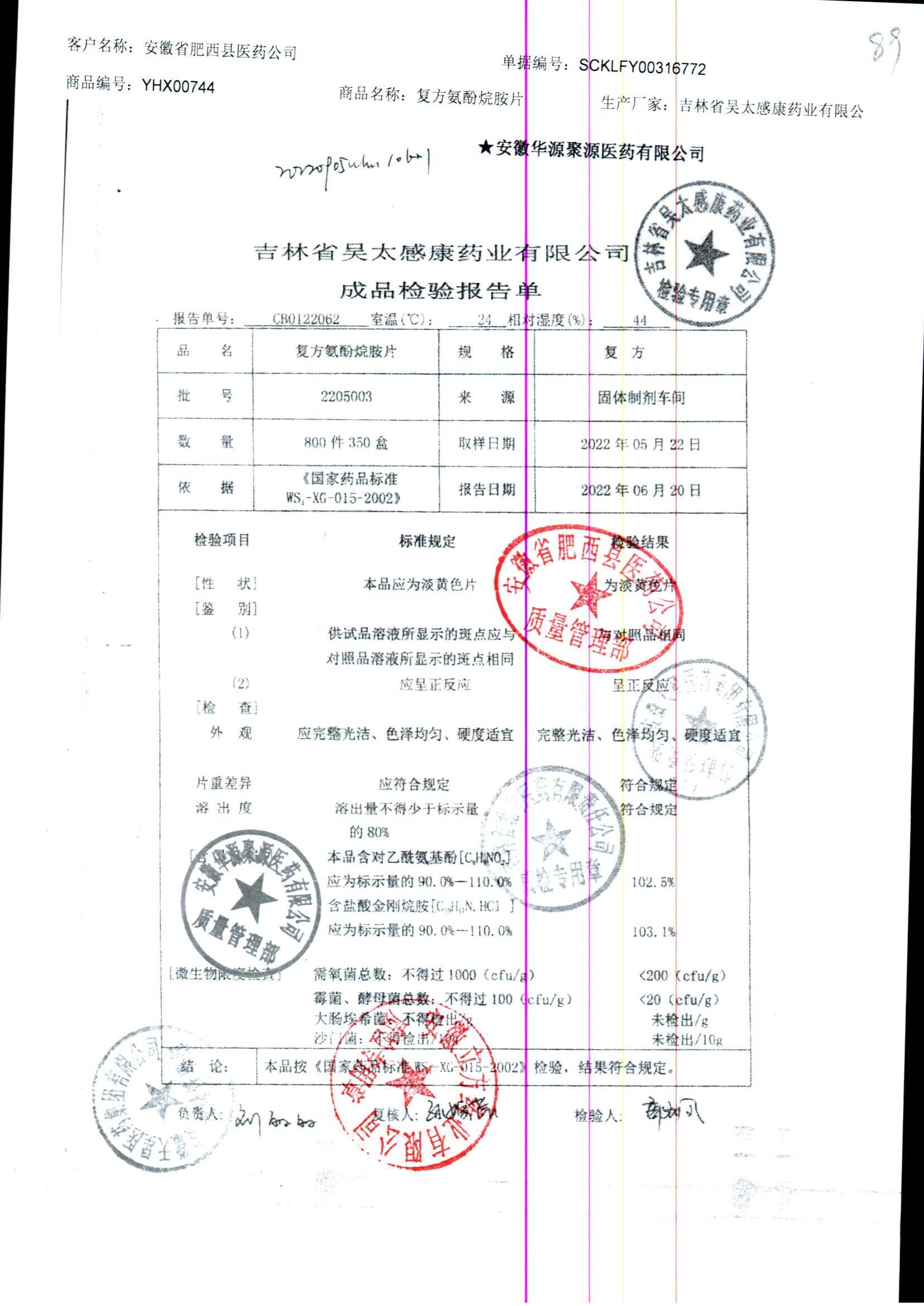 復(fù)方氨酚烷胺片 | 復(fù)方 | 2205003 | 查看詳情 |
