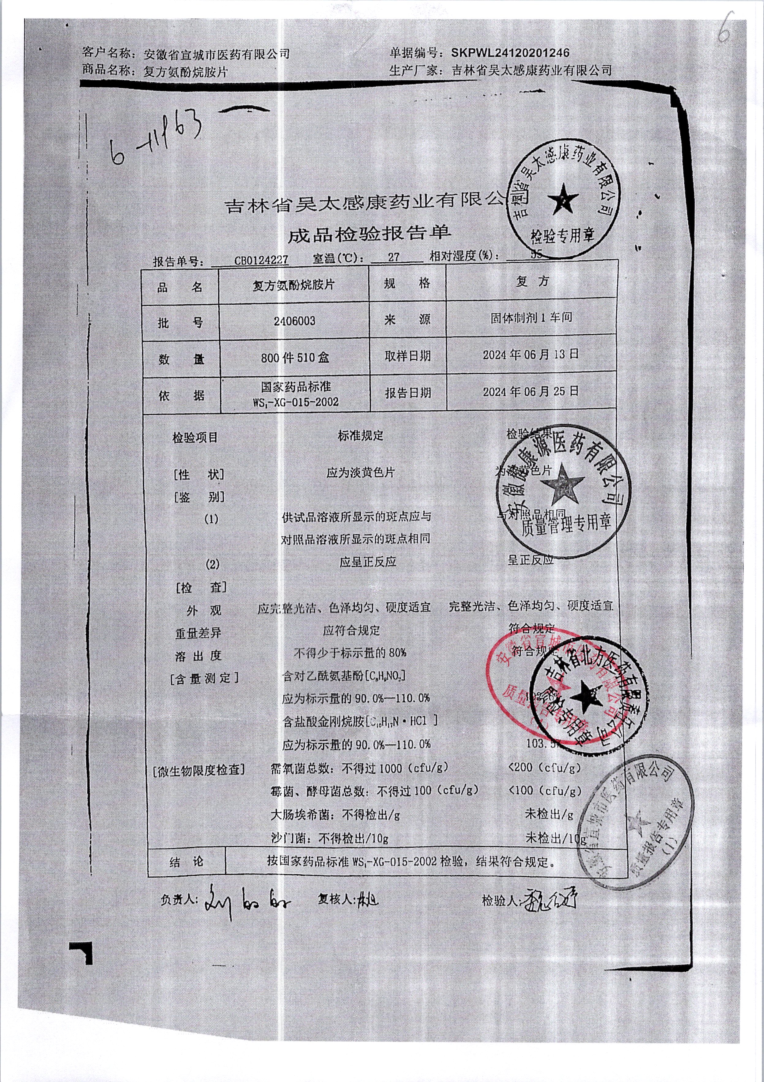 復(fù)方氨酚烷胺片 | 復(fù)方 | 2406003 | 查看詳情 |