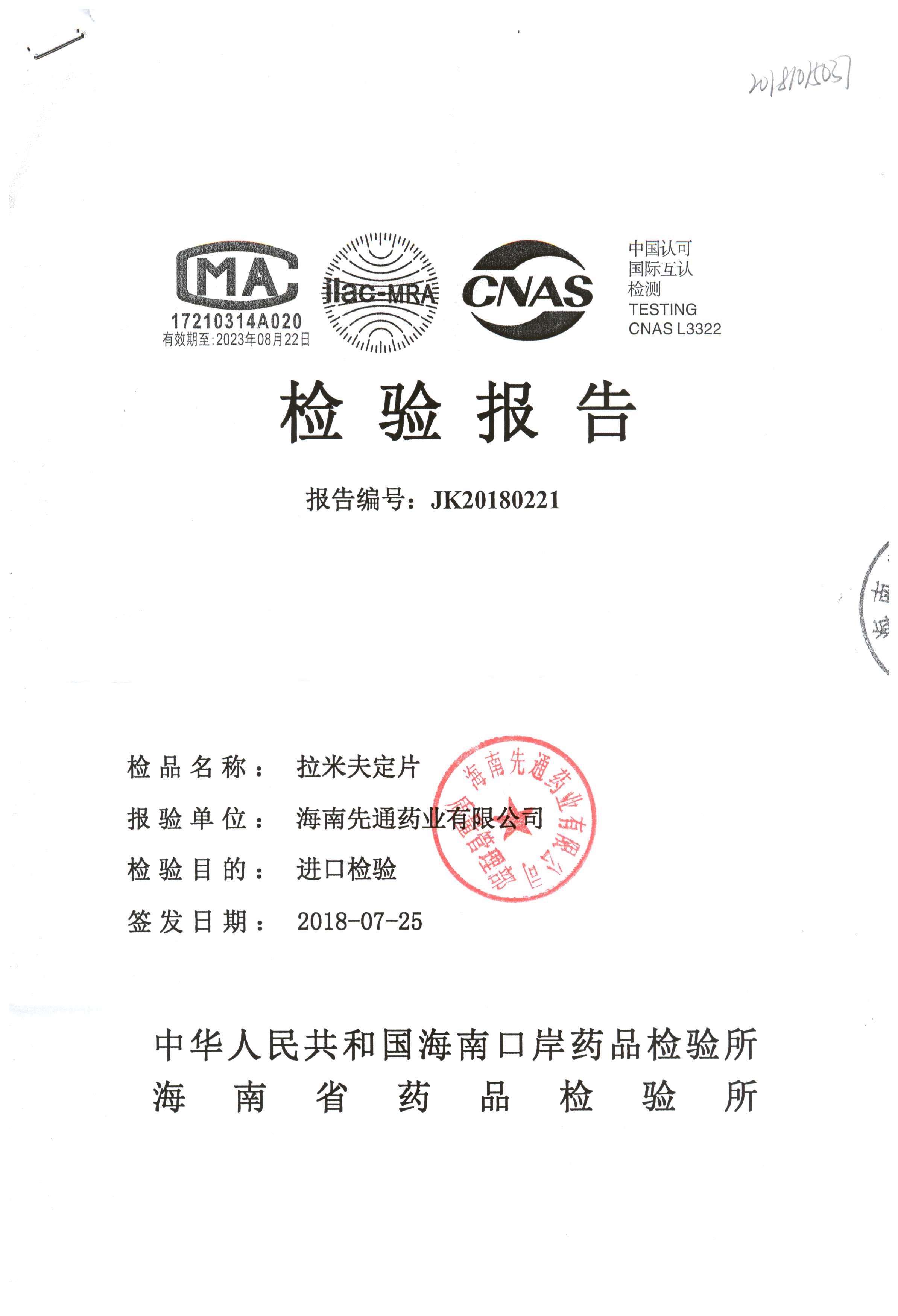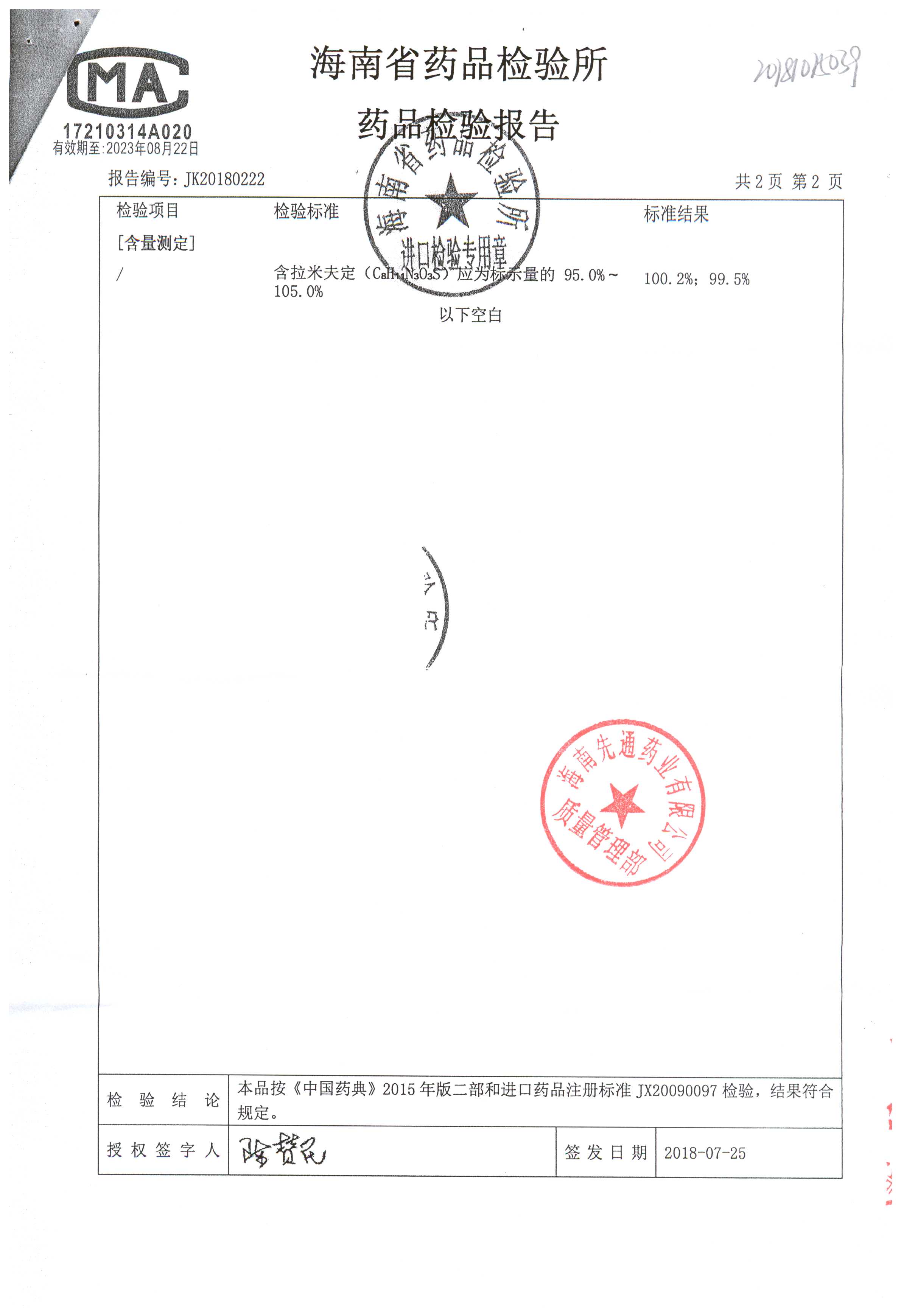 名稱 | 規(guī)格 | 批號 | 藥檢報(bào)告 |