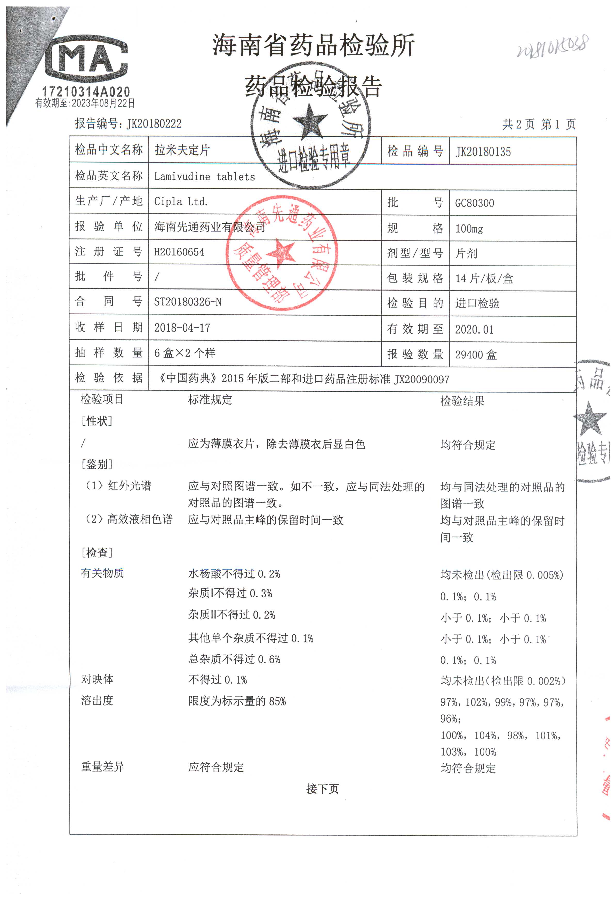 拉米夫定片 | 0.1g*14s | GC80300(1/4) | 查看詳情 |