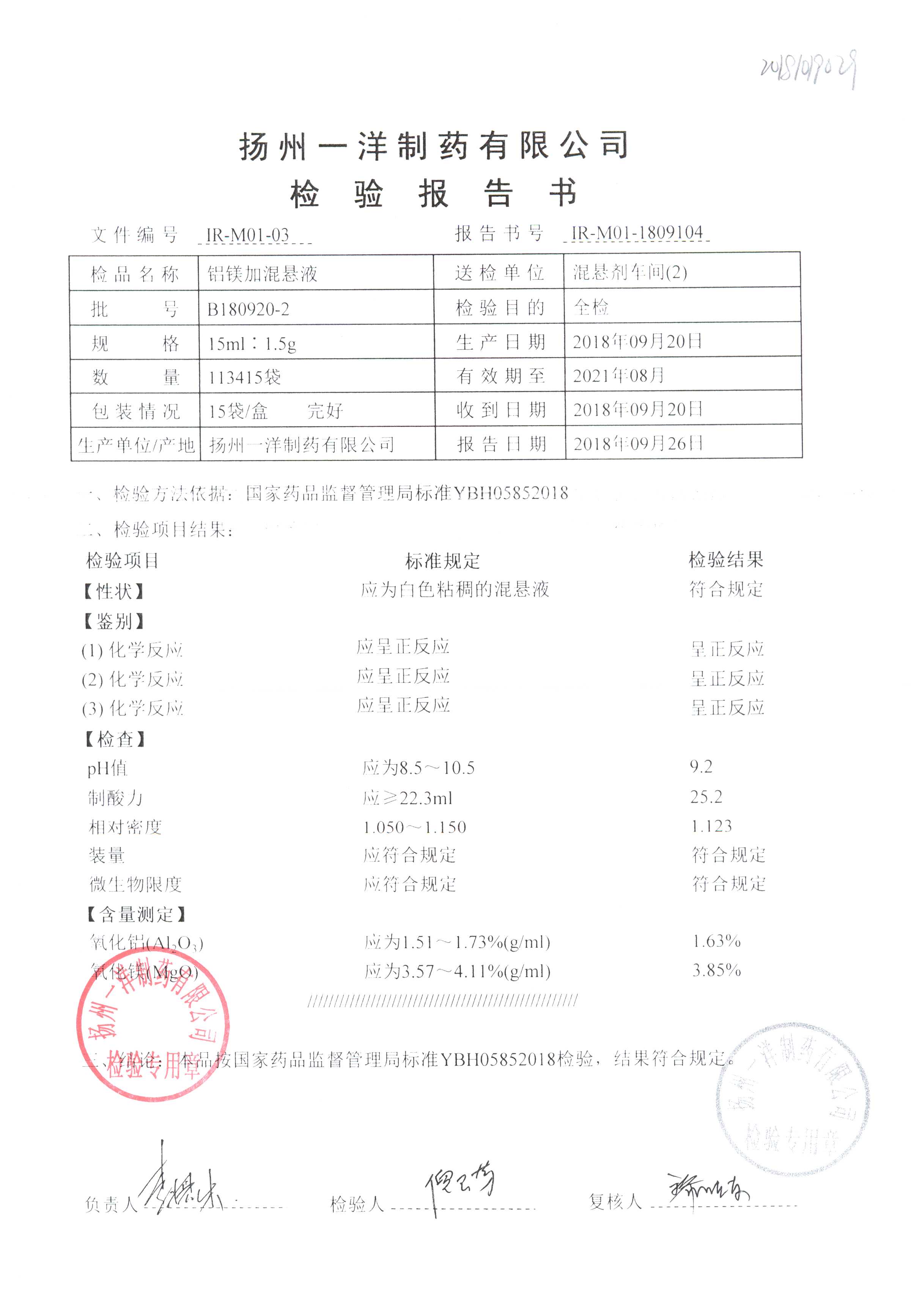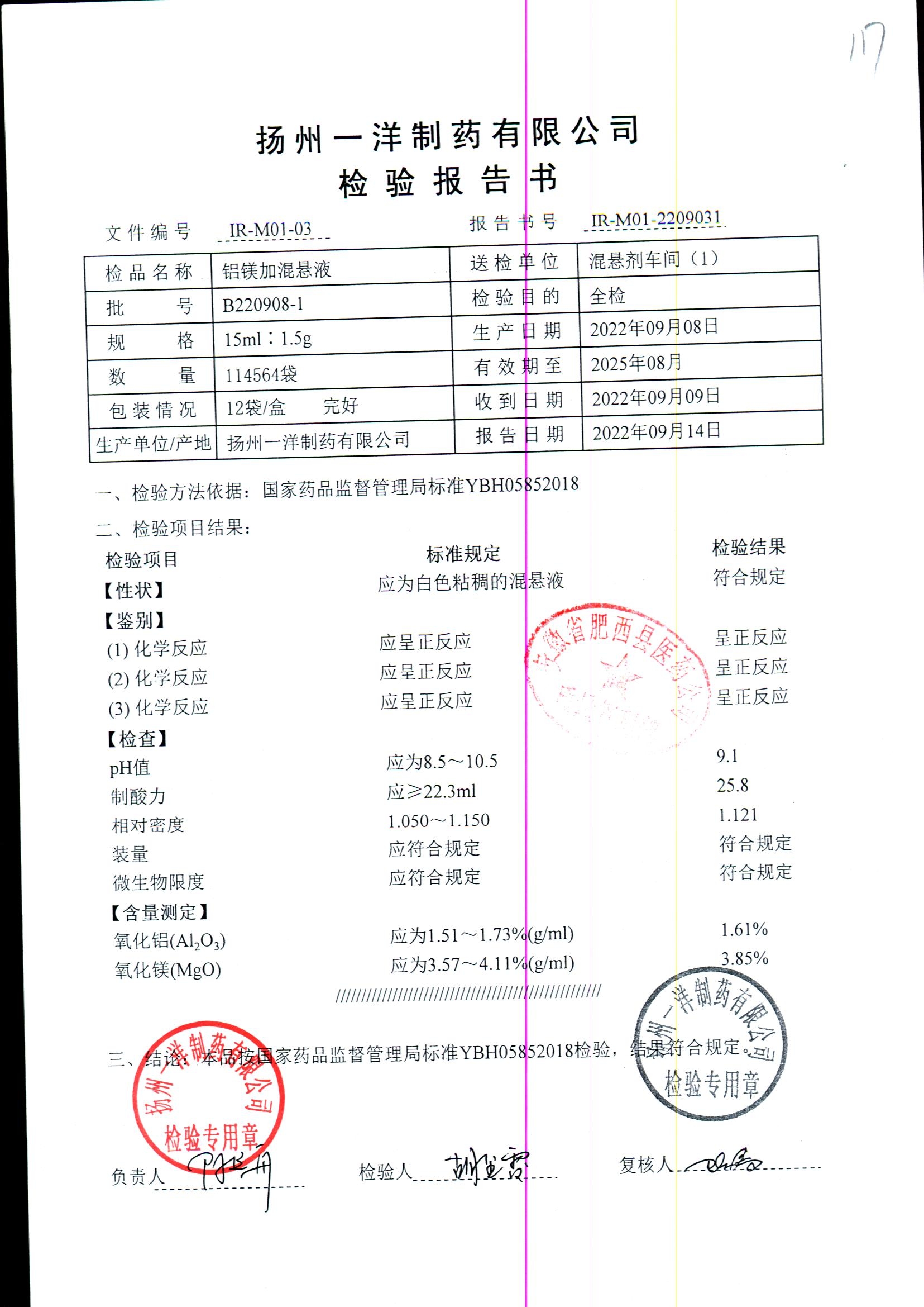 鋁鎂加混懸液 | 15ml:1.5g | B180920-2 | 查看詳情 |