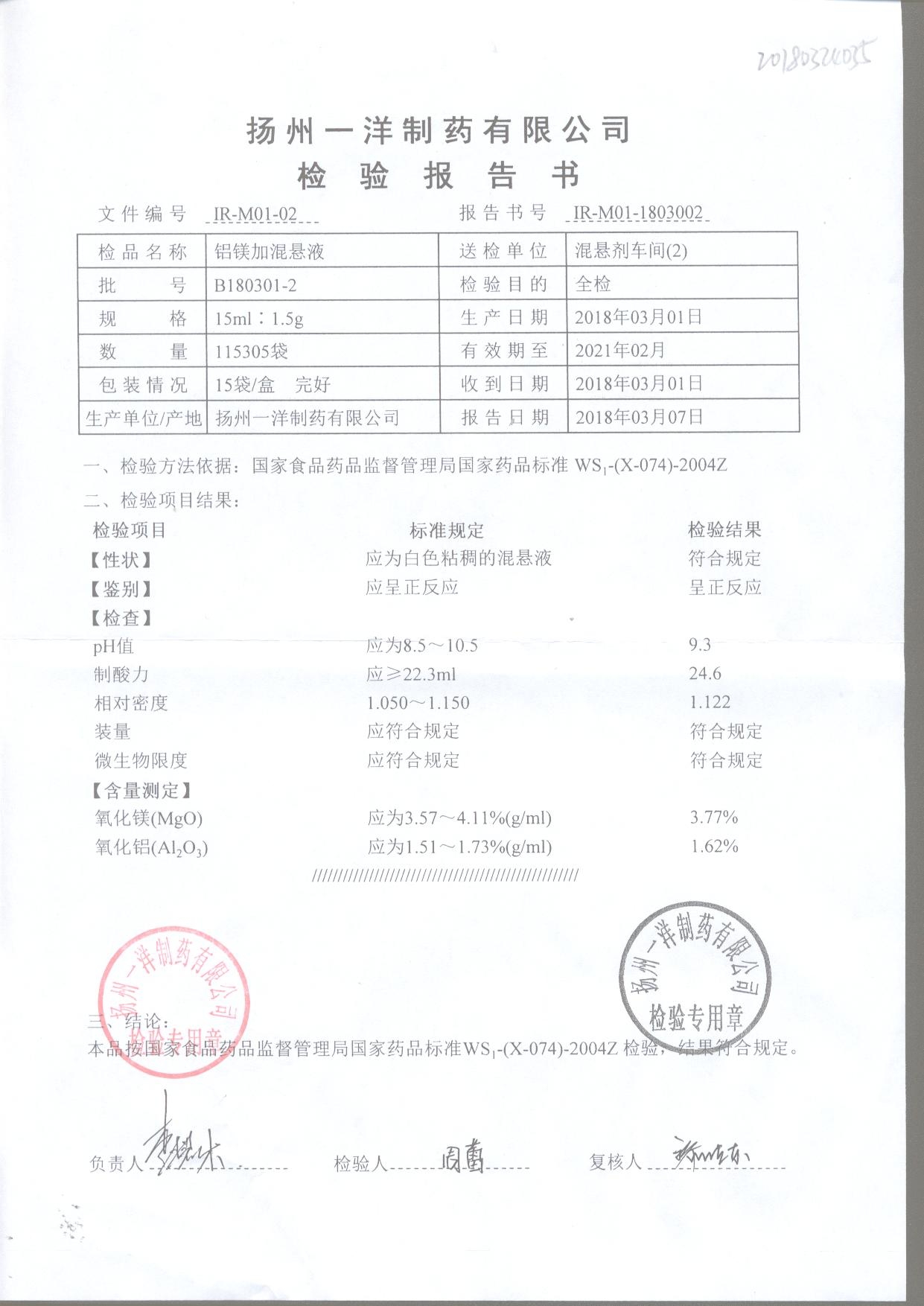鋁鎂加混懸液 | 15ml:1.5g | B180413-2 | 查看詳情 |