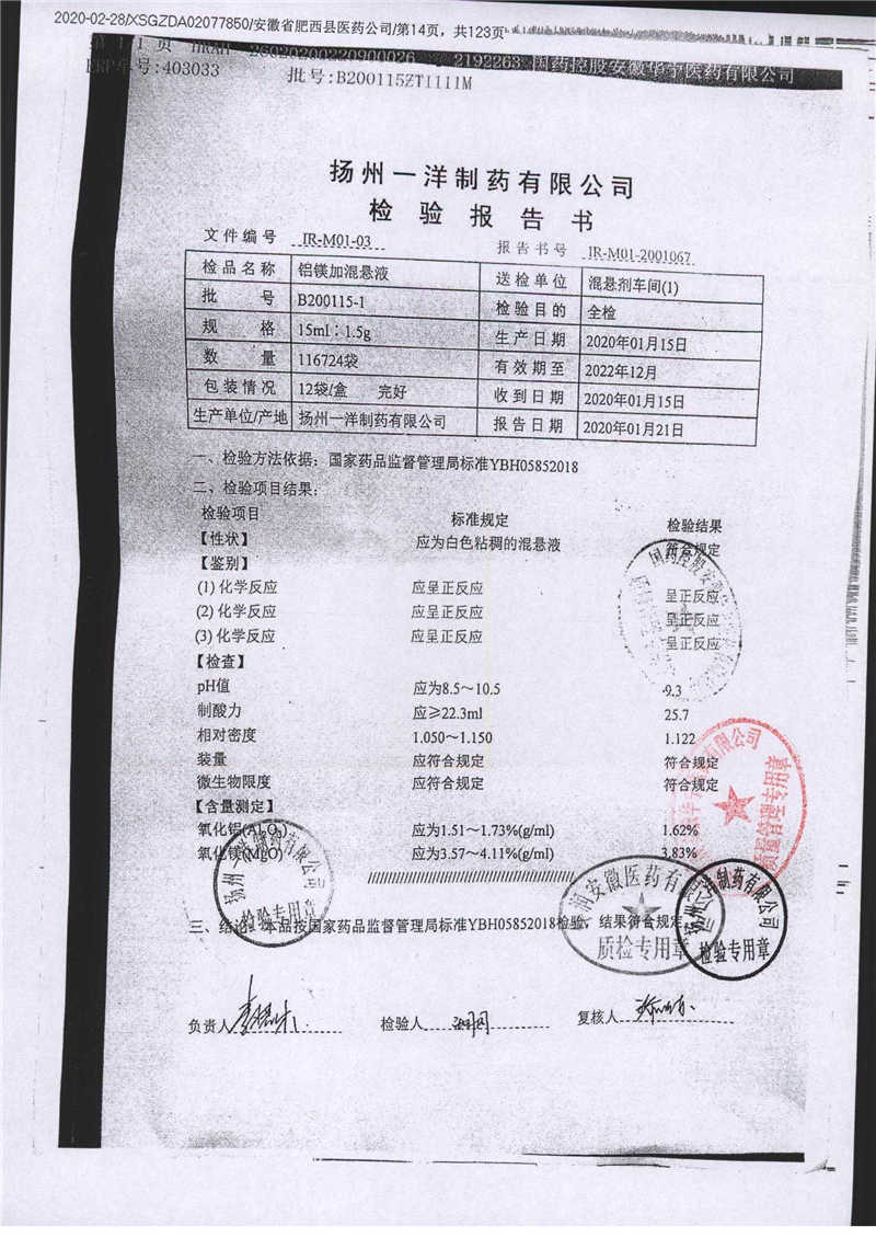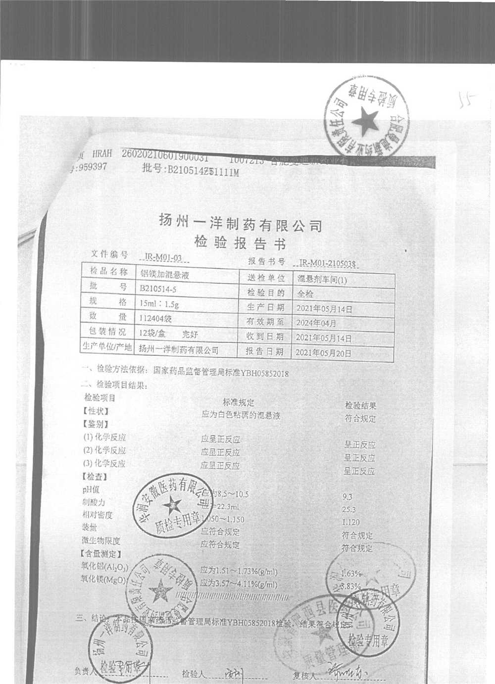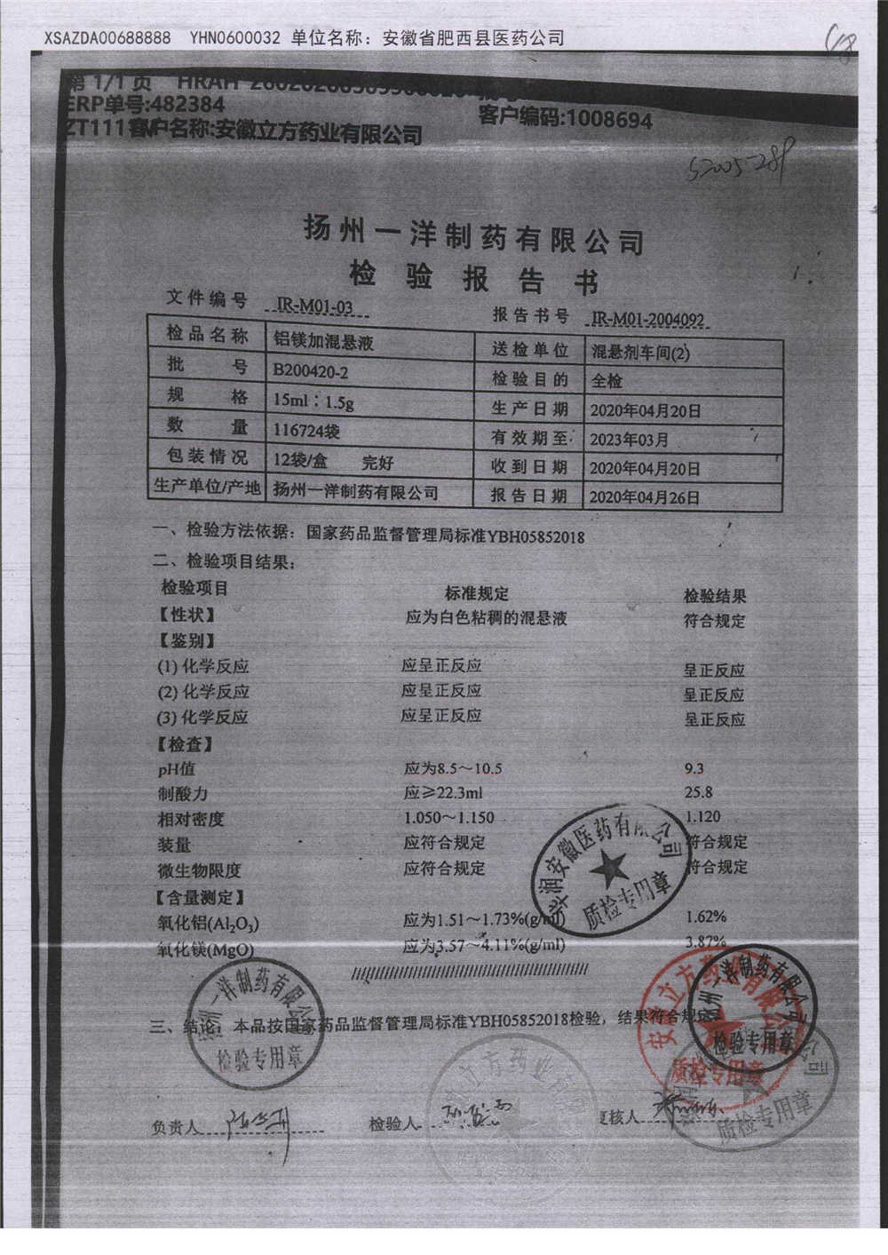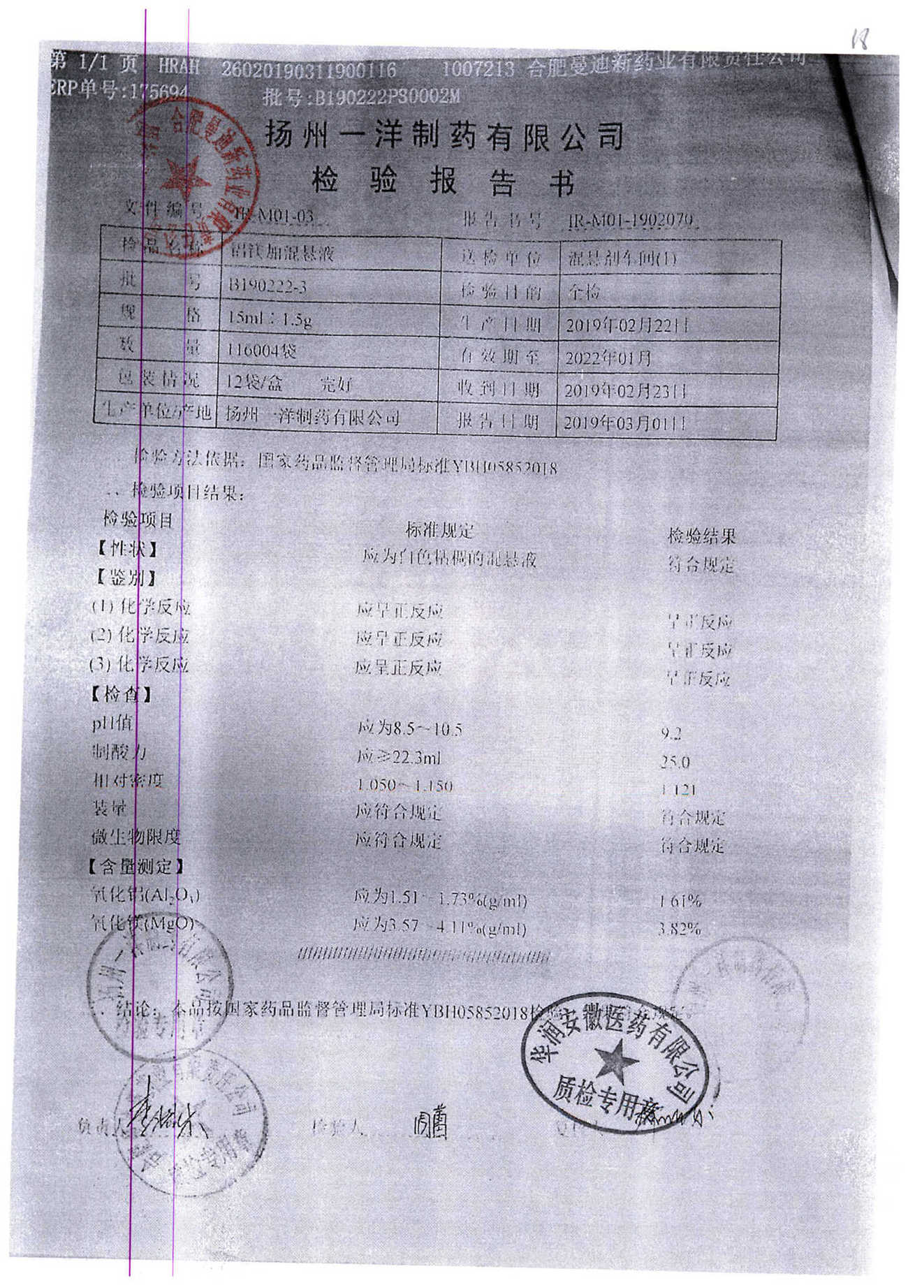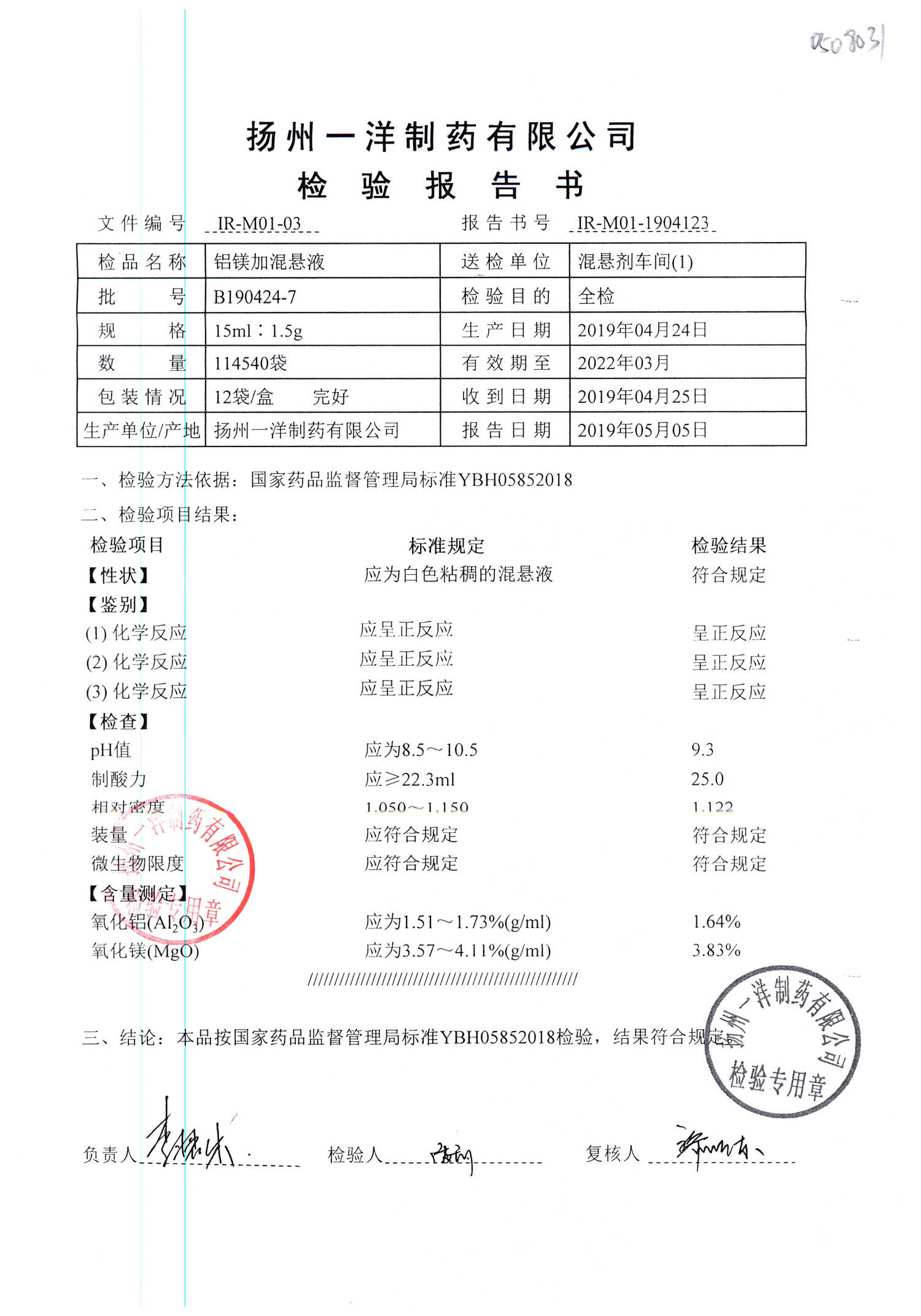 鋁鎂加混懸液 | 15ml:1.5g | B190424-7 | 查看詳情 |
