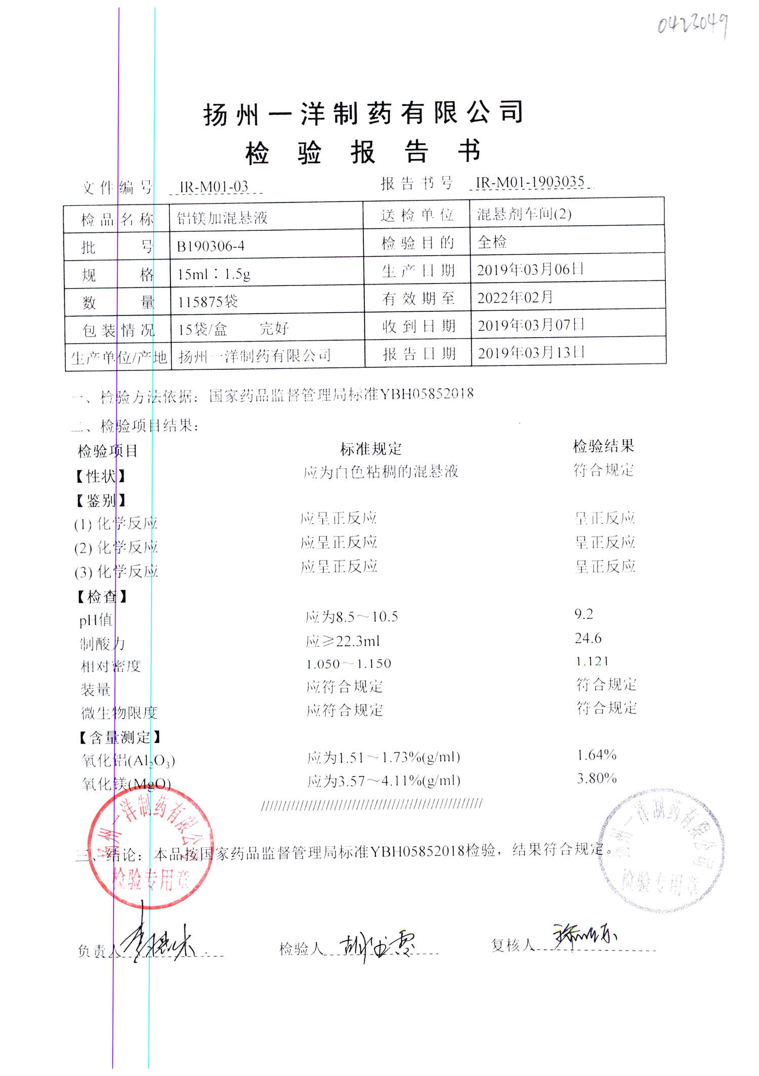 鋁鎂加混懸液 | 15ml:1.5g | B190412-2 | 查看詳情 |
