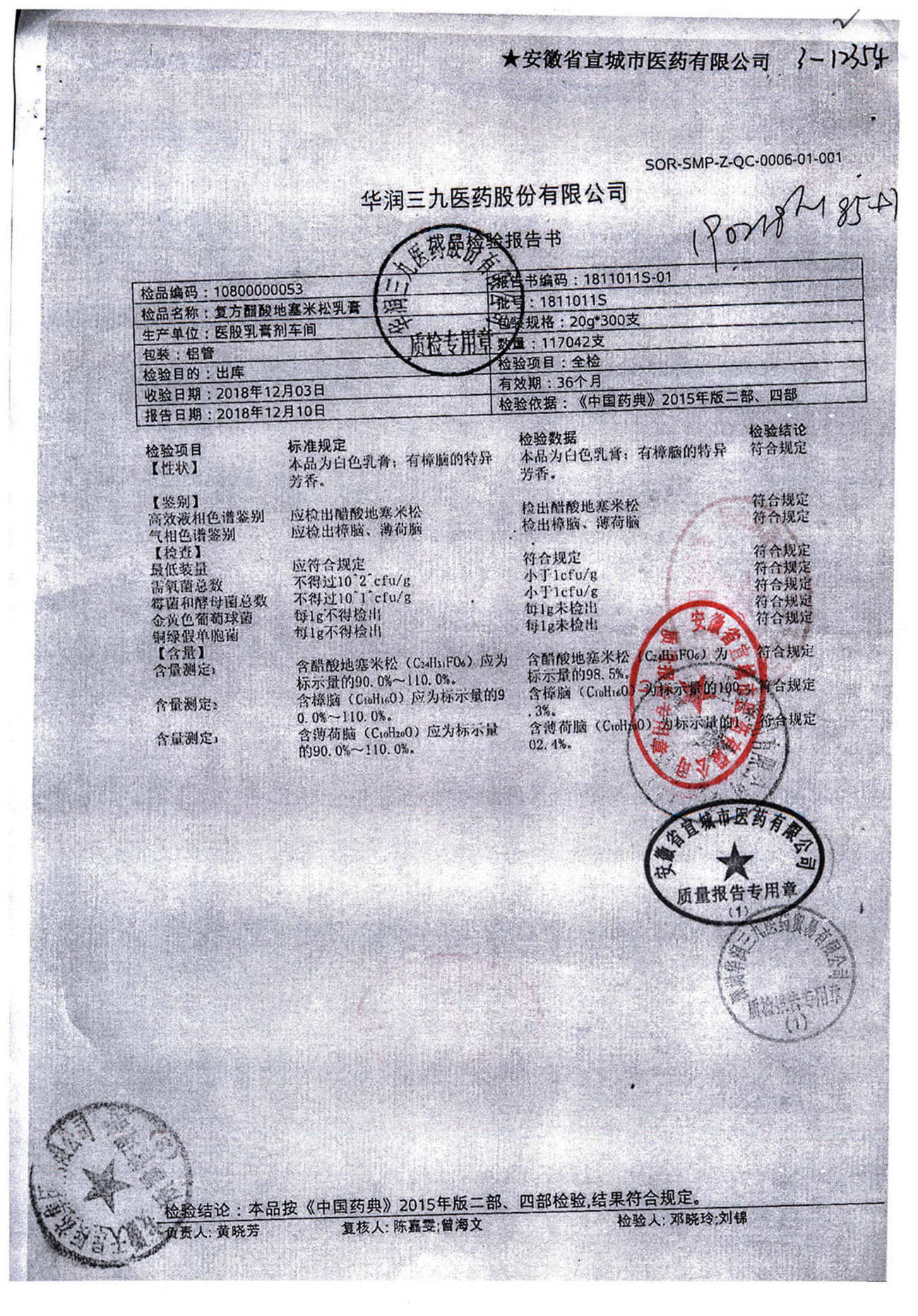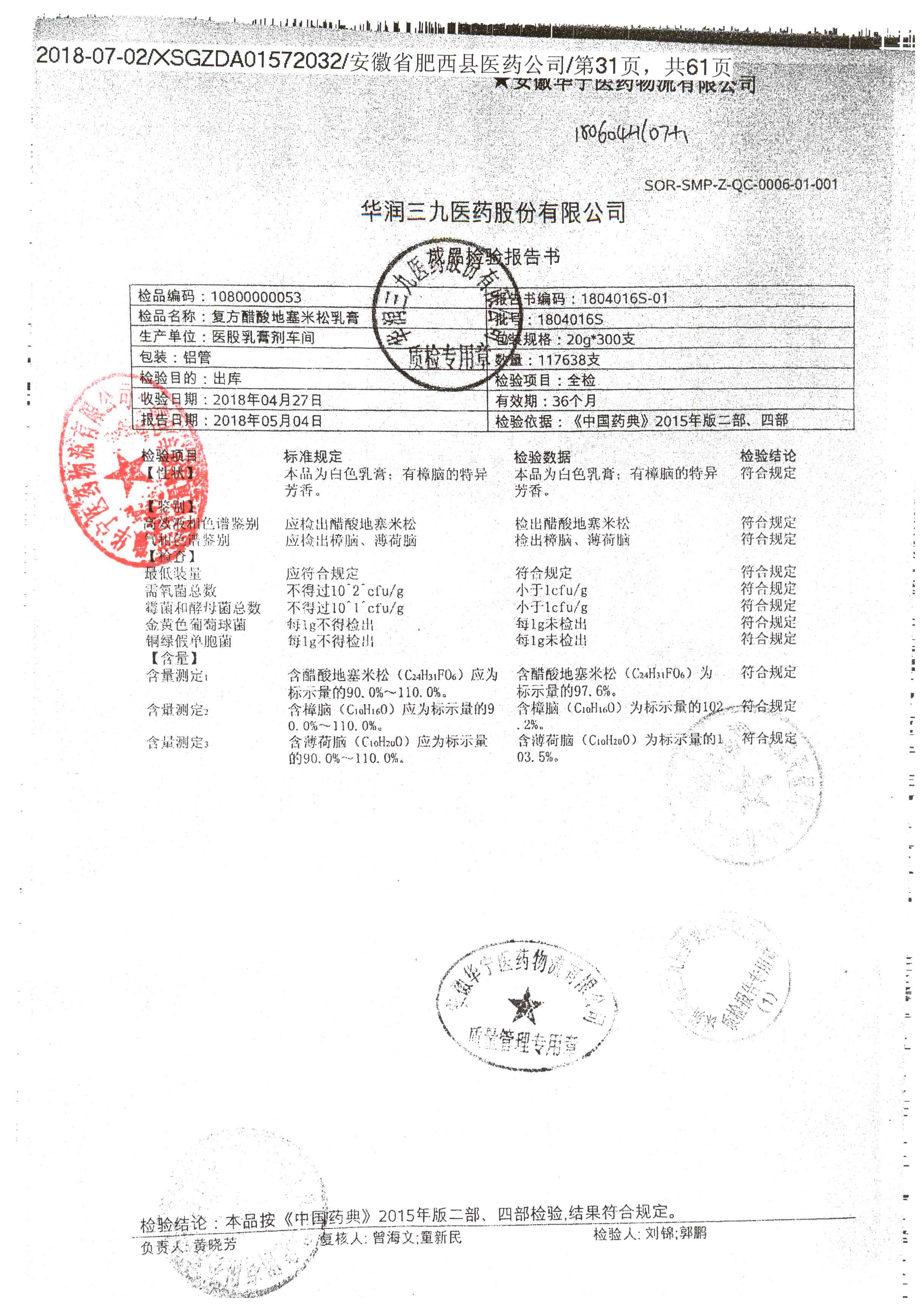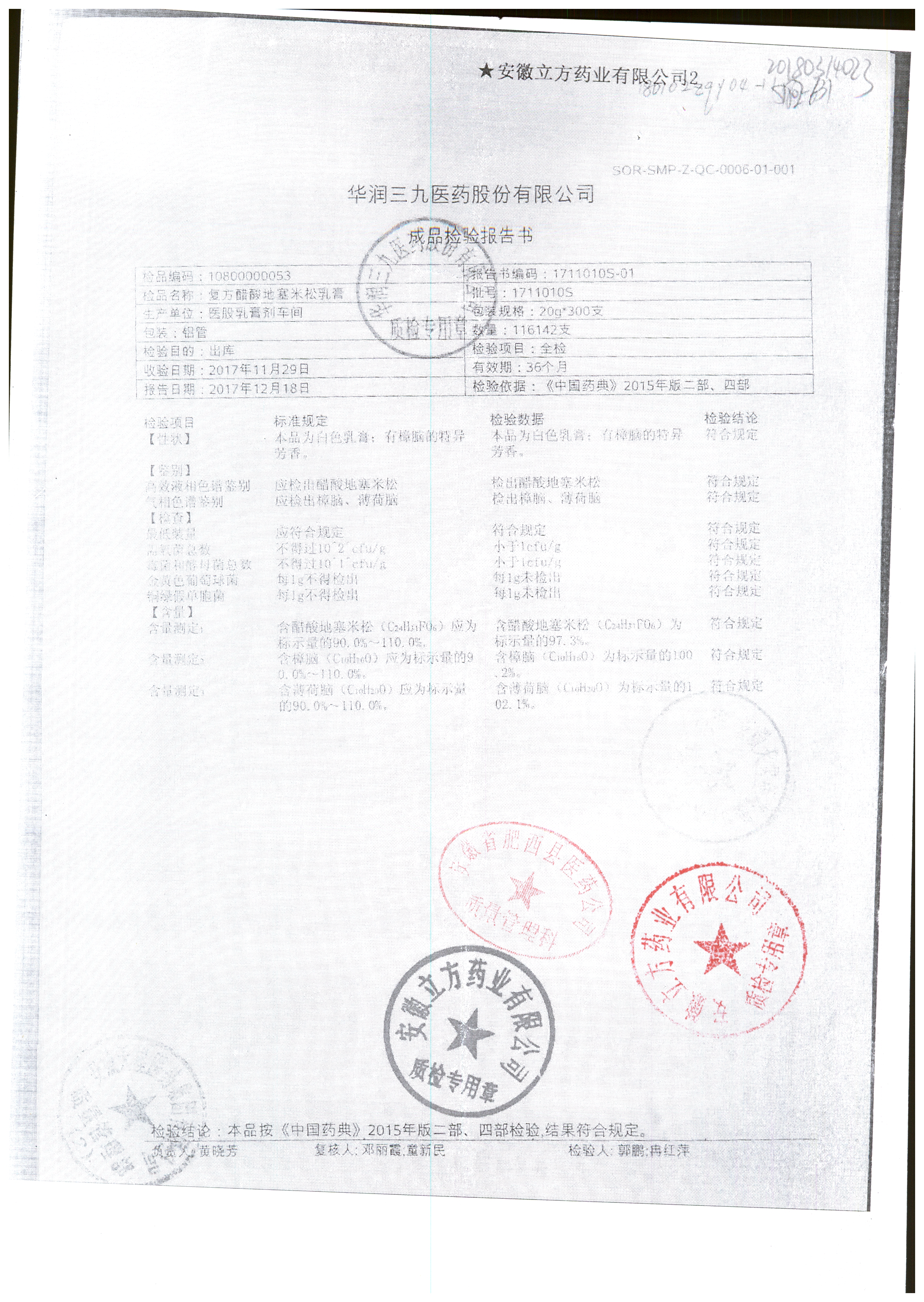 復(fù)方醋酸地塞米松乳膏 | 20g | 1804016S | 查看詳情 |