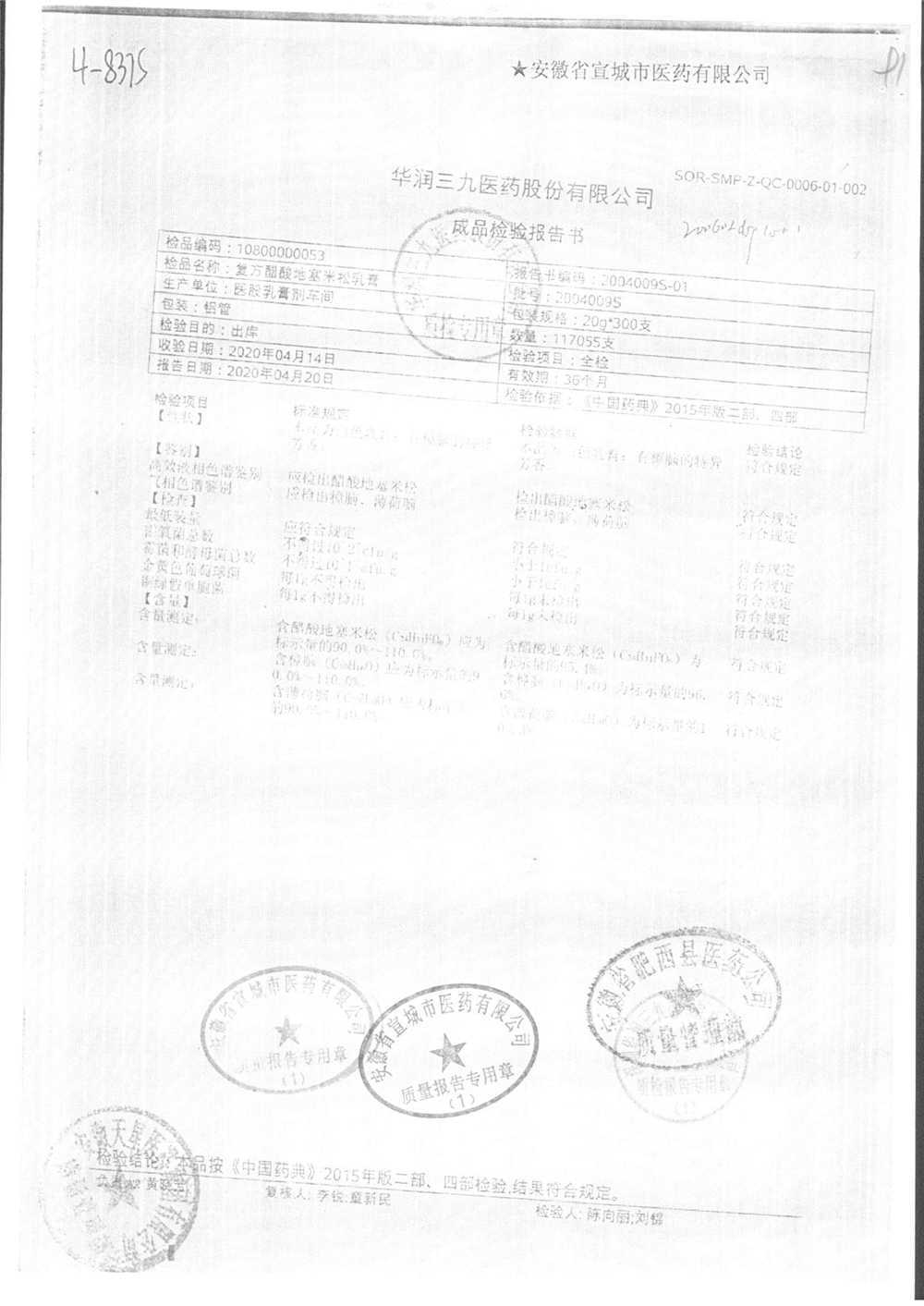 復(fù)方醋酸地塞米松乳膏 | 20g | 2004009S | 查看詳情 |