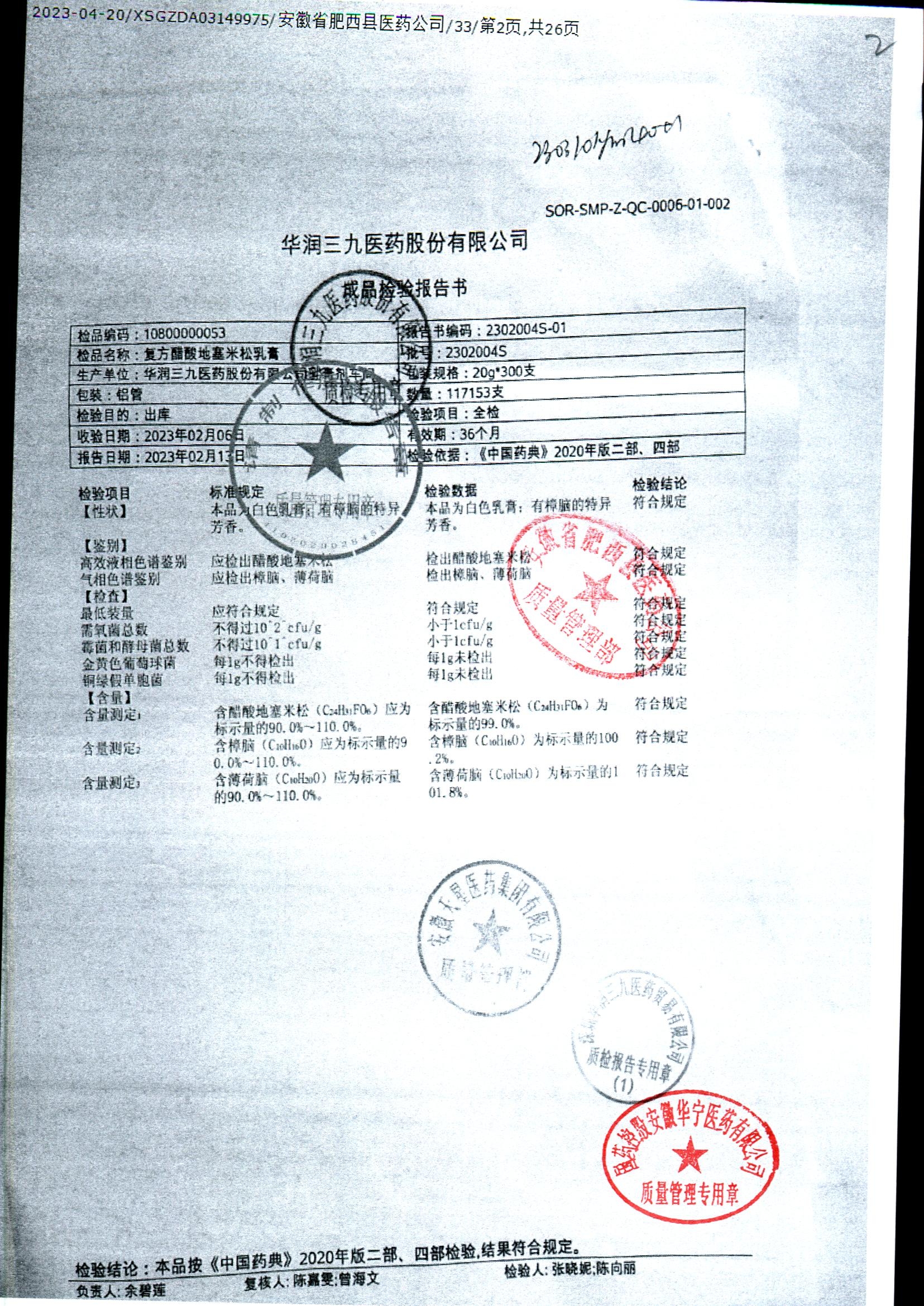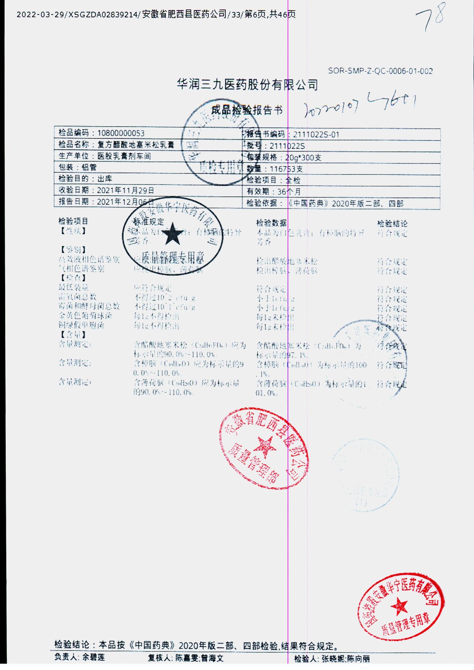 復(fù)方醋酸地塞米松乳膏 | 20g | 21110225-01 | 查看詳情 |