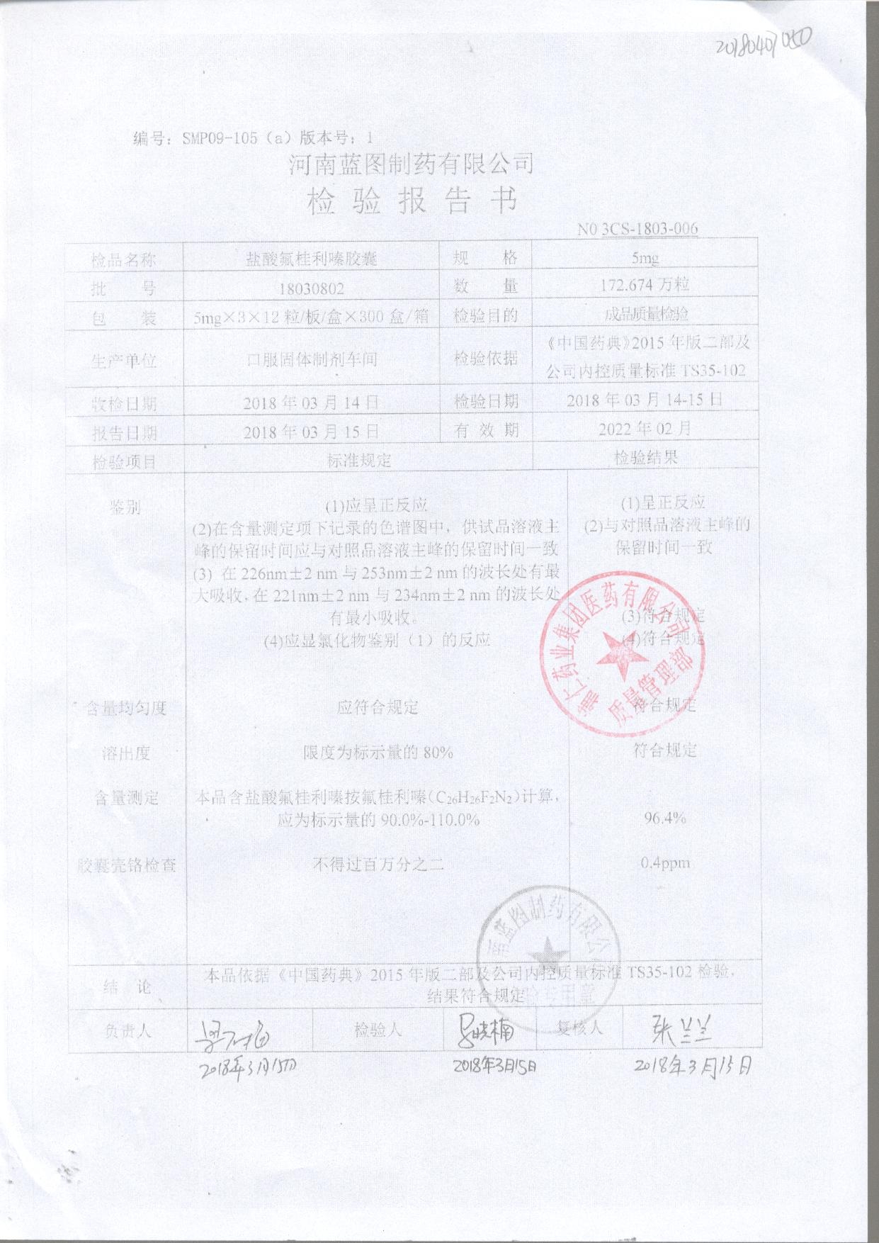 鹽酸氟桂利嗪膠囊 5mg*36粒 18030802 查看詳情