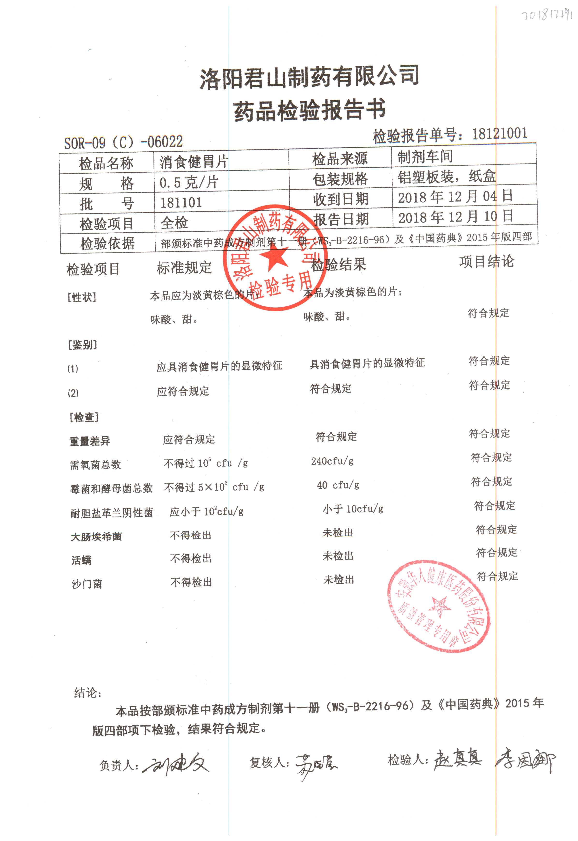 名稱 | 規(guī)格 | 批號 | 藥檢報告 |