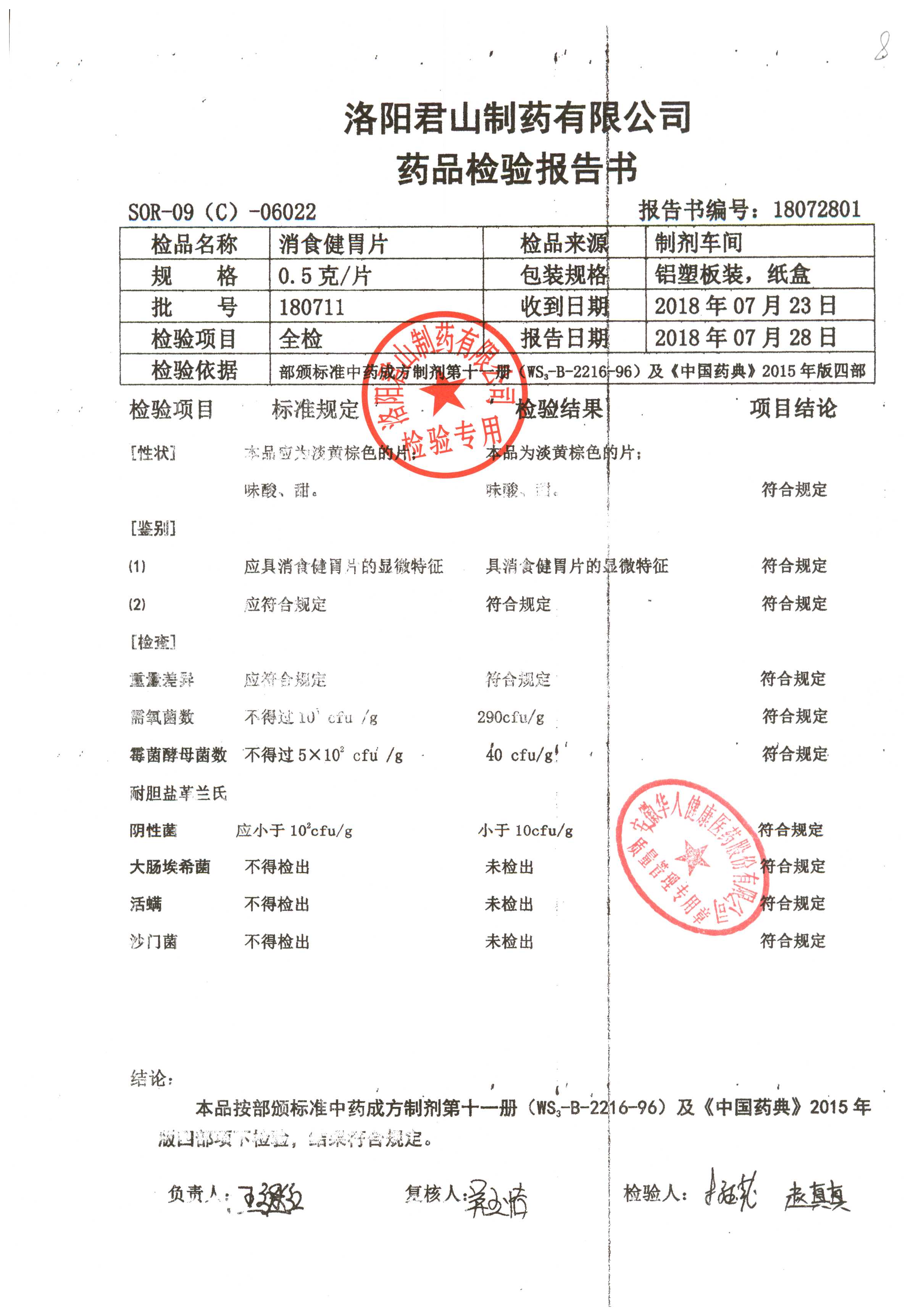 消食健胃片 | 0.5g | 180711 | 查看詳情 |