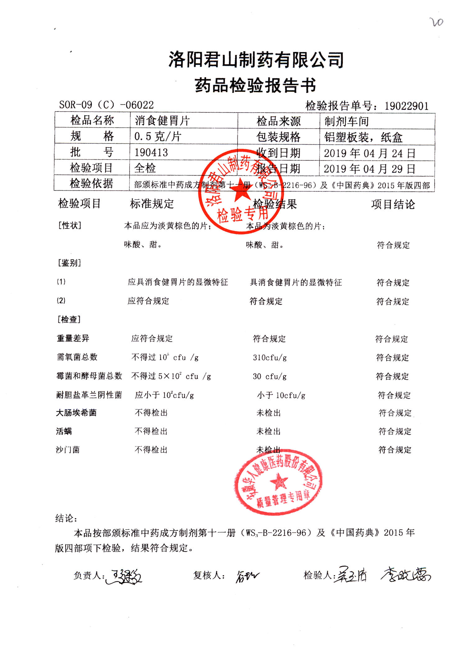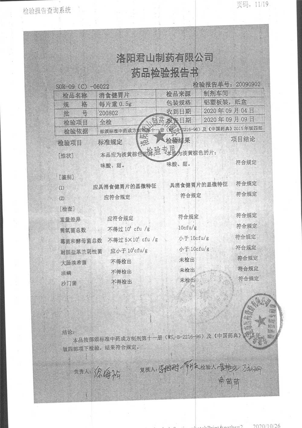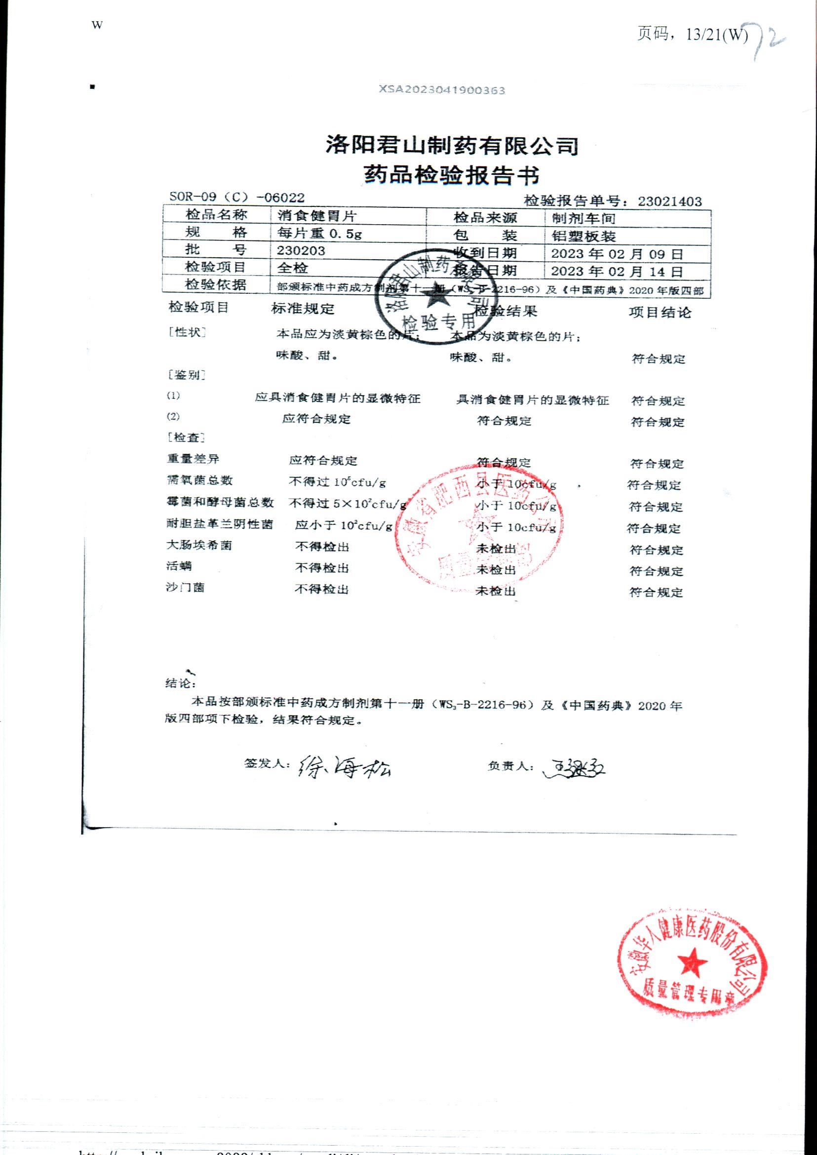 消食健胃片 | 0.5g | 190413 | 查看詳情 |