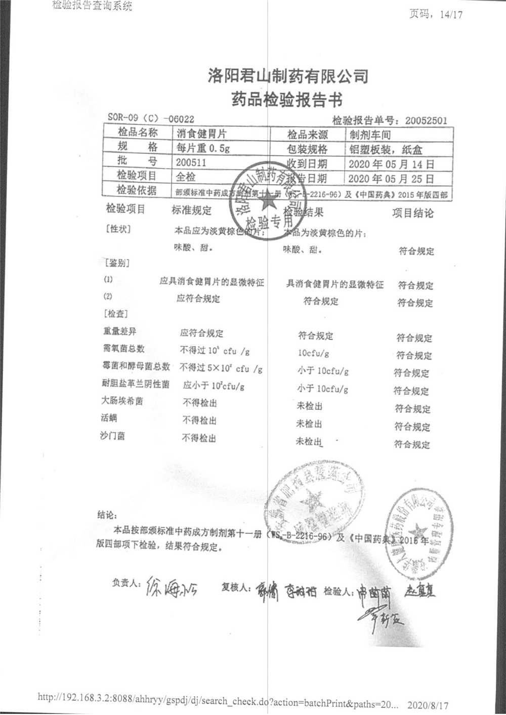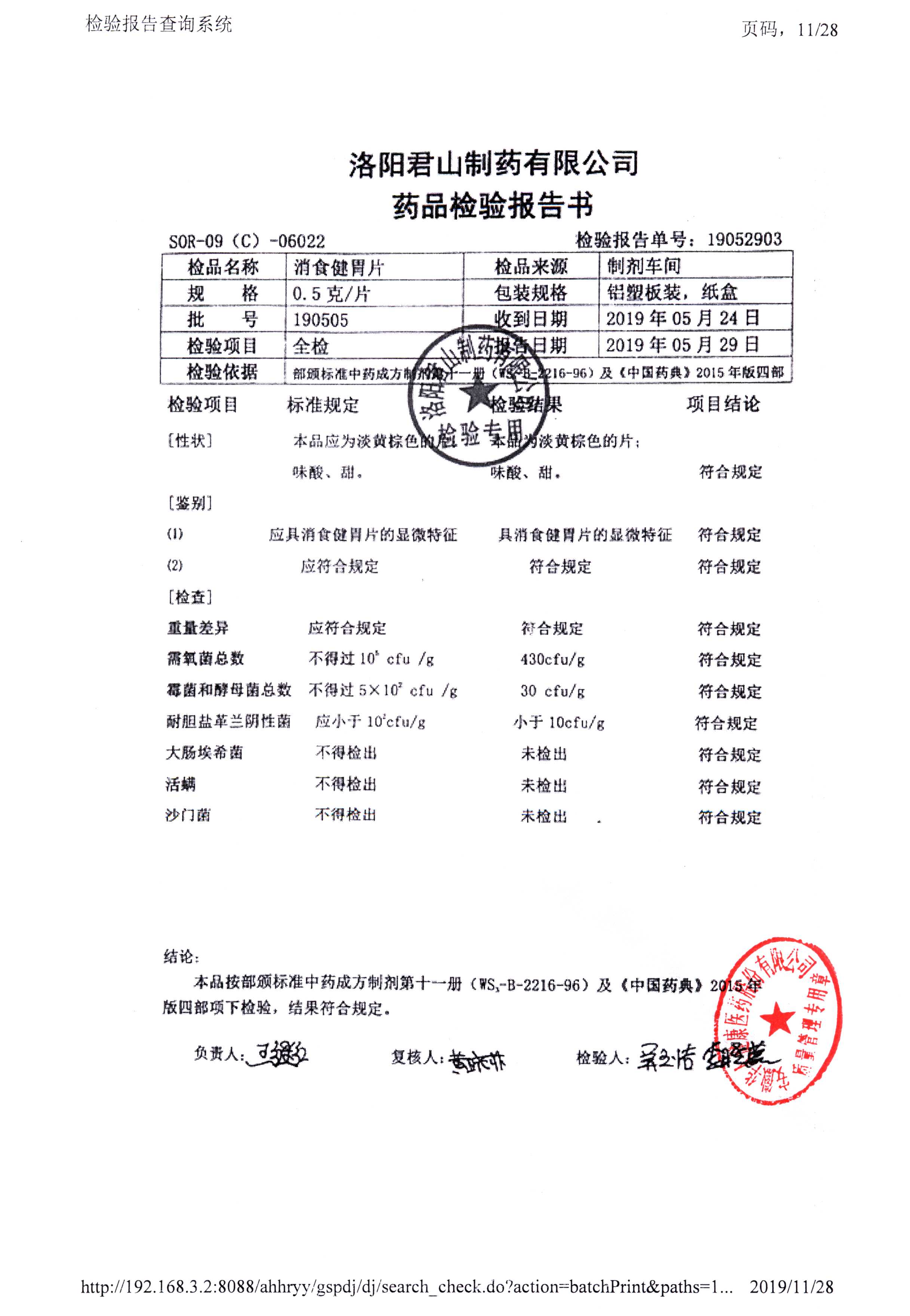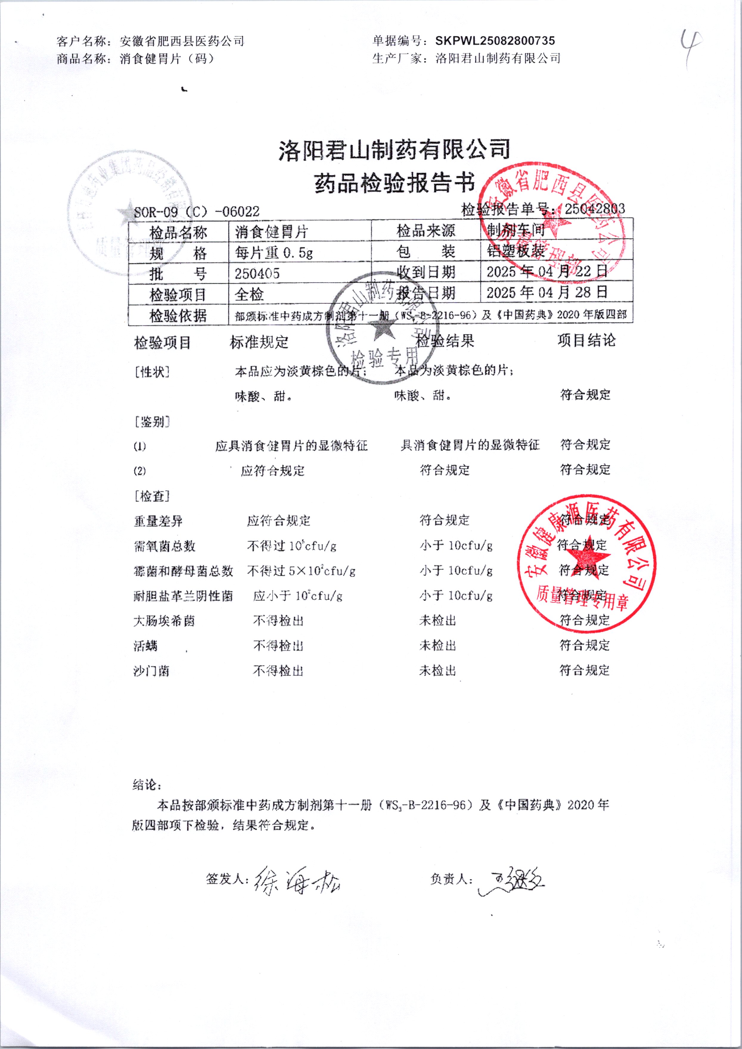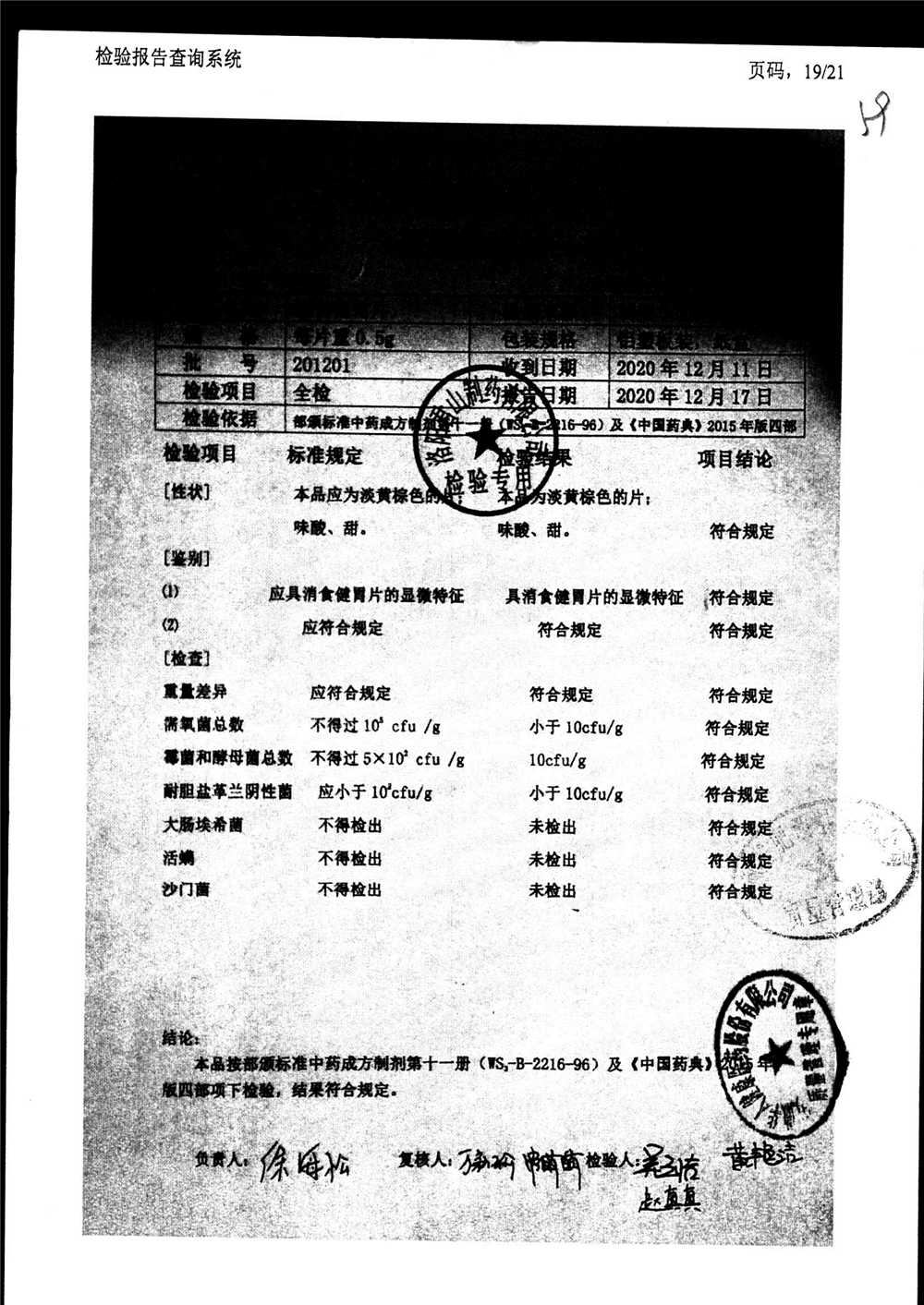 消食健胃片 | 0.5g | 190413 | 查看詳情 |