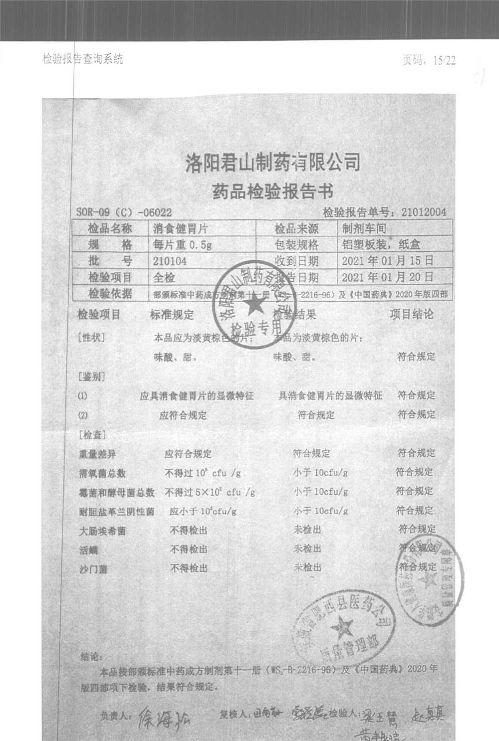 消食健胃片 | 0.5g | 210324 | 查看詳情 |