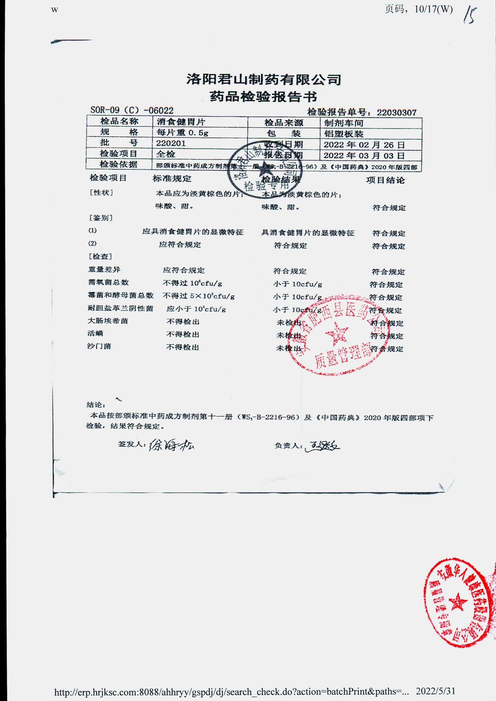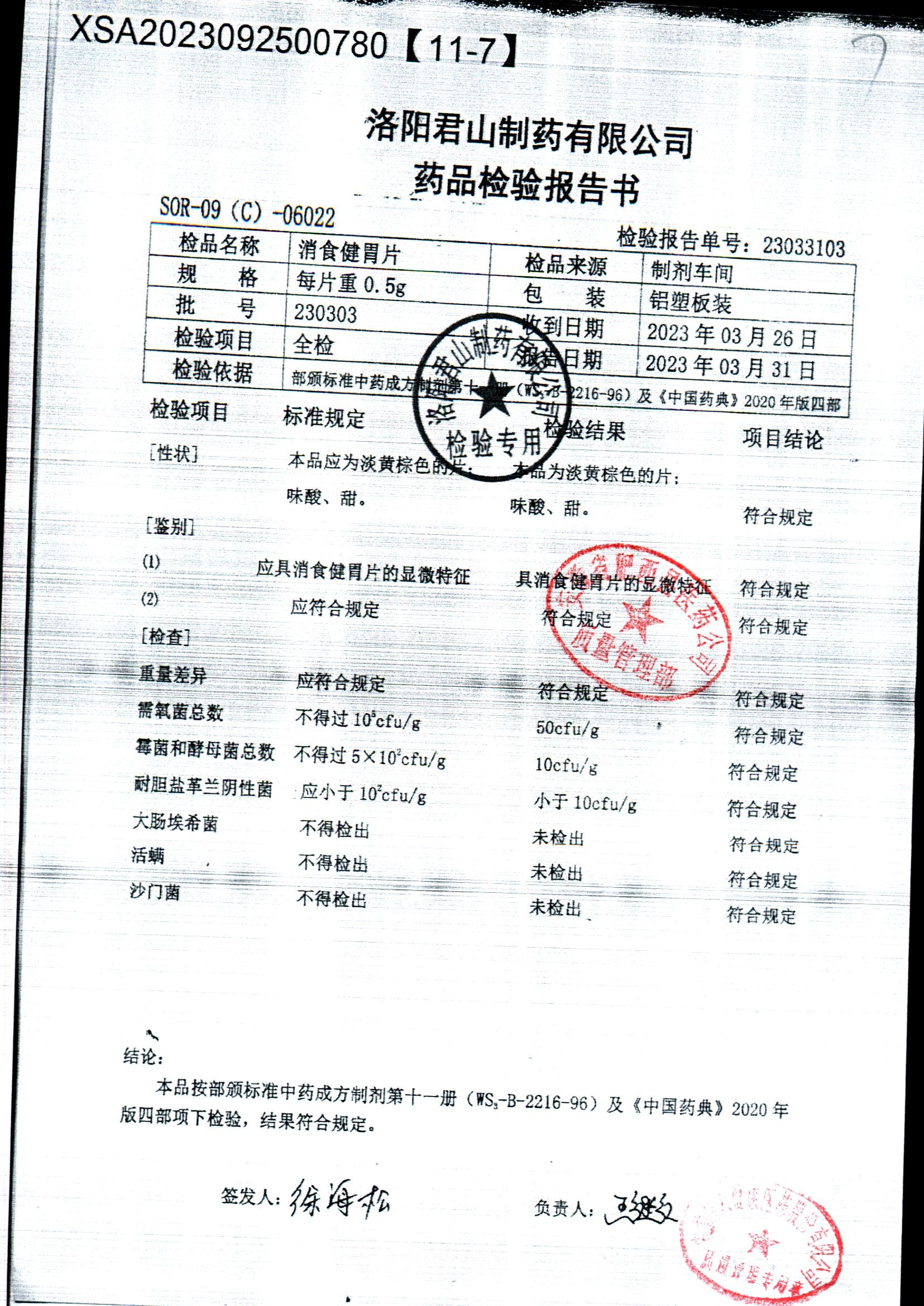 消食健胃片 | 0.5g | 220903 | 查看詳情 |