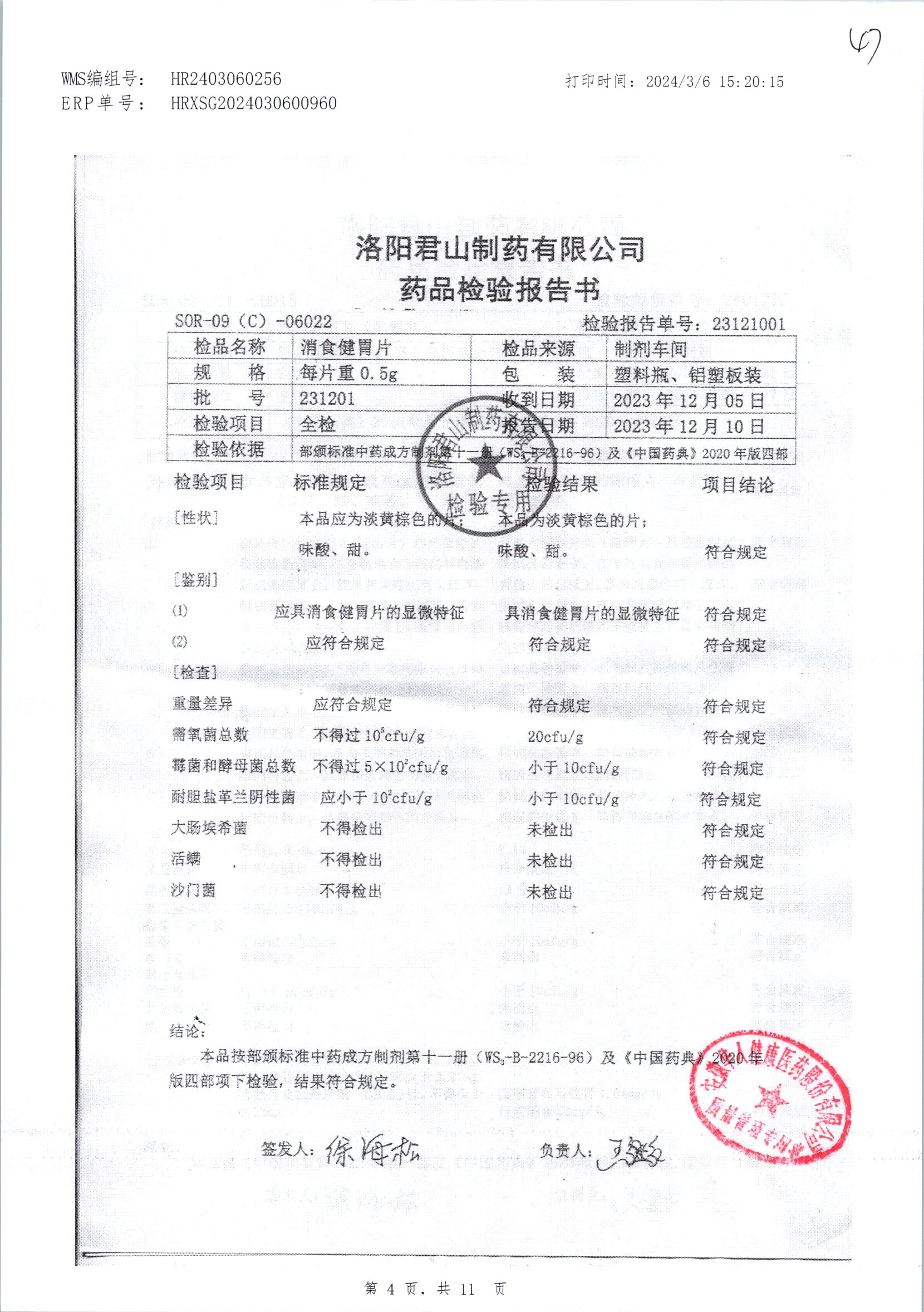 消食健胃片 | 0.5g | 231201 | 查看詳情 |