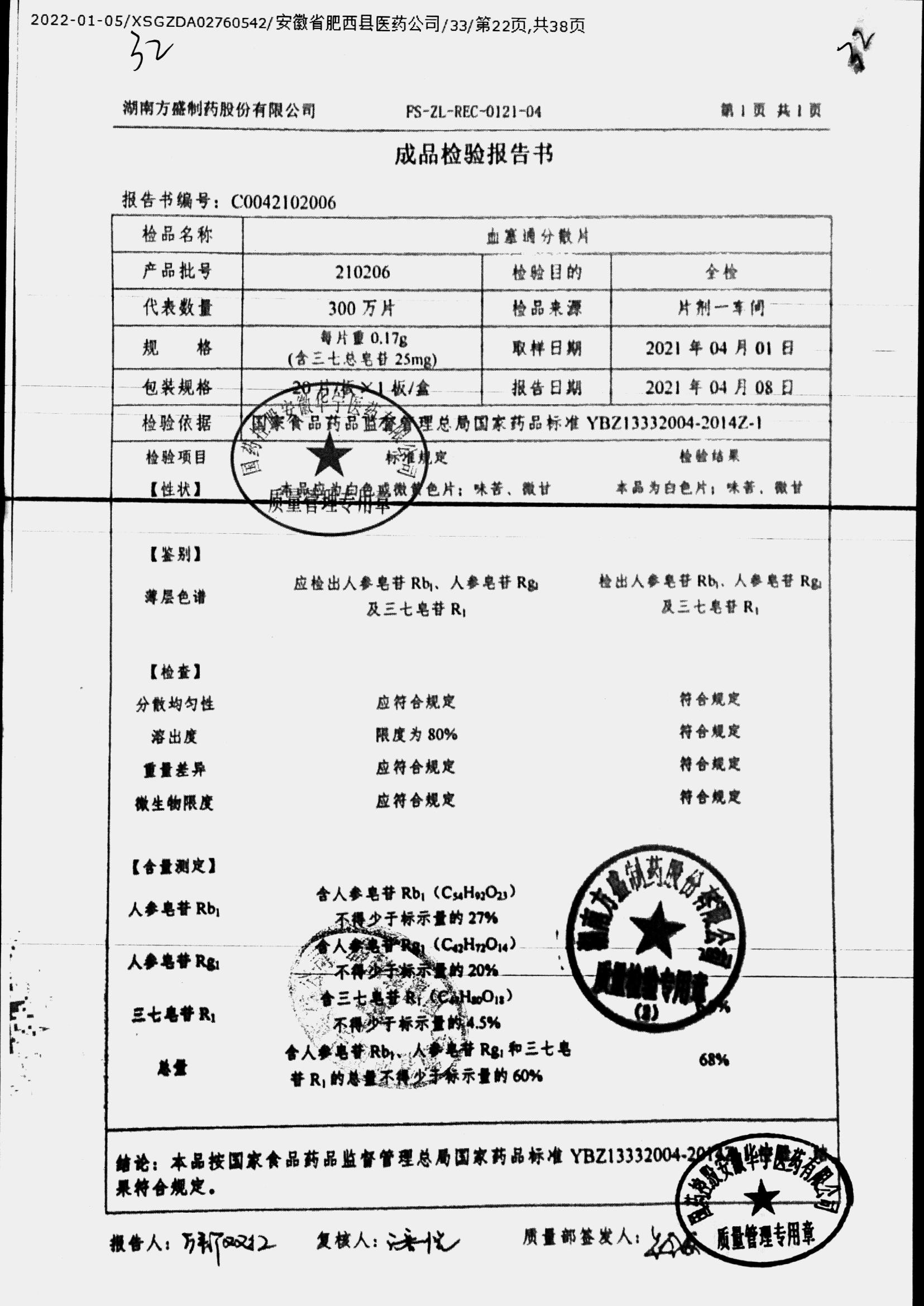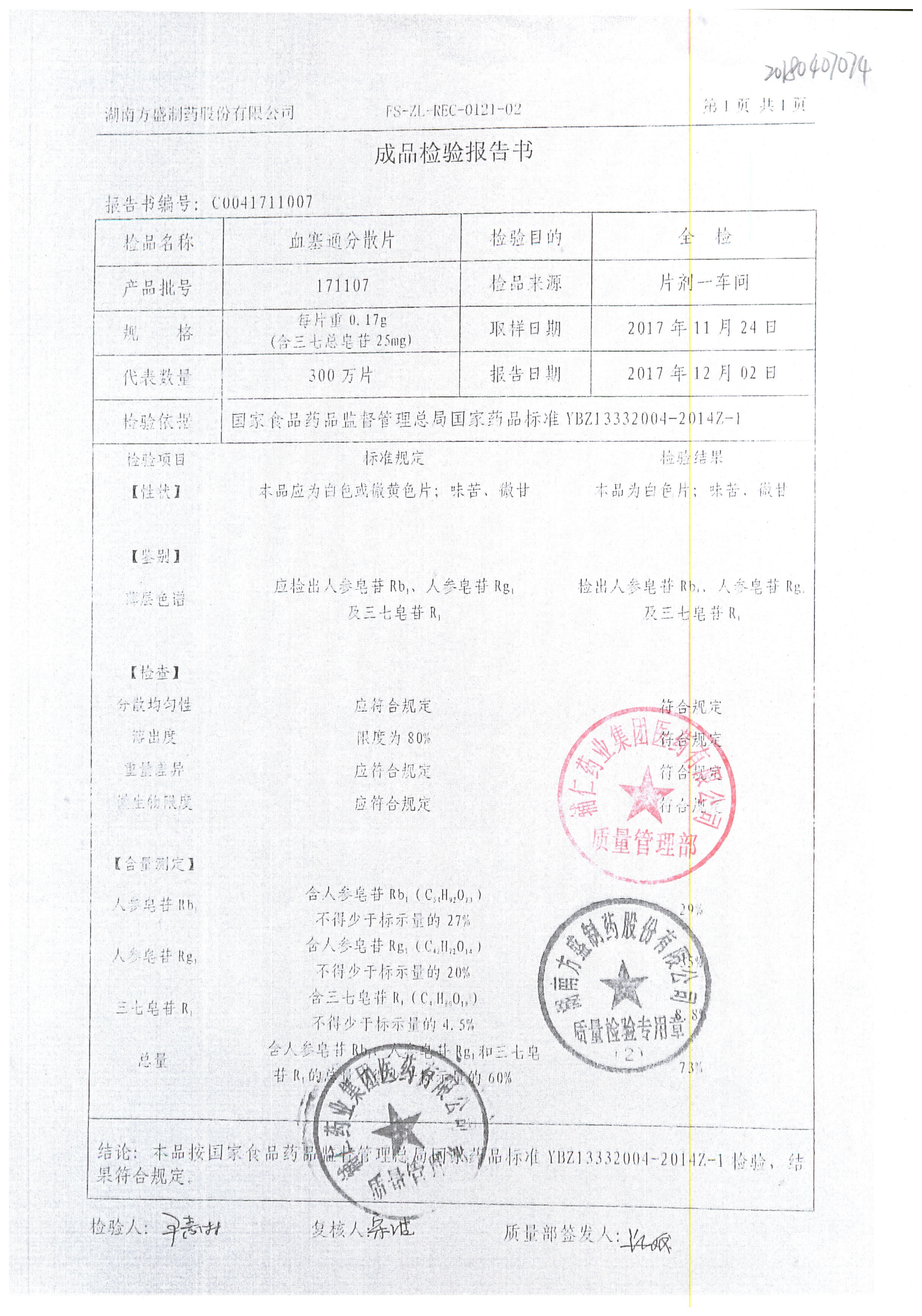 血塞通分散片 | 0.17g | 201205 | 查看詳情 |