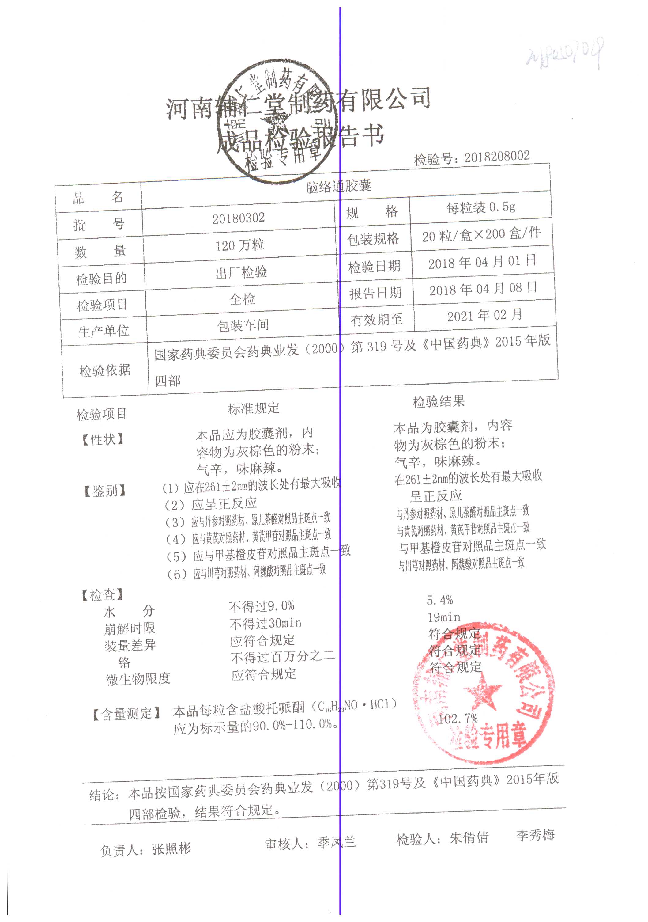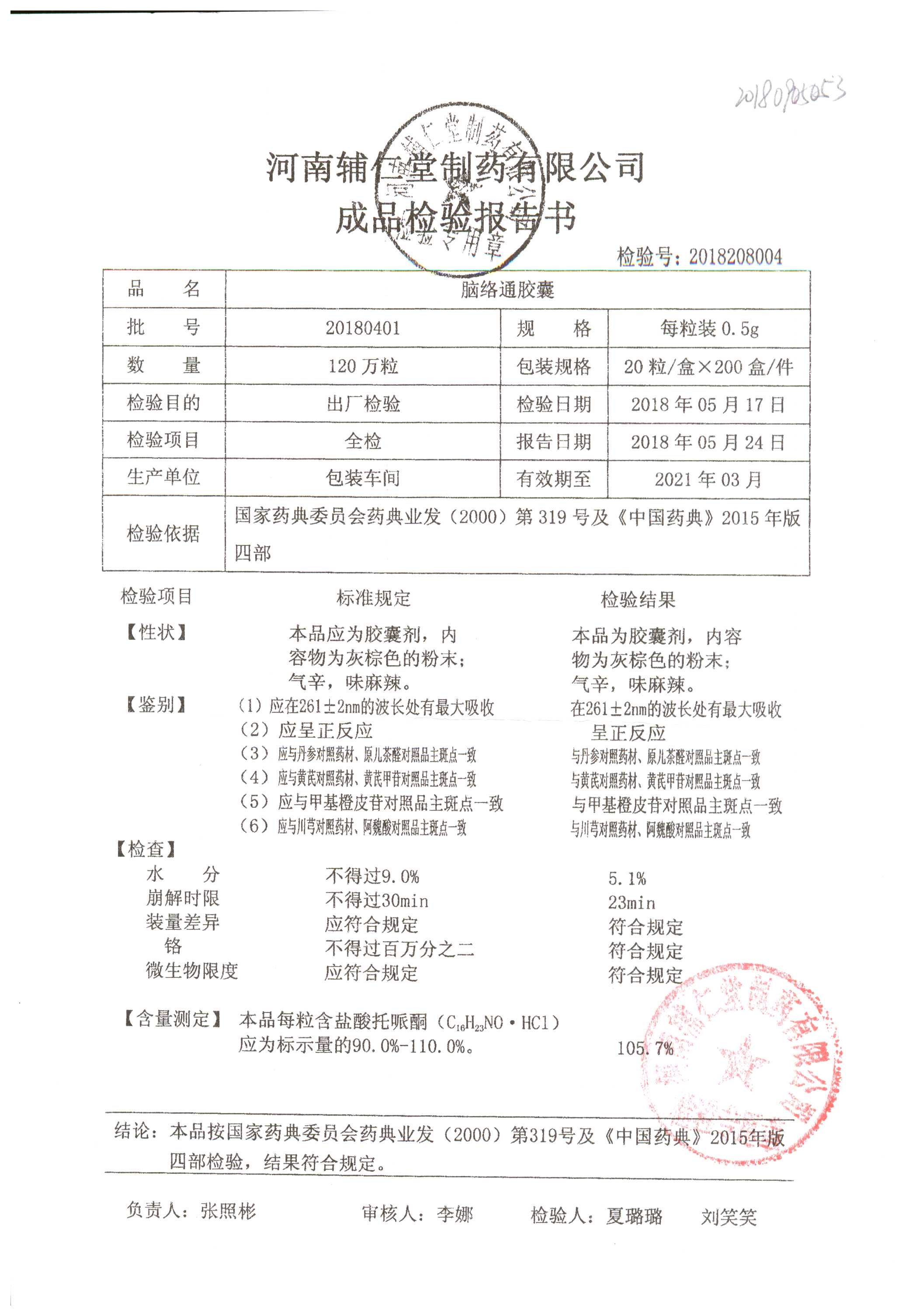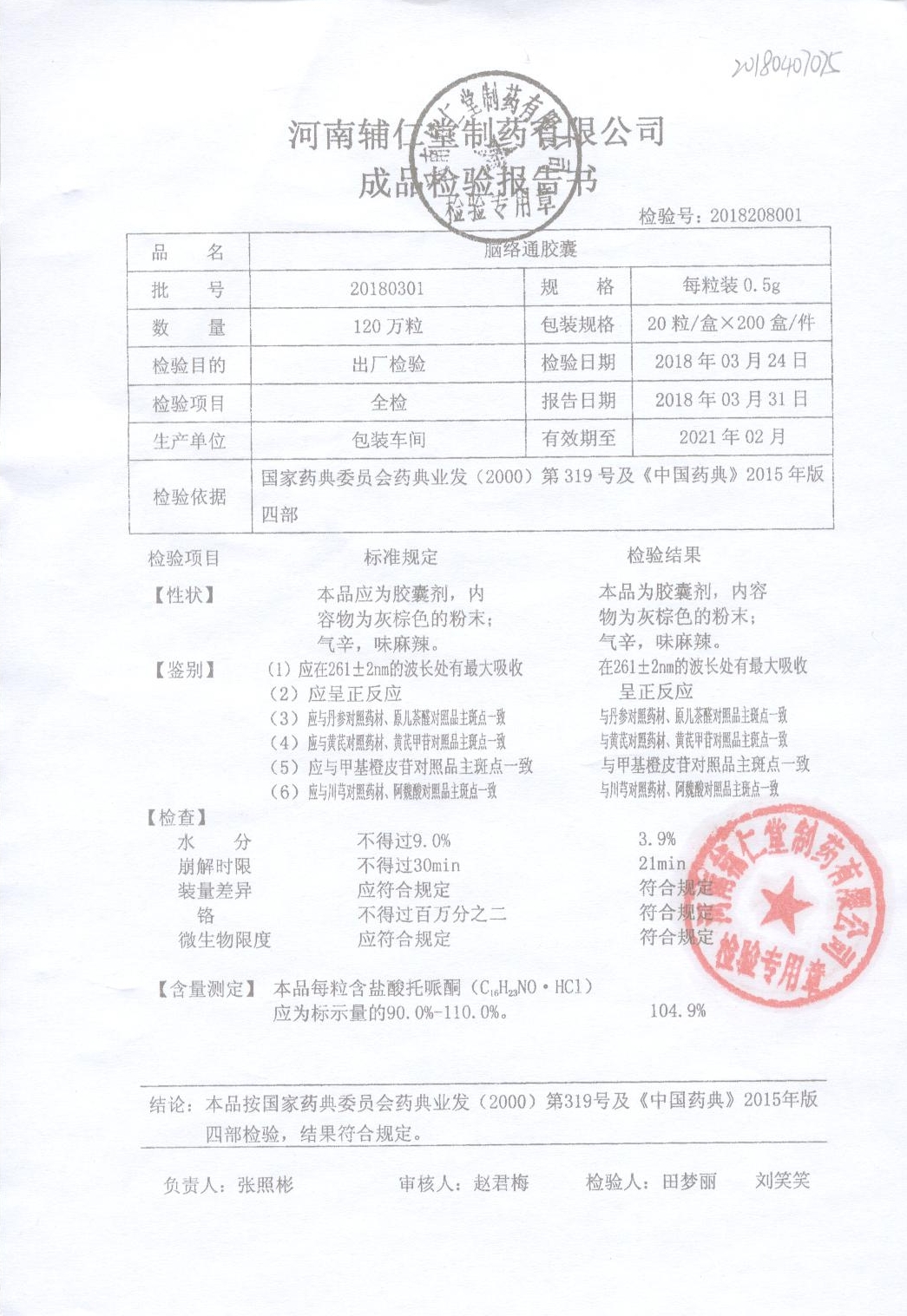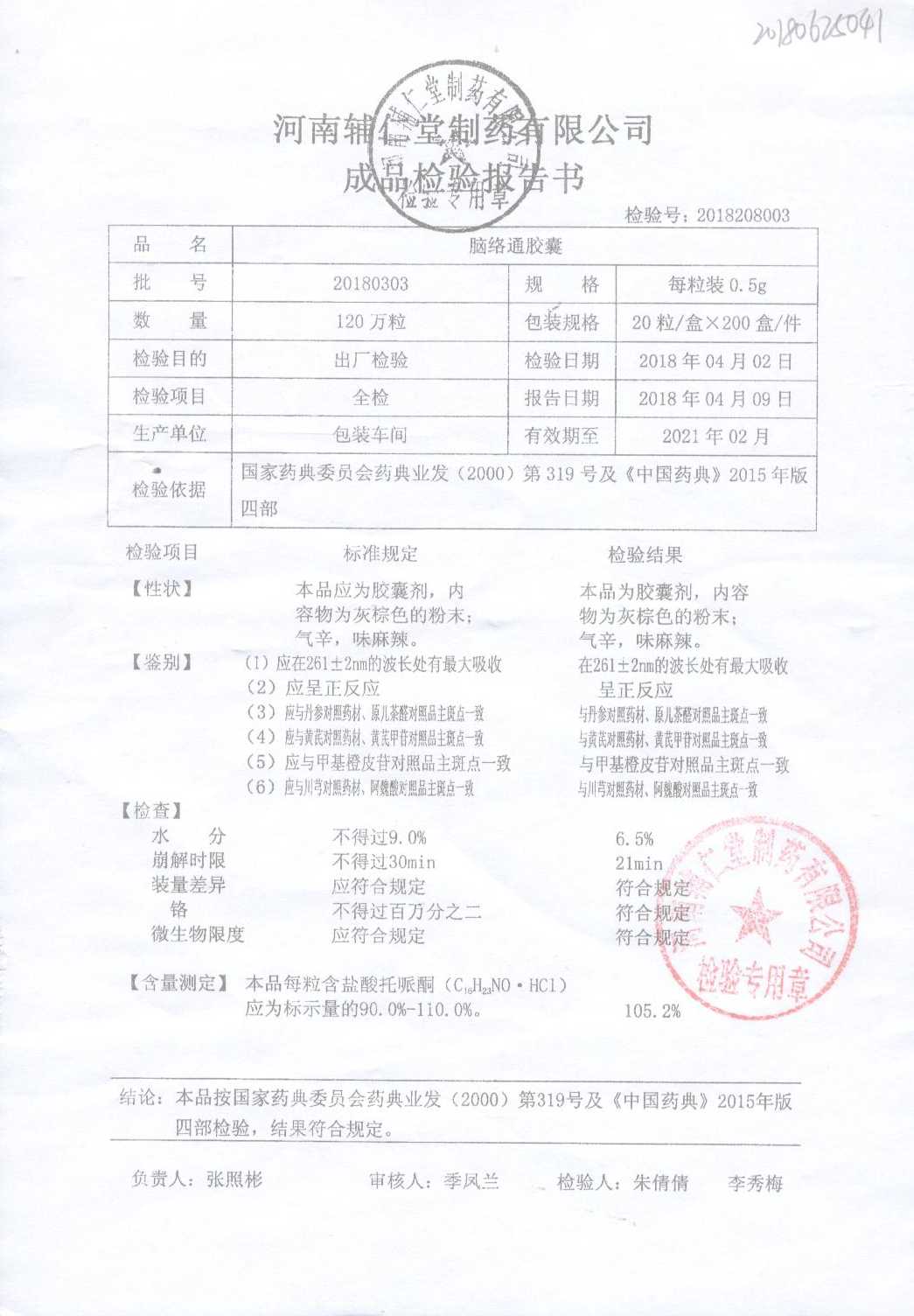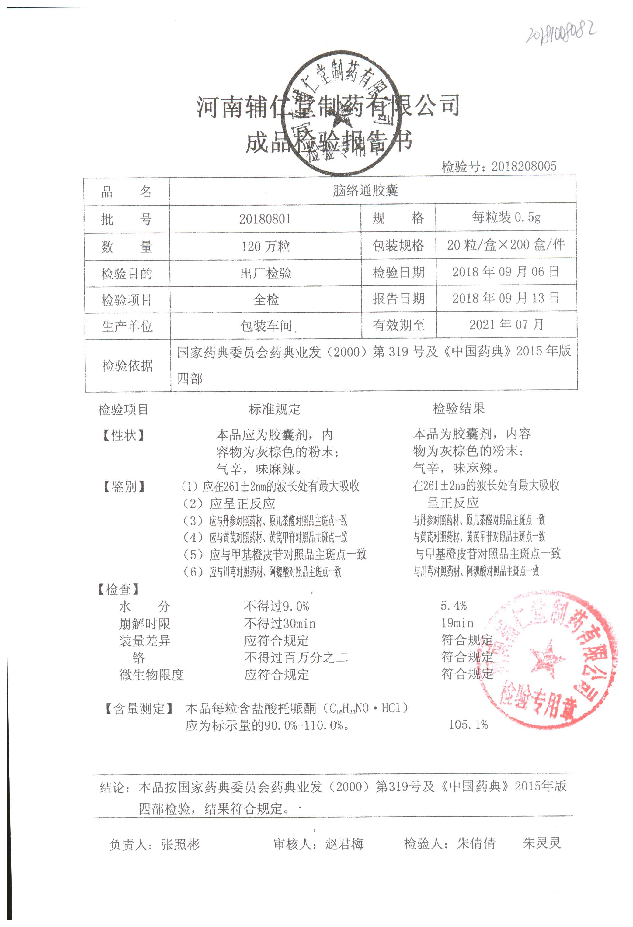 腦絡(luò)通膠囊 | 0.5g | 20180801 | 查看詳情 |